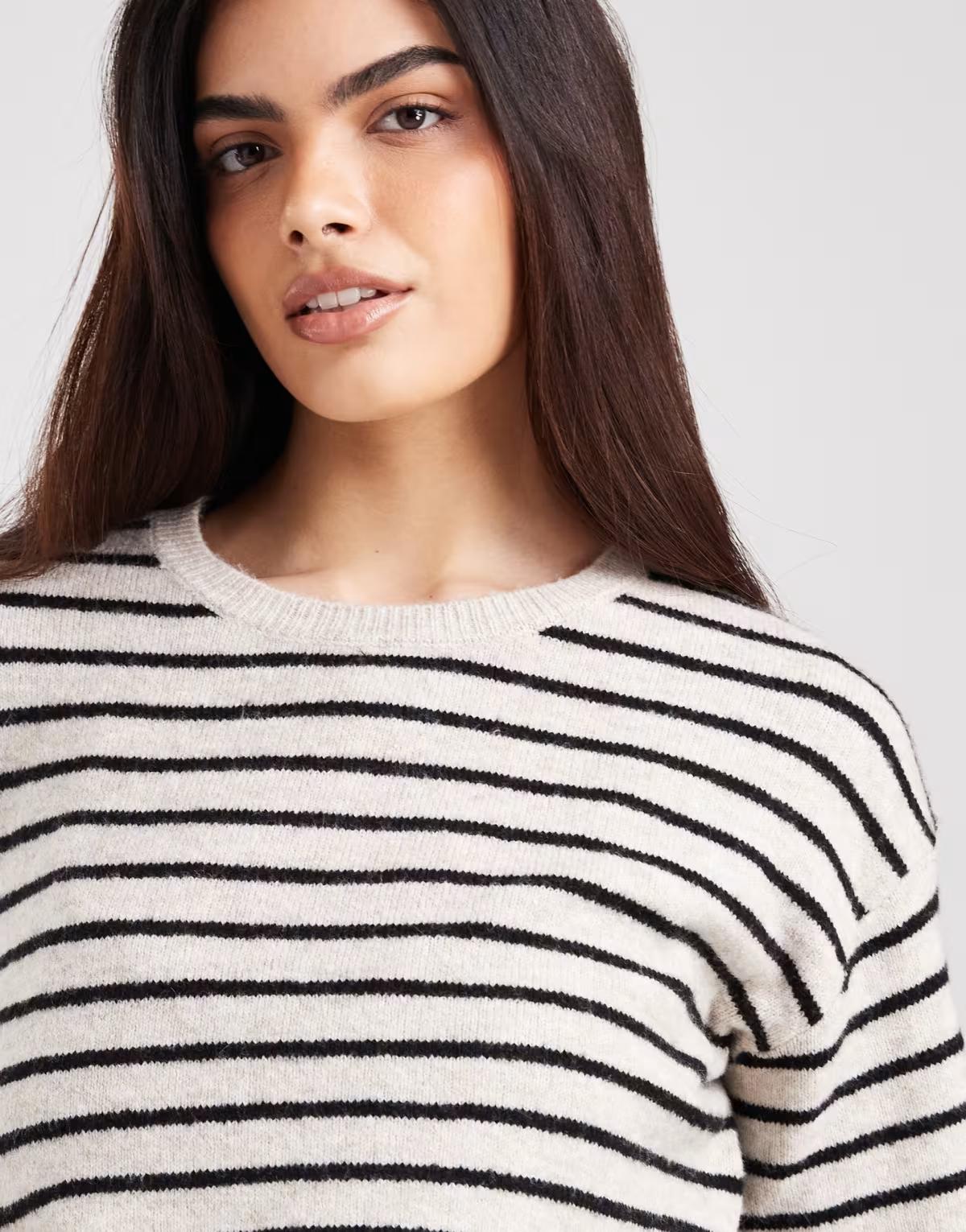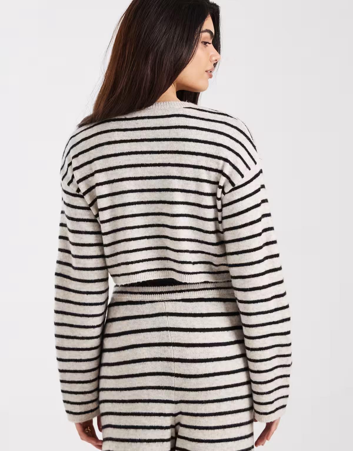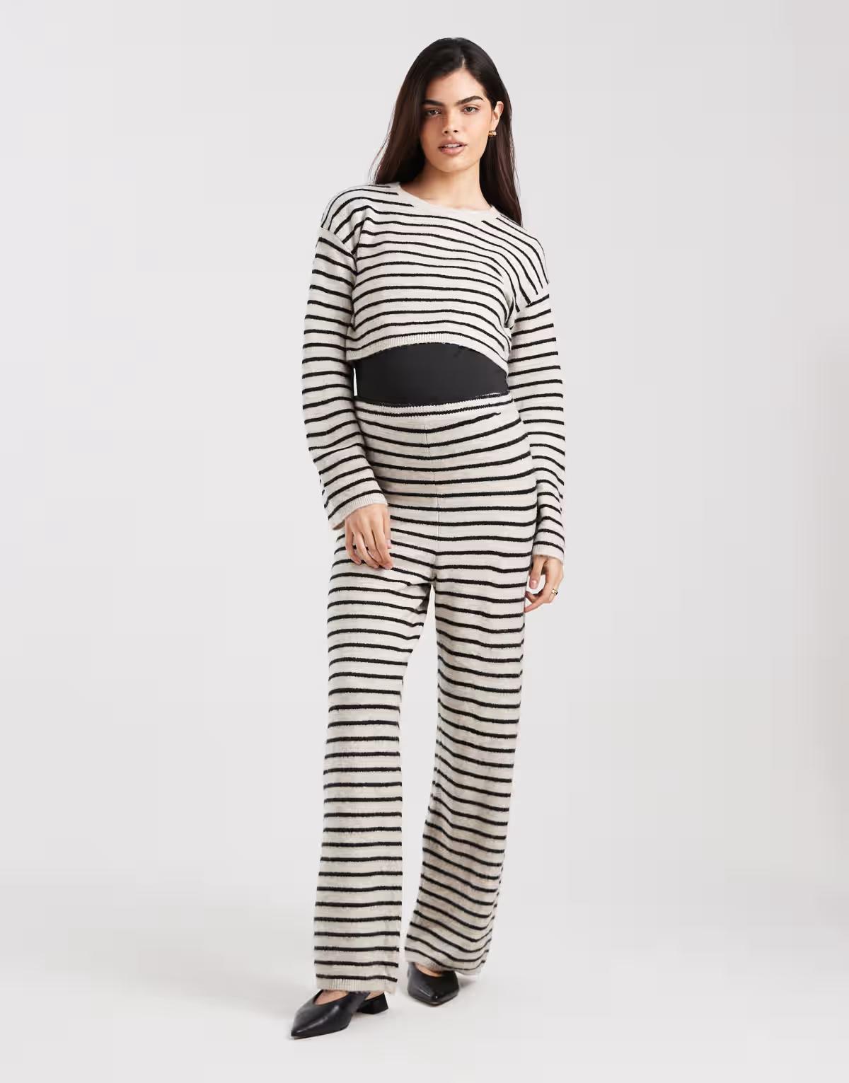 Mamalicious Maternity knitted long sleeve cropped jumper co-ord in black and cream stripe