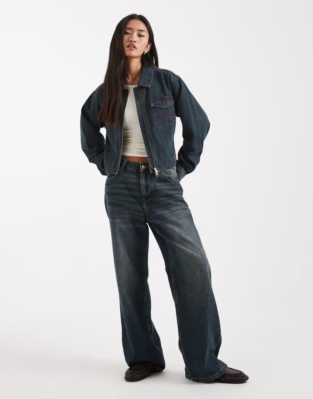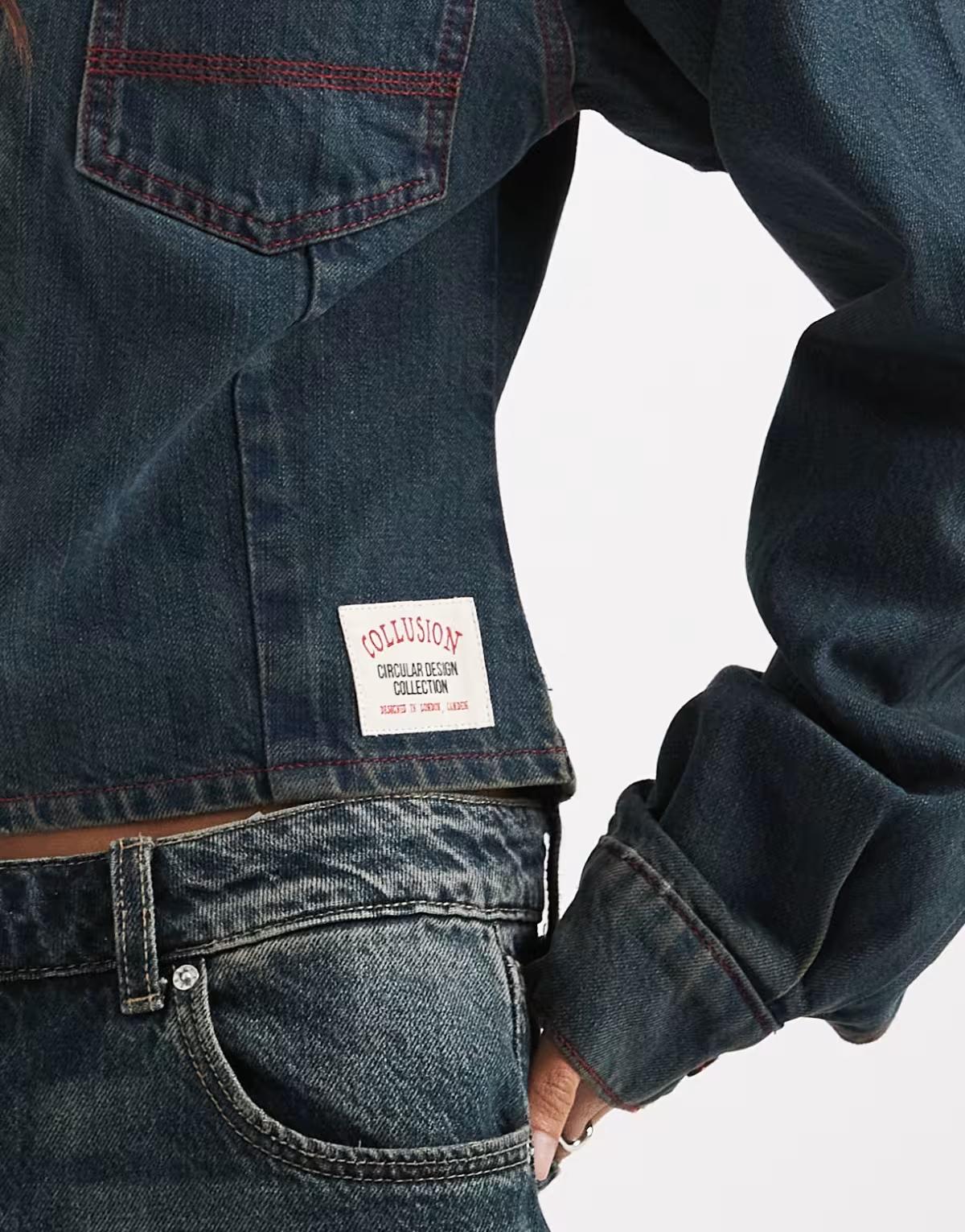 This product, COLLUSION Circular Design Collection fitted zip jacket in green cast wash, meets ASOS’ Silver Standard
