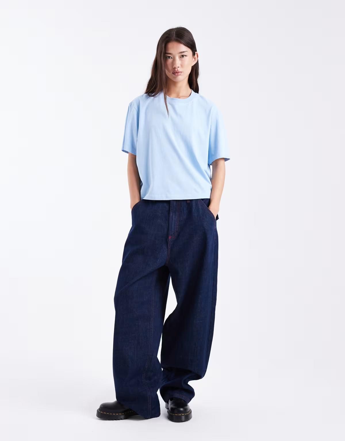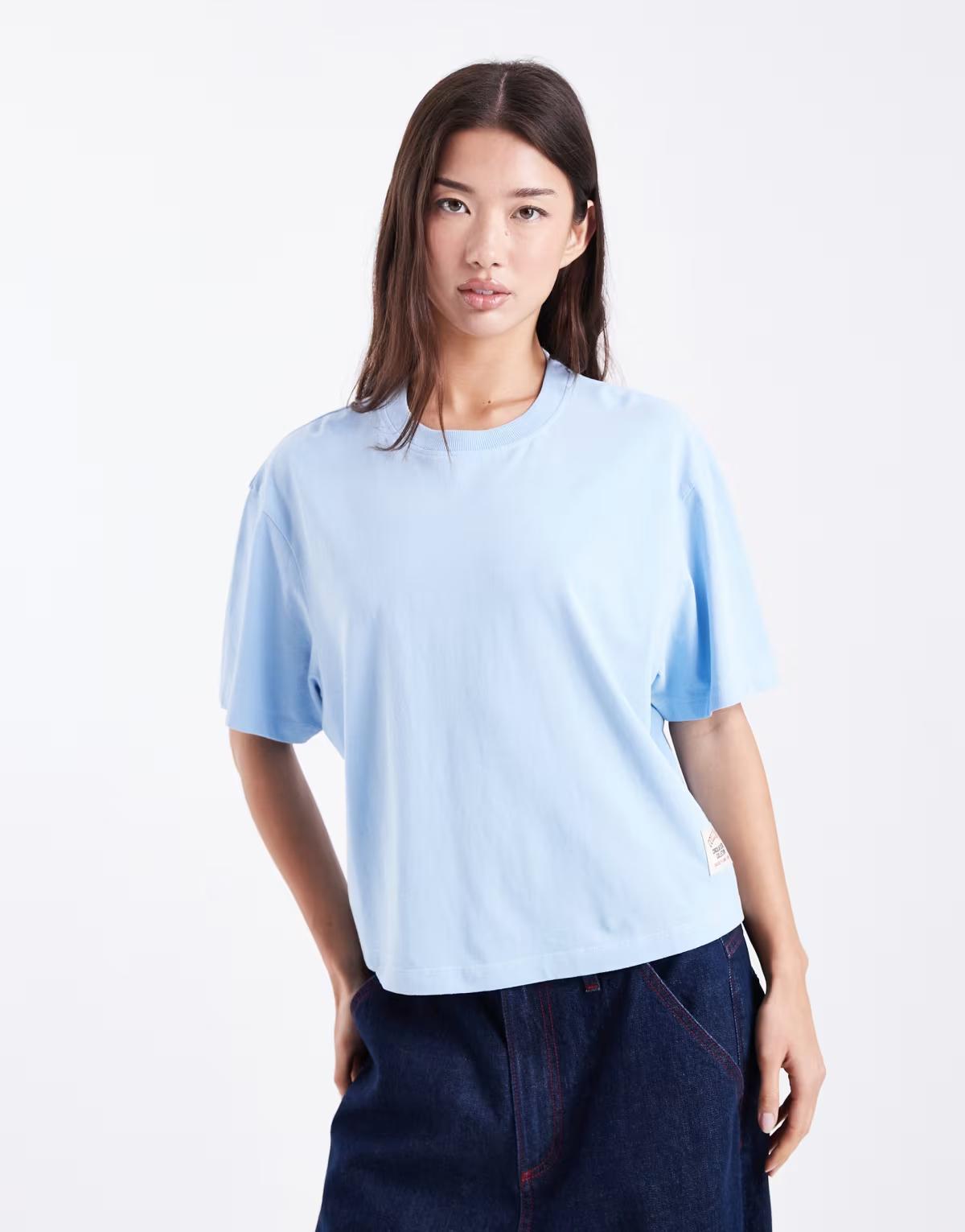 This product, COLLUSION Circular Design Collection boxy t-shirt in ice blue, meets ASOS’ Silver Standard