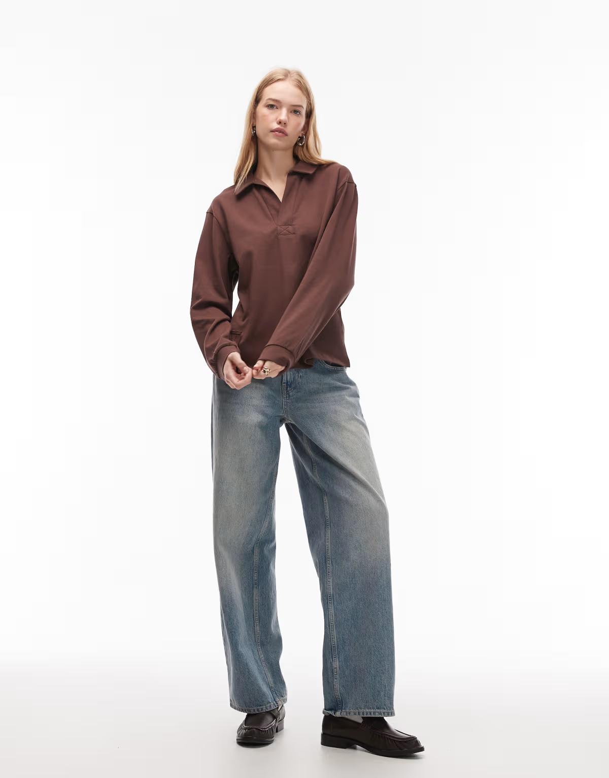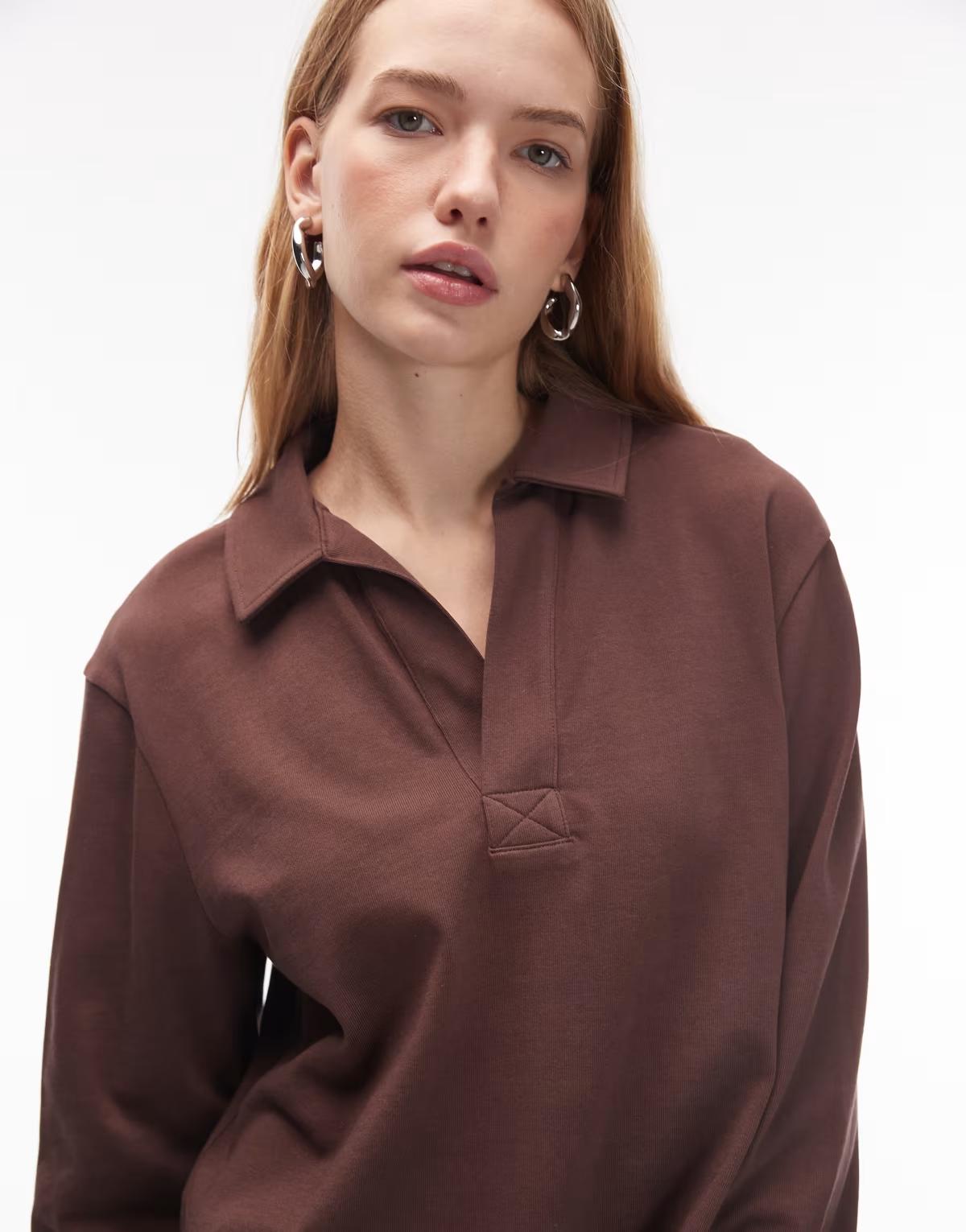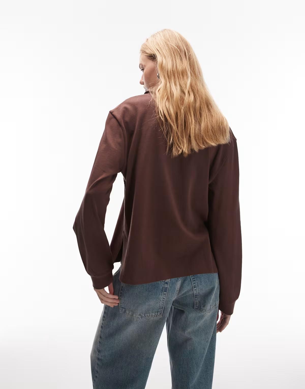ASOS DESIGN heavyweight rugby collar long sleeve tee in chocolate