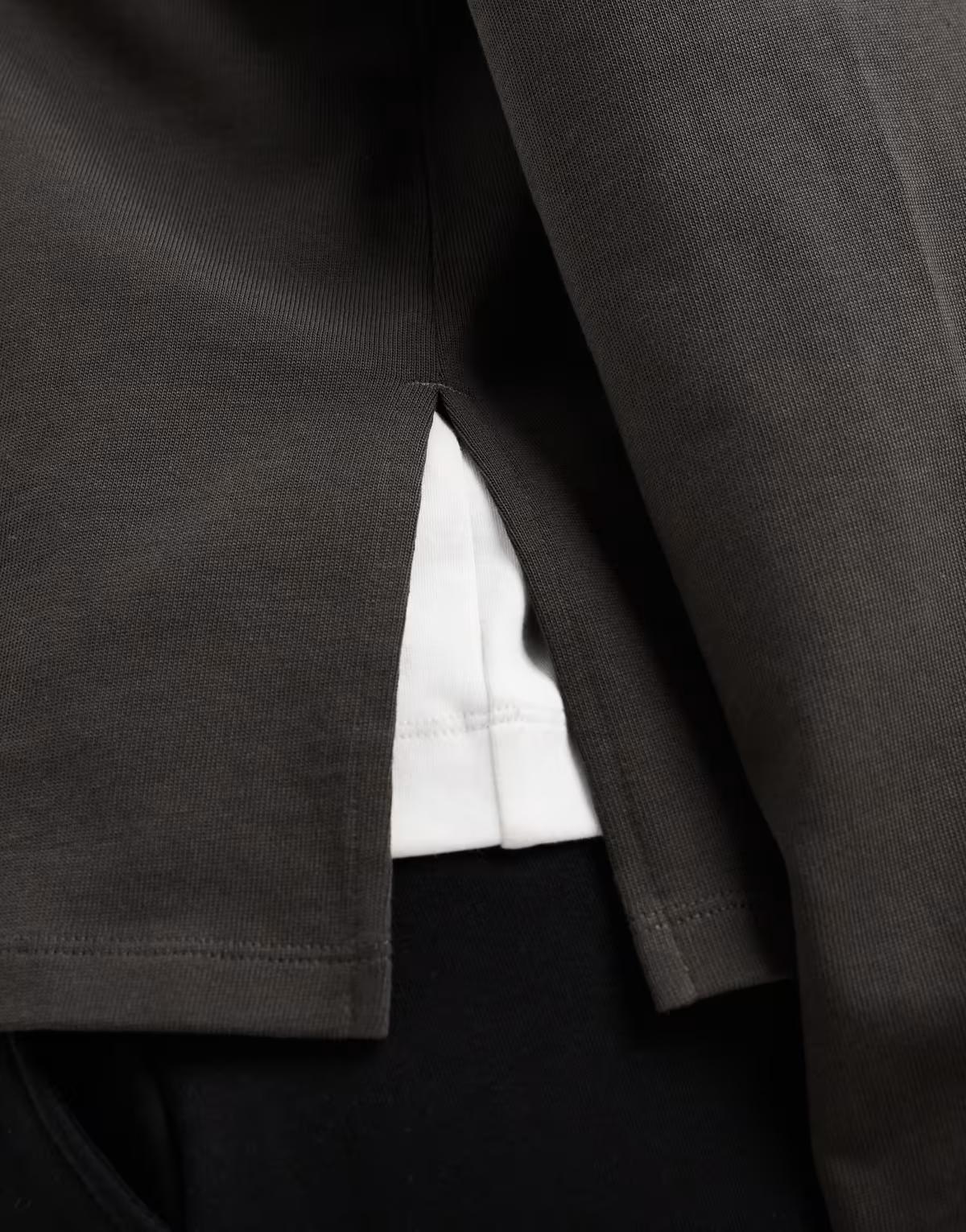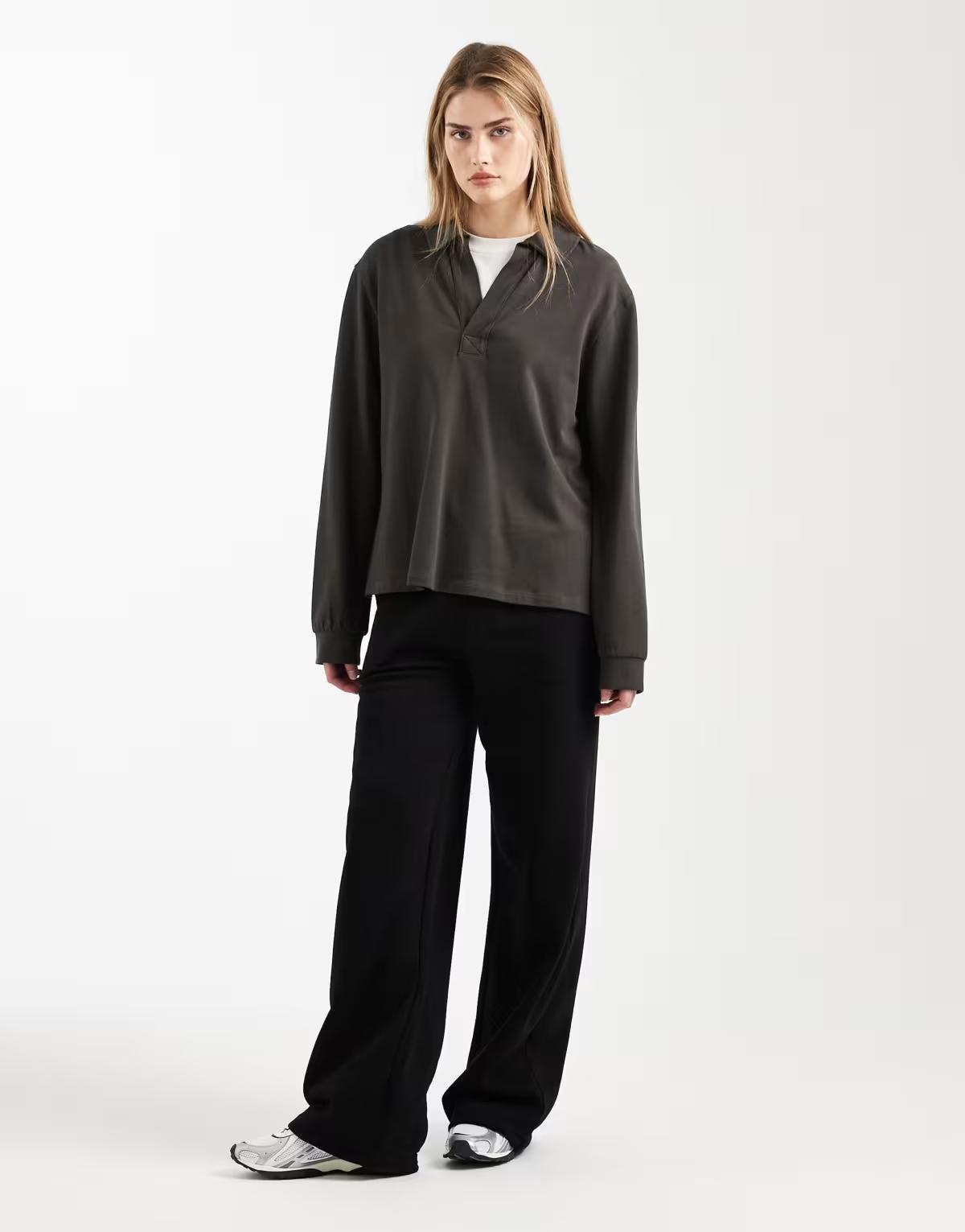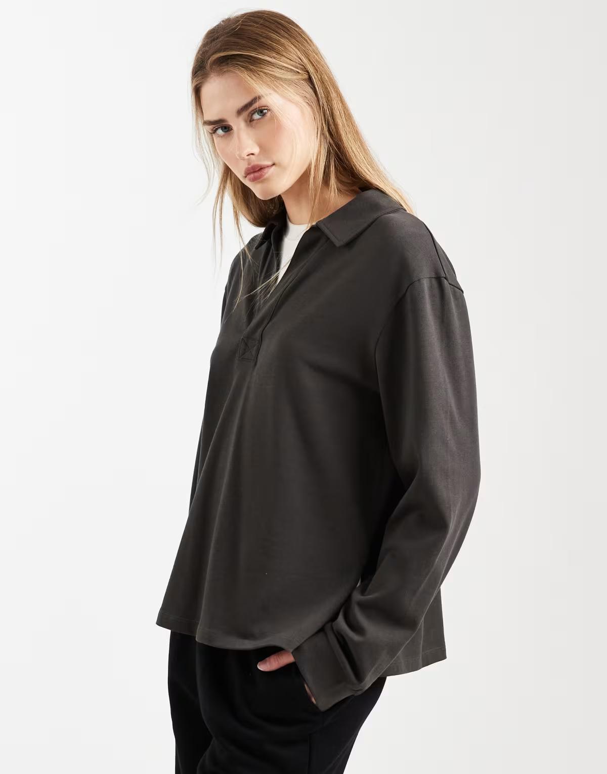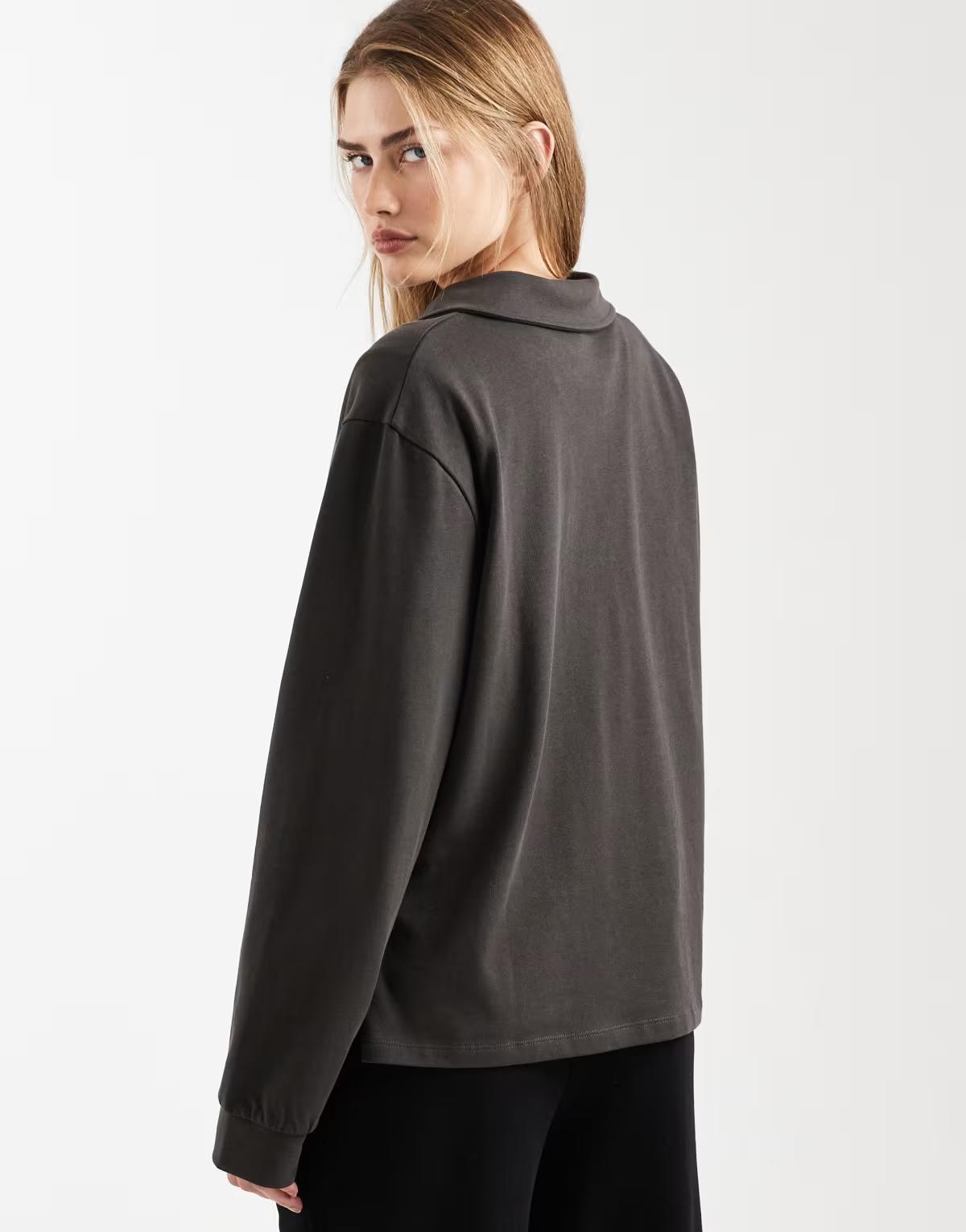 ASOS DESIGN heavyweight rugby collar long sleeve tee in charcoal