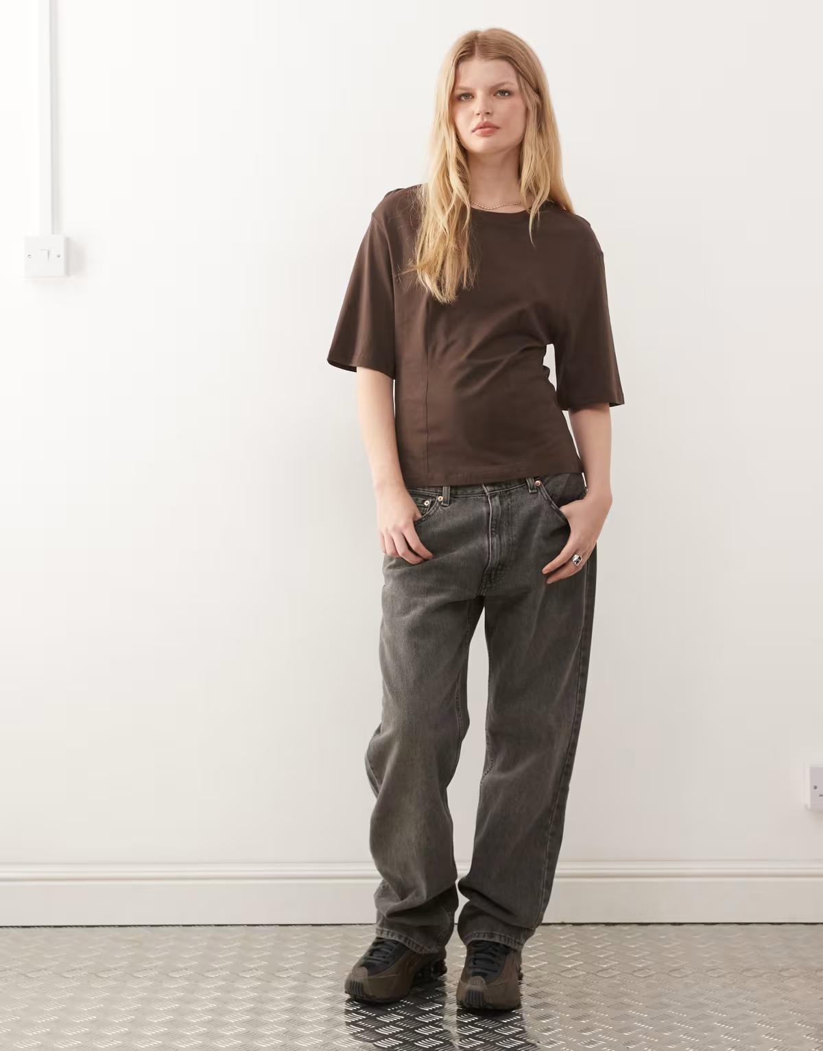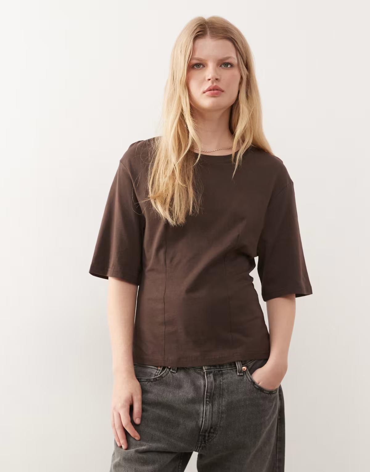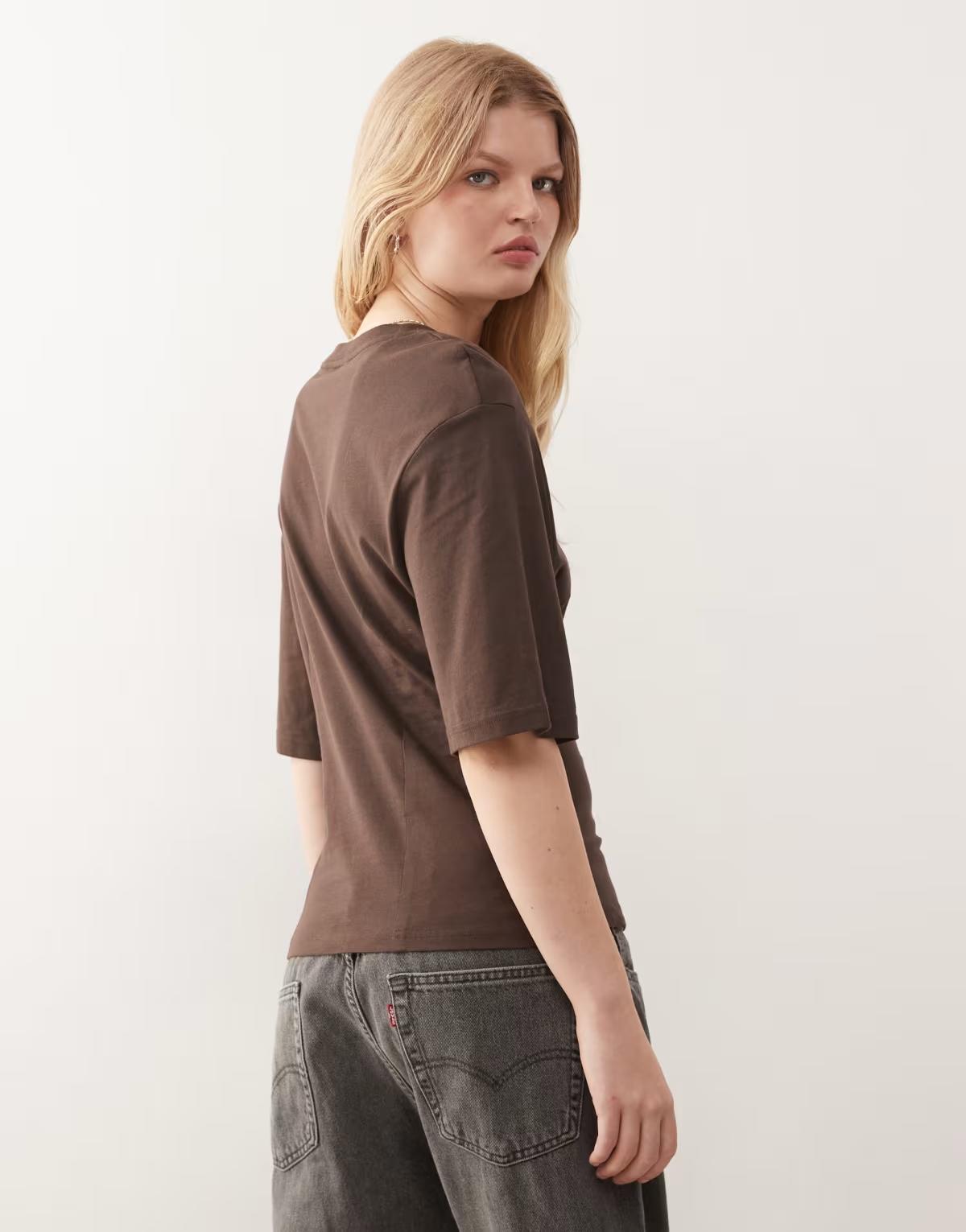Monki t-shirt with cinched waist in brown