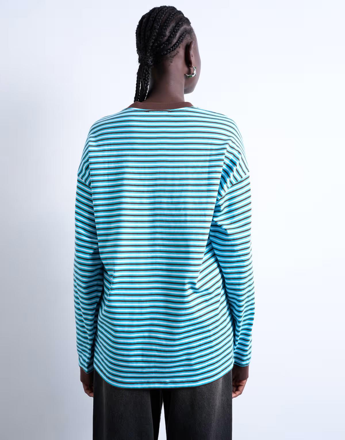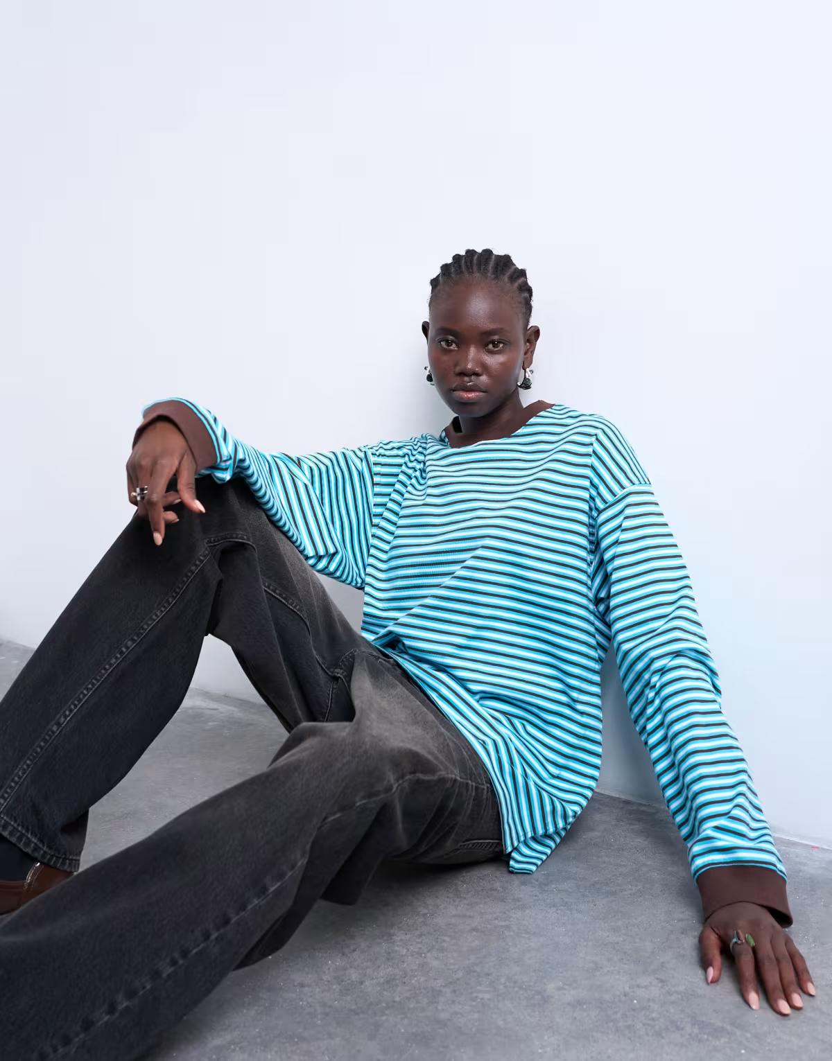 Topshop stripe long sleeve slouchy skater tee in blue