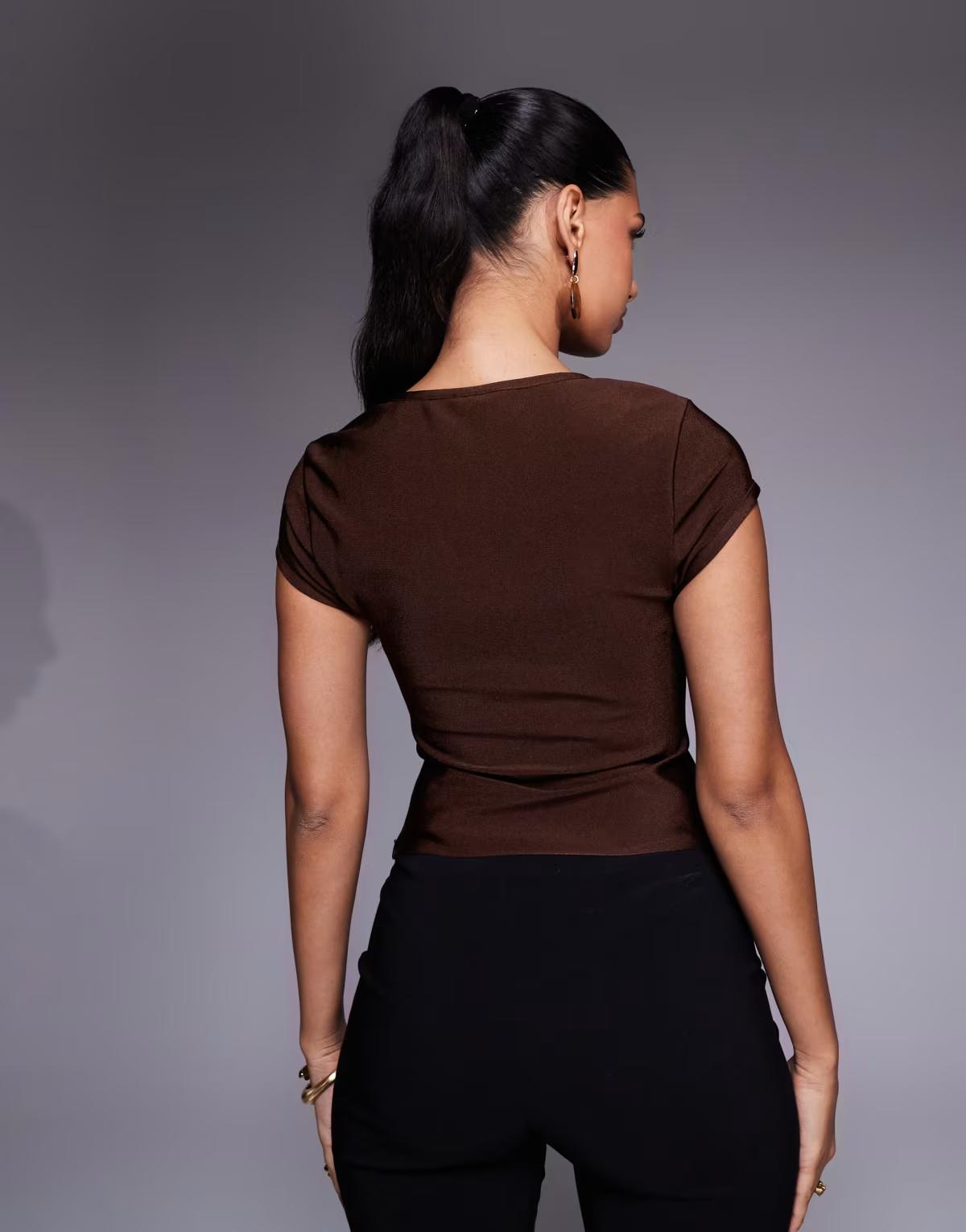 ASOS DESIGN bandage cap sleeve square neck top in chocolate
