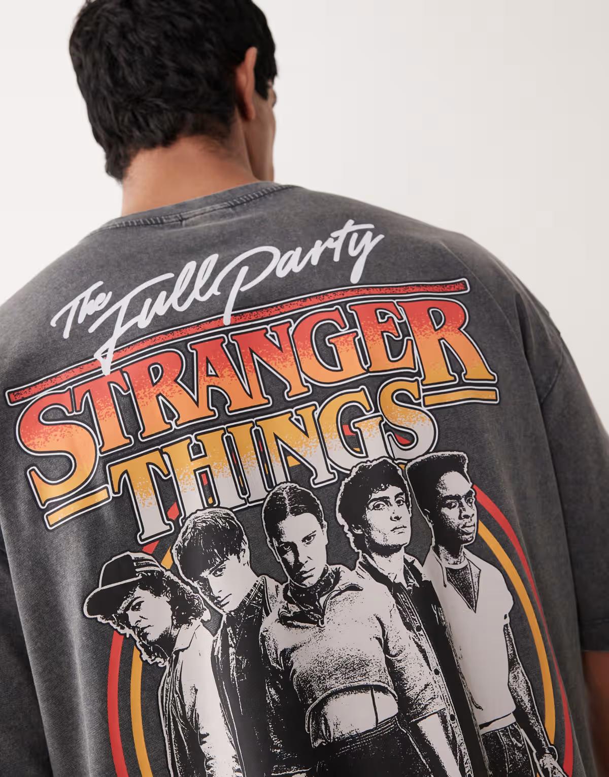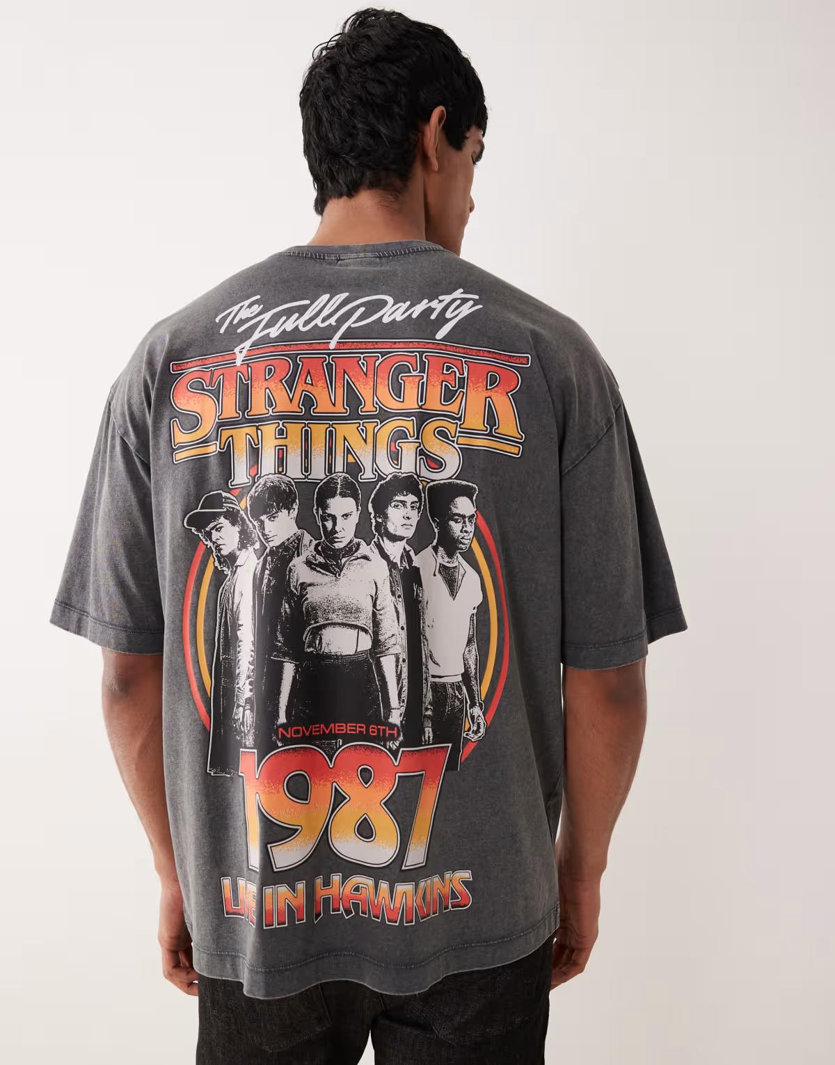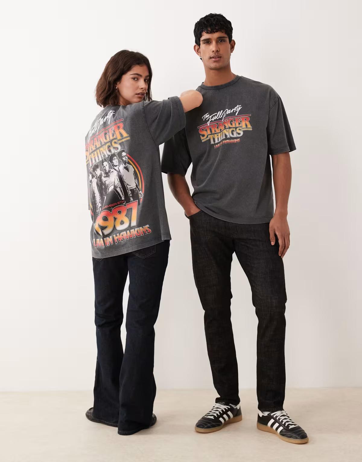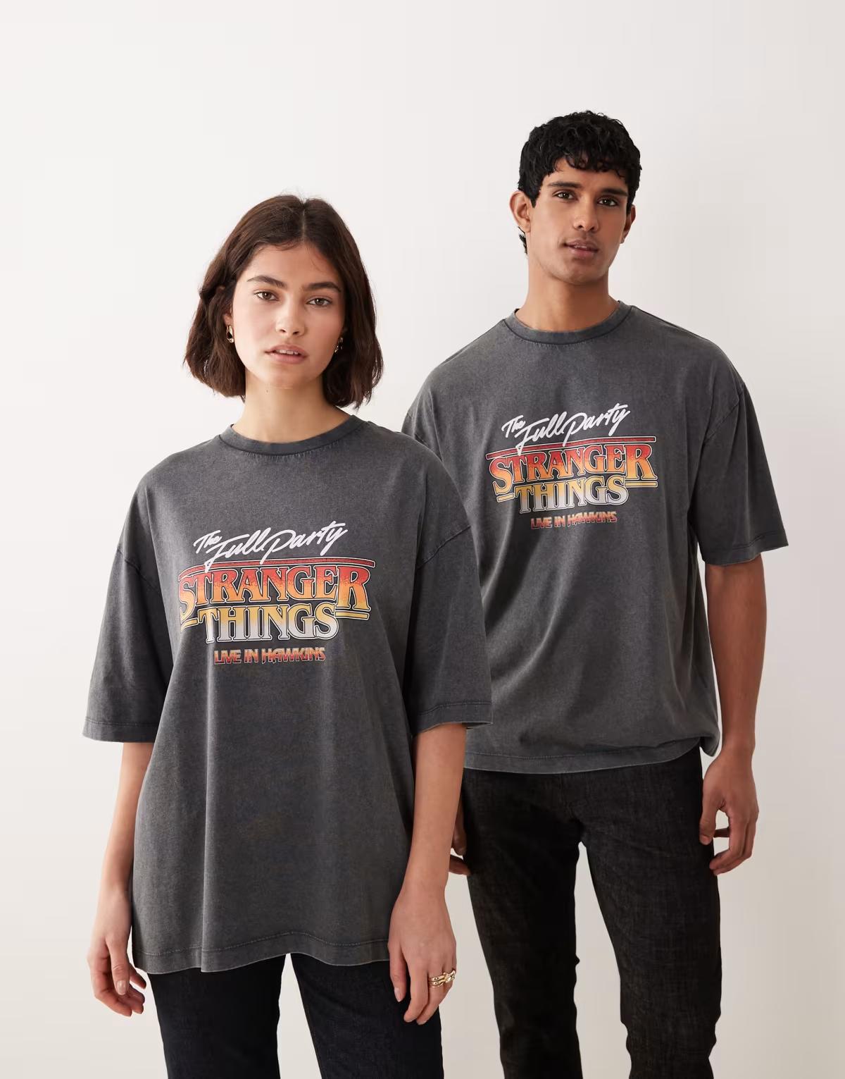 ASOS DESIGN unisex oversized t-shirt with retro Stranger Things print in washed black