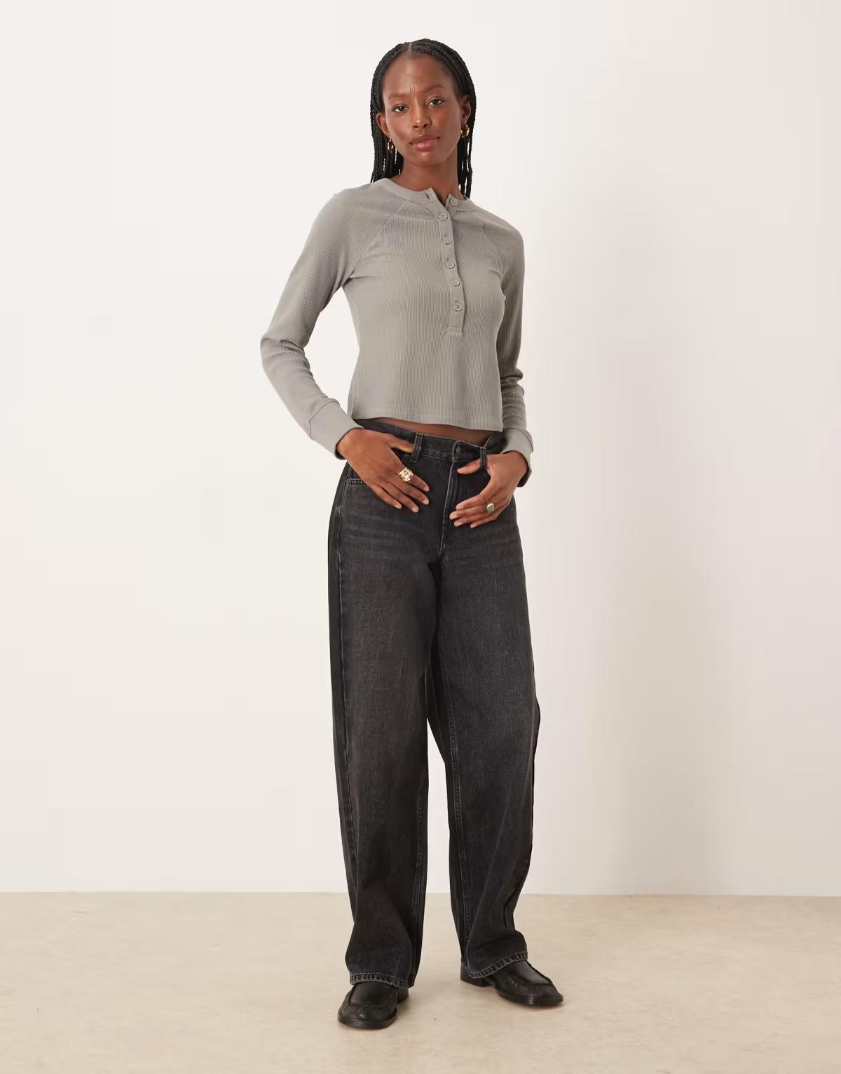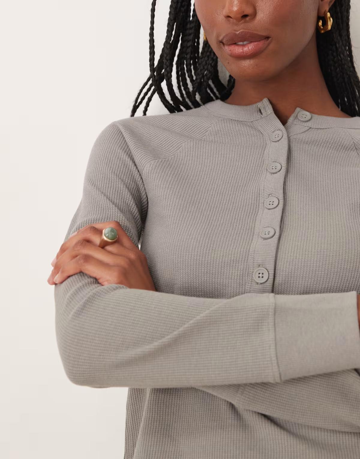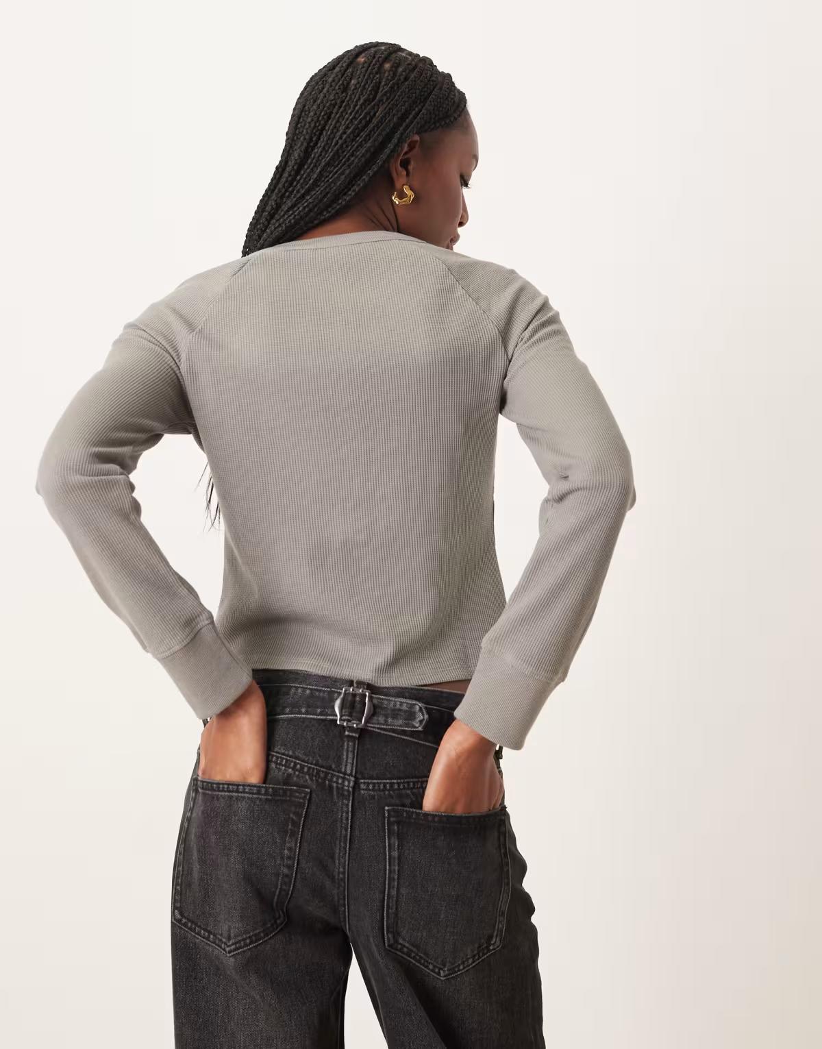 ASOS DESIGN raglan sleeve thick waffle henley in grey