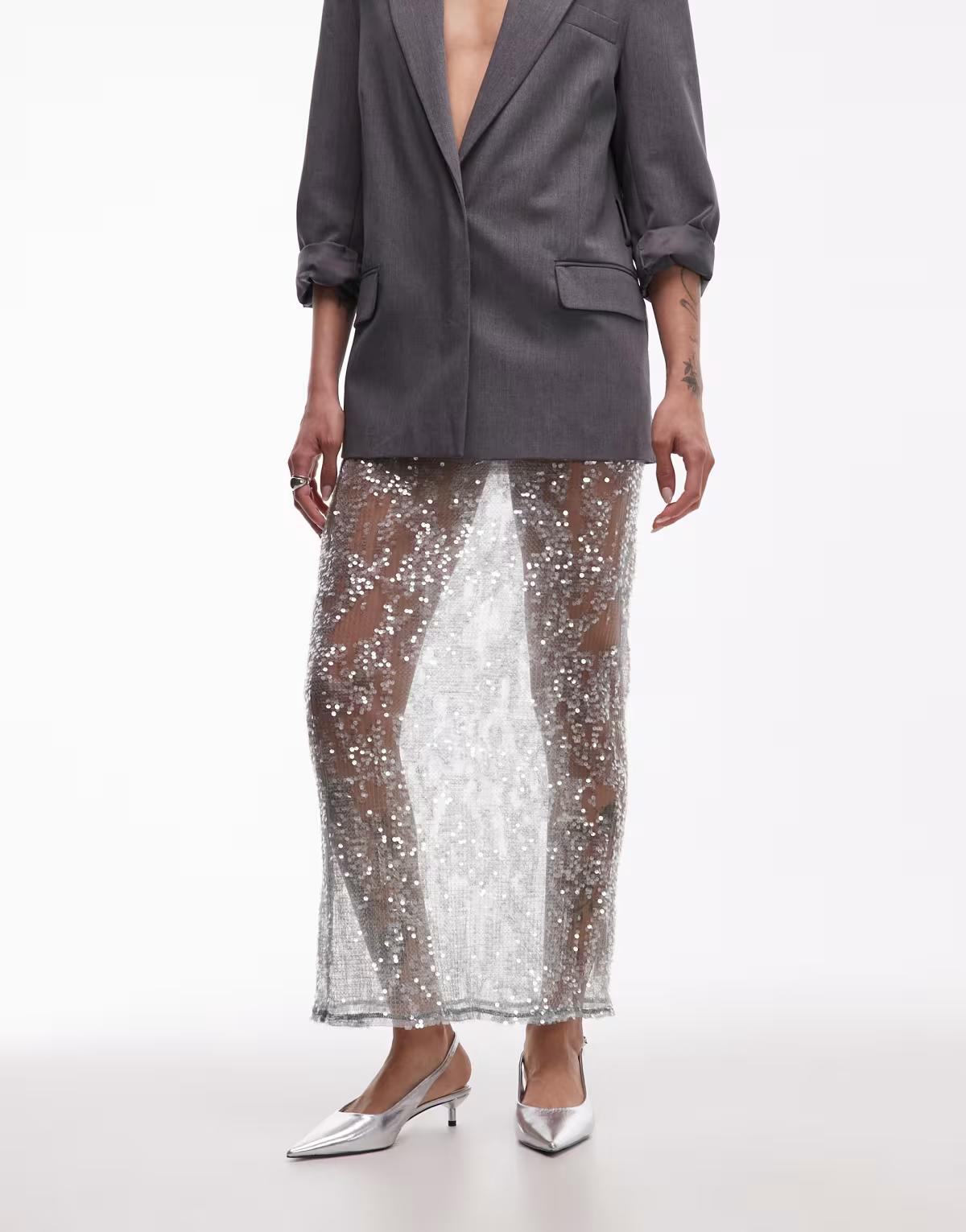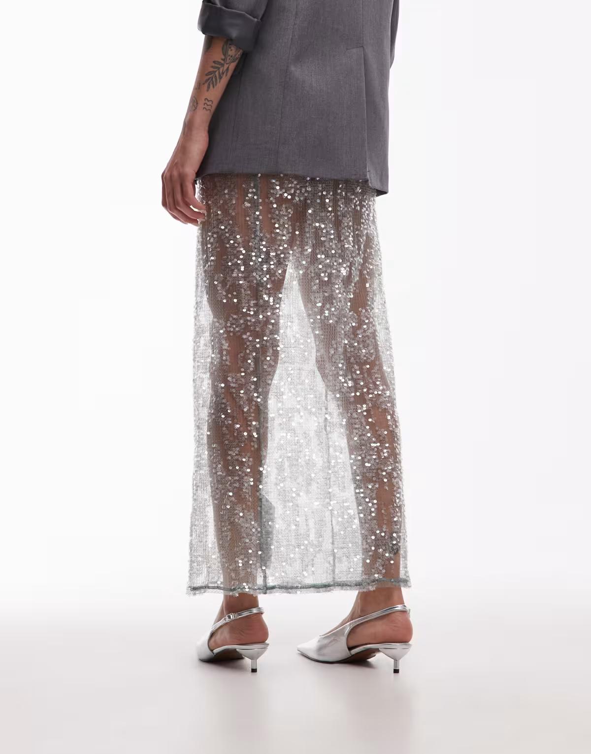 ASOS DESIGN sheer sequin mesh maxi skirt in mint