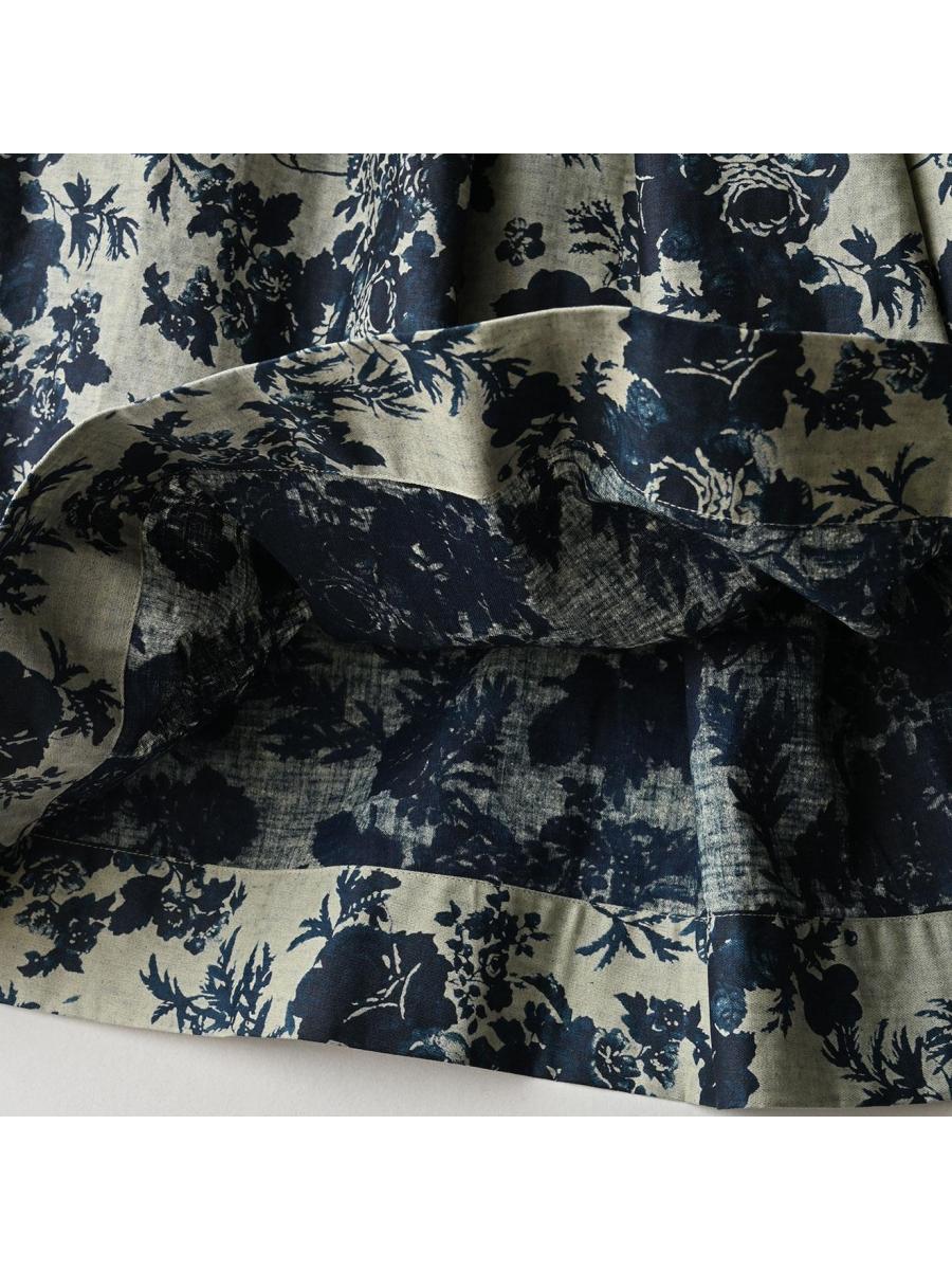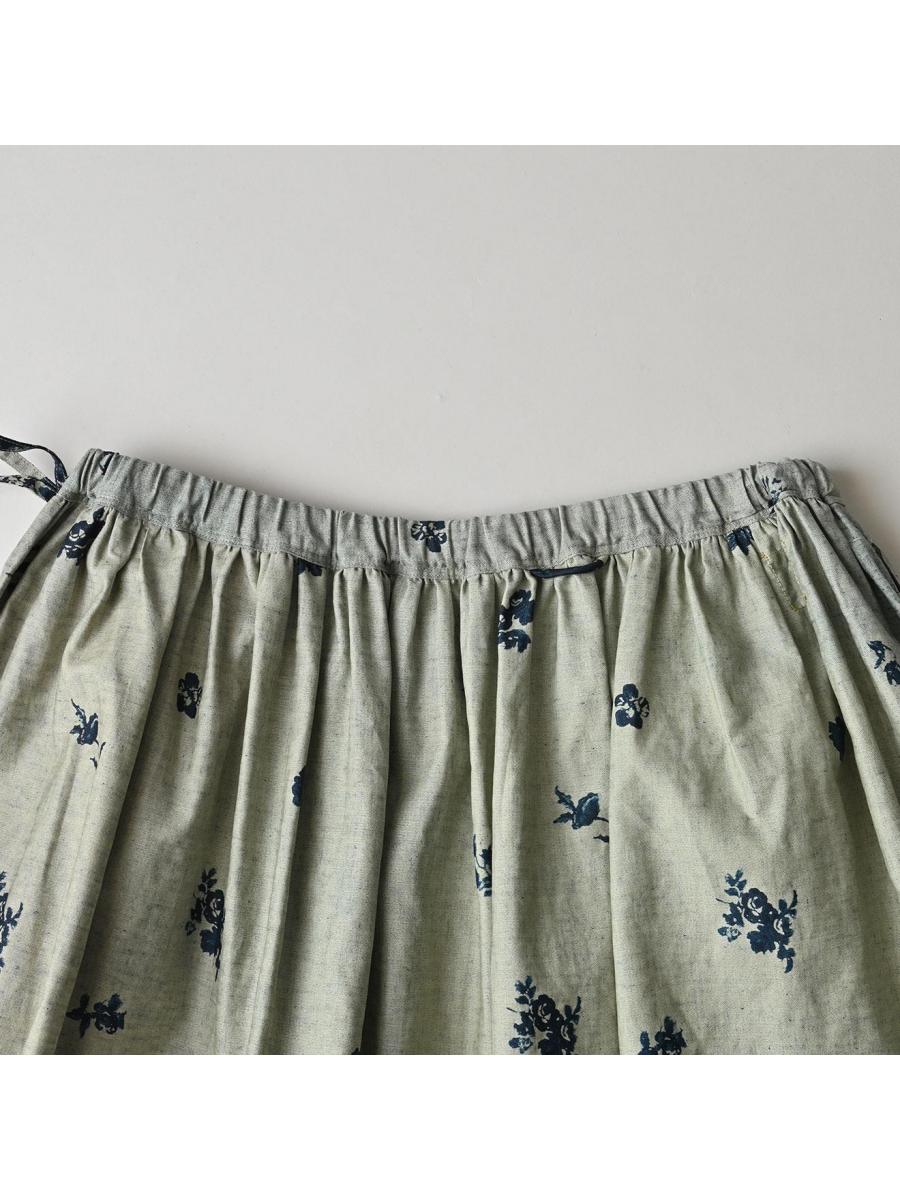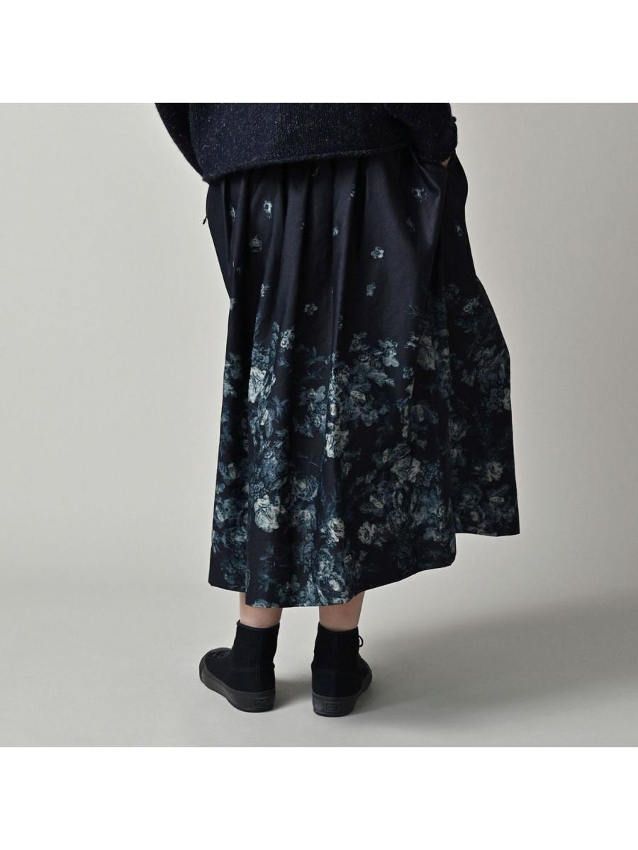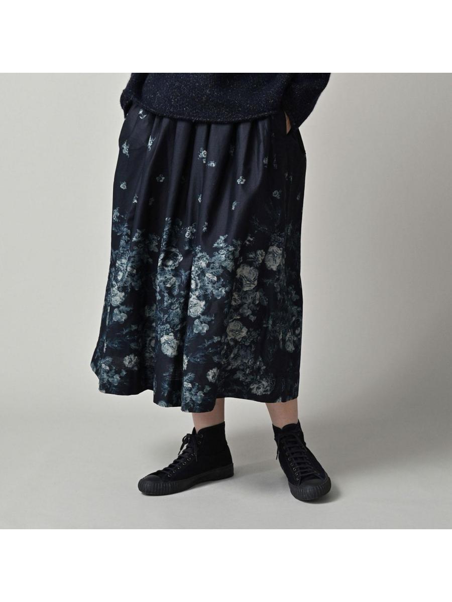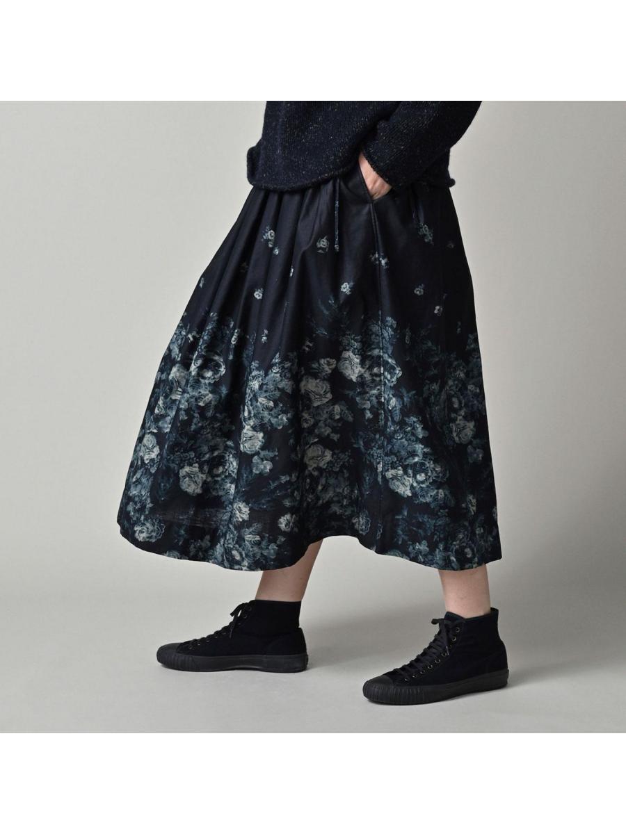 インディゴ抜染ローズプリントのイージーギャザースカート