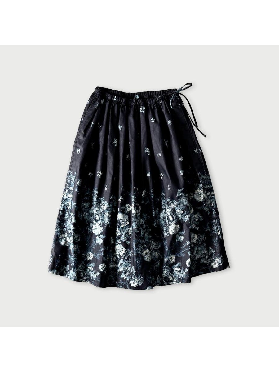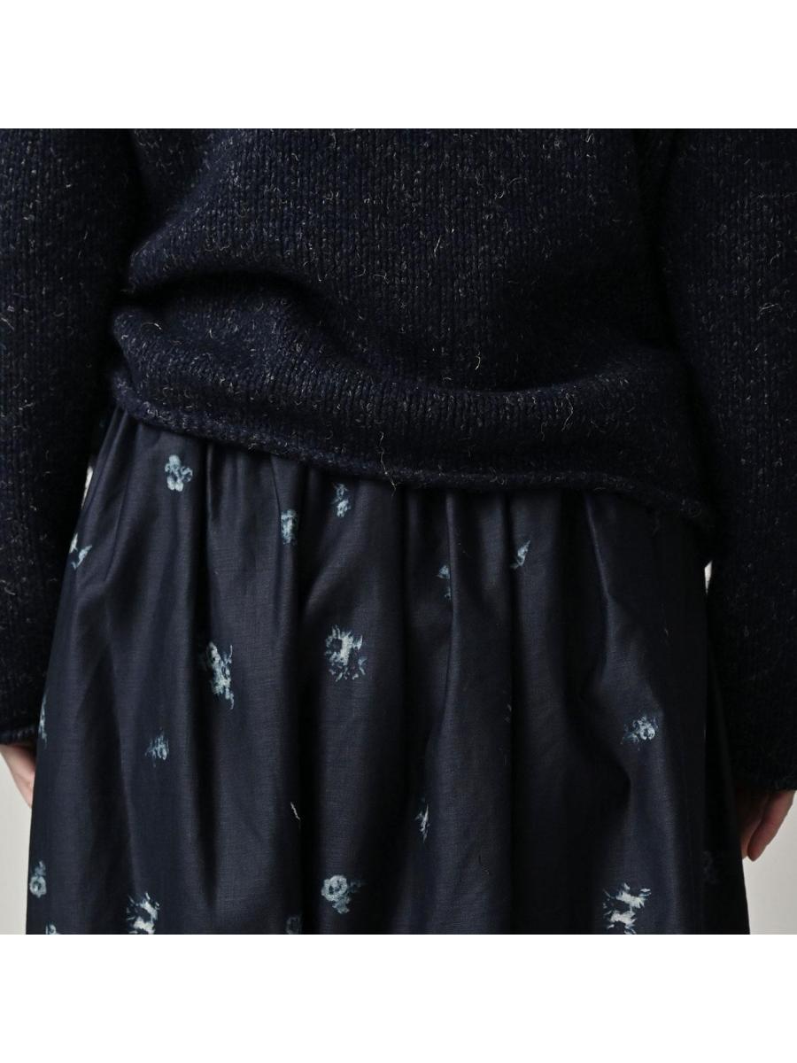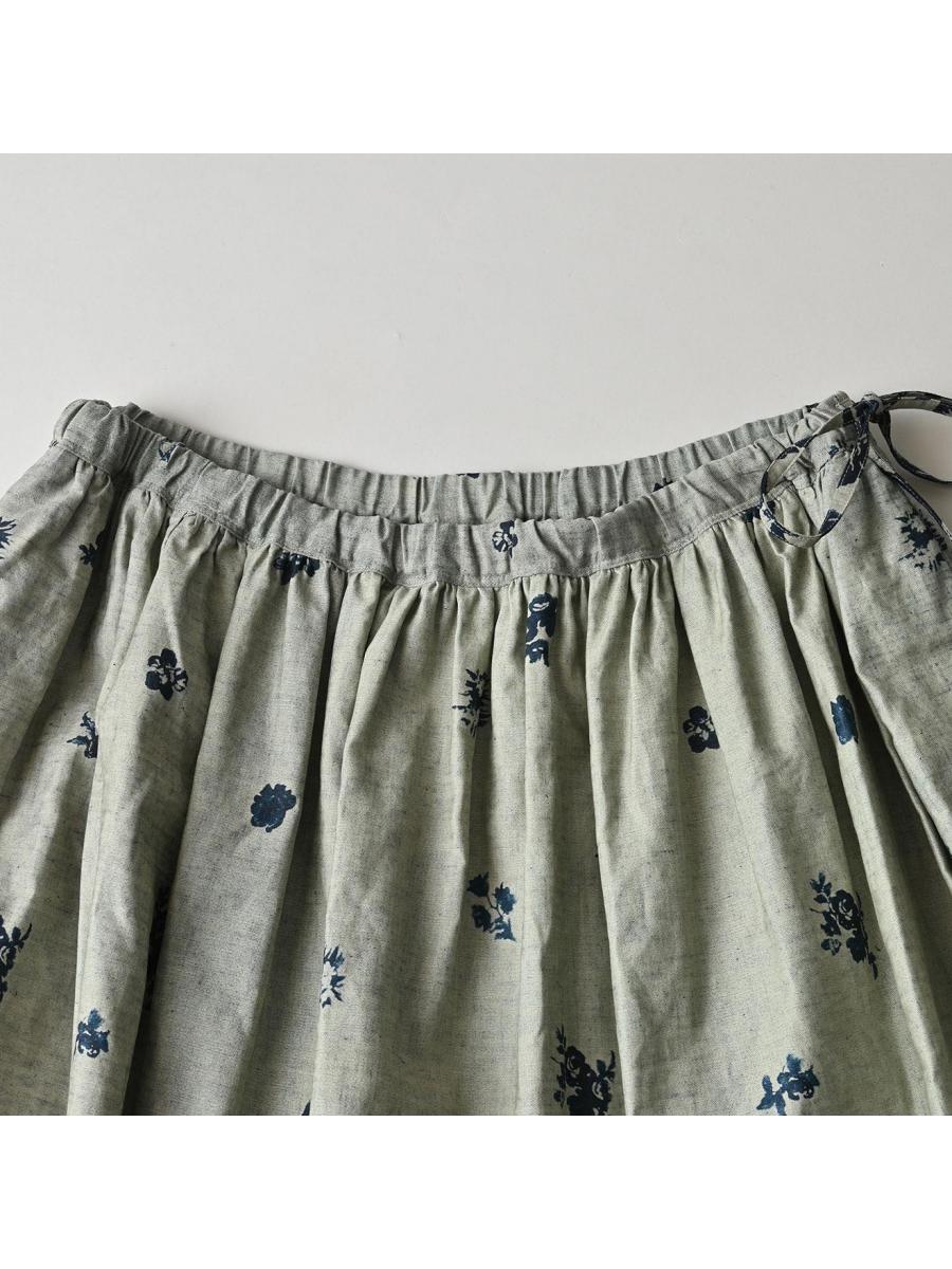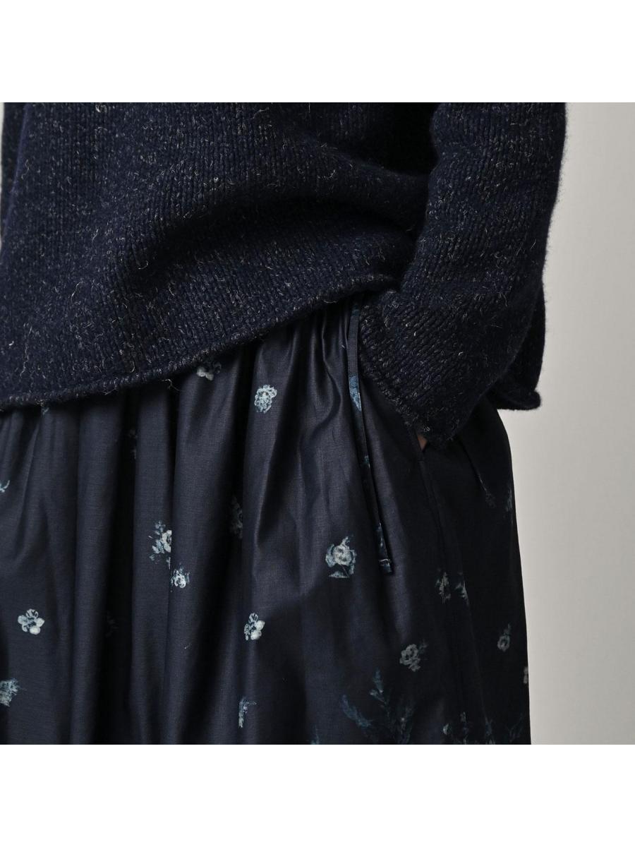 インディゴ抜染ローズプリントのイージーギャザースカート