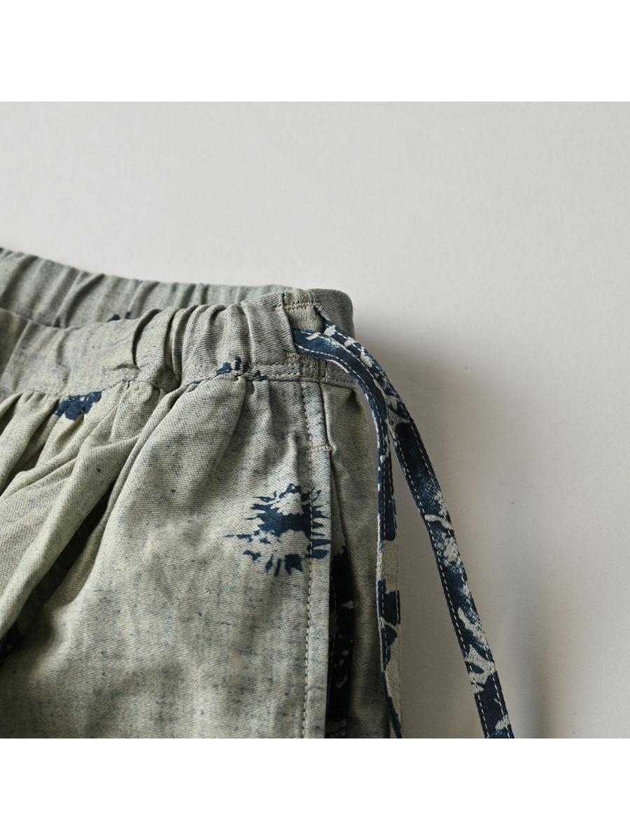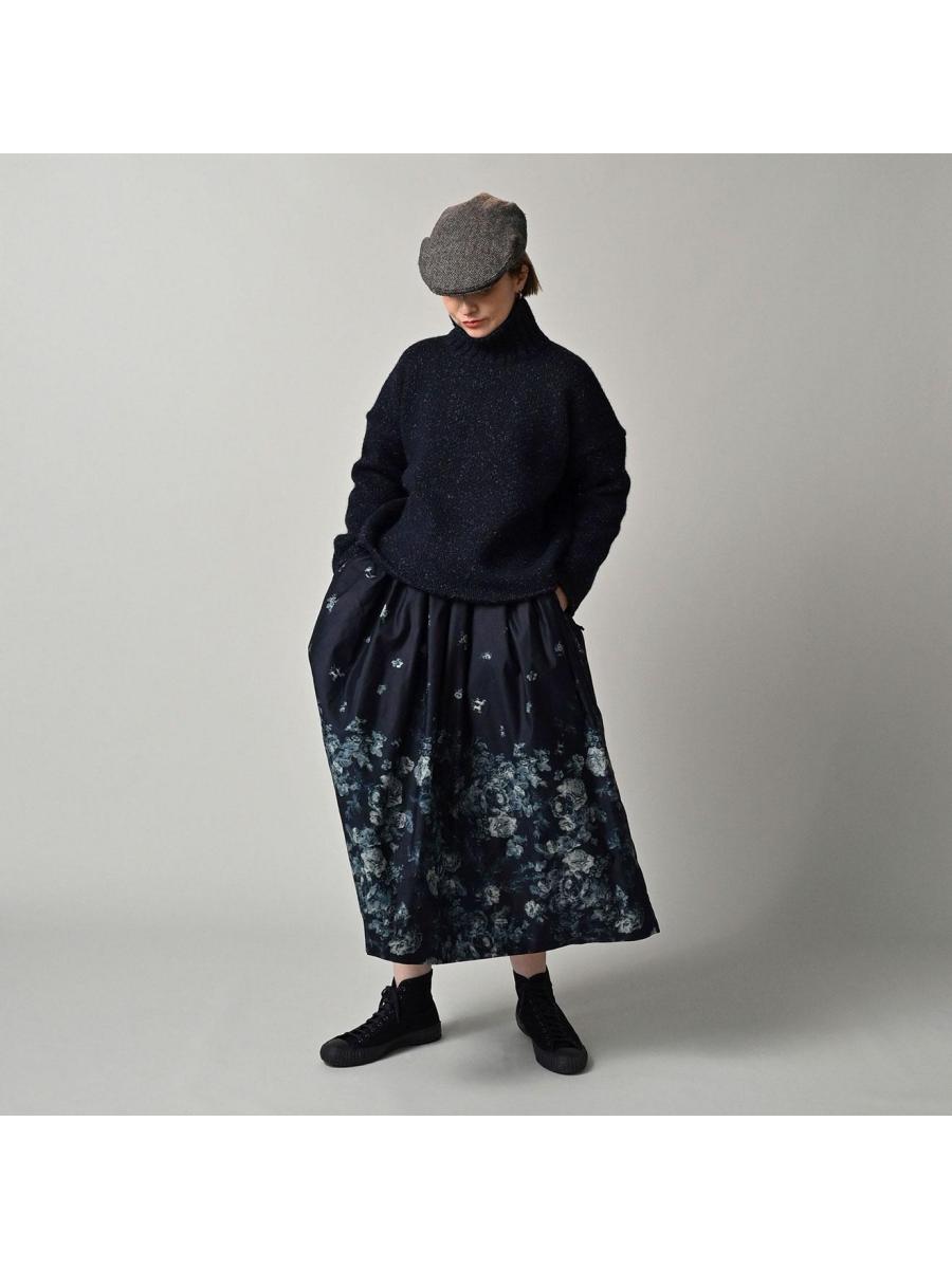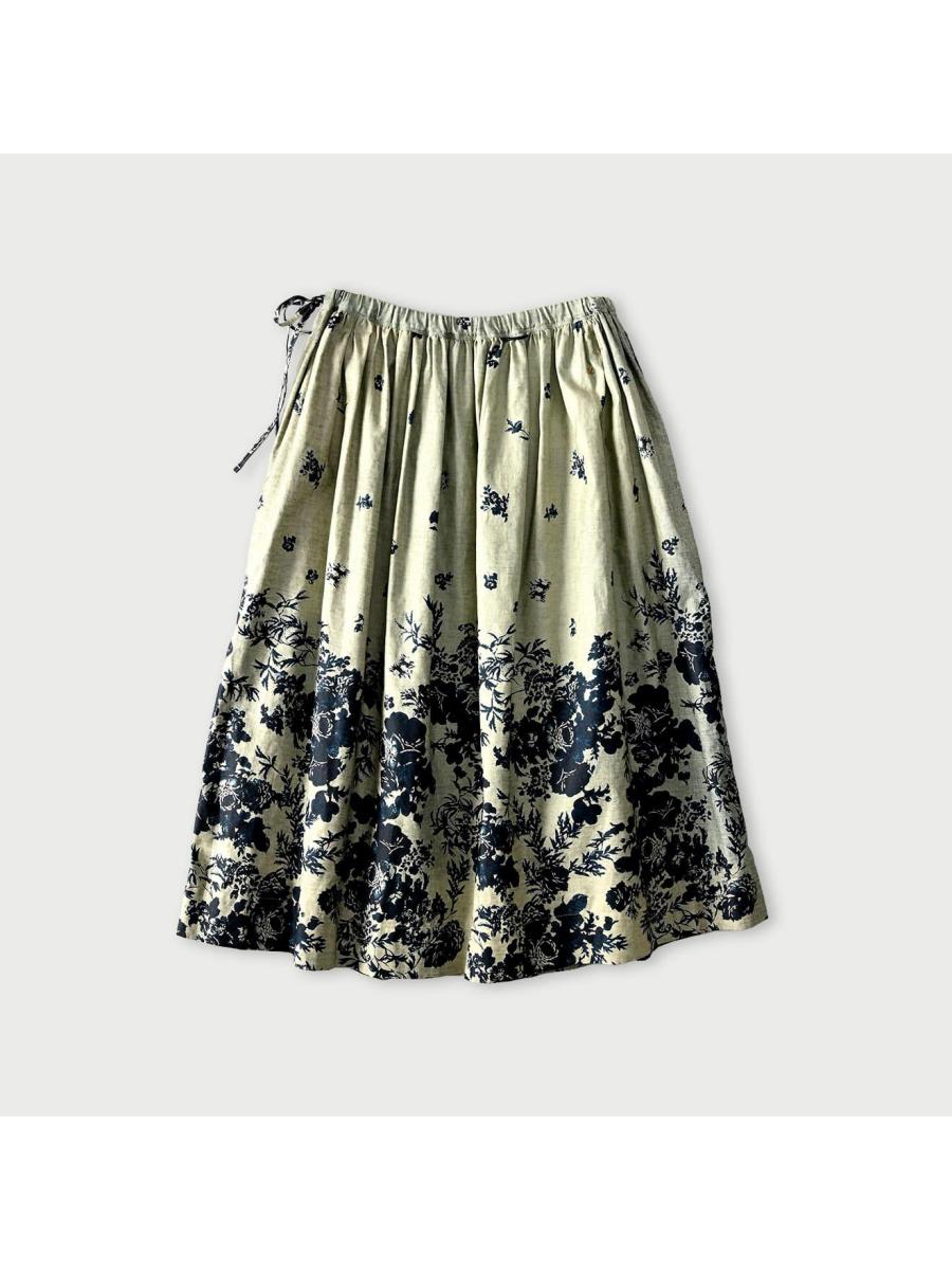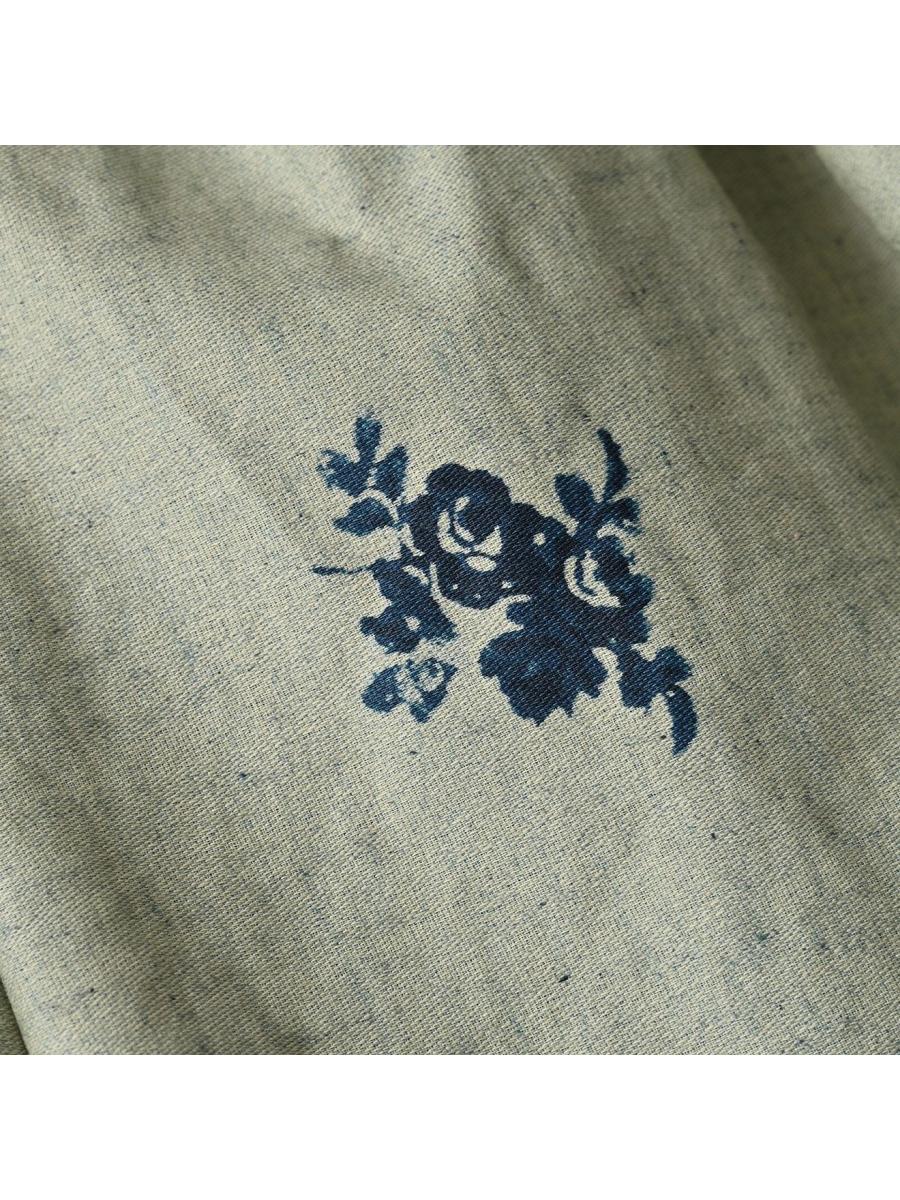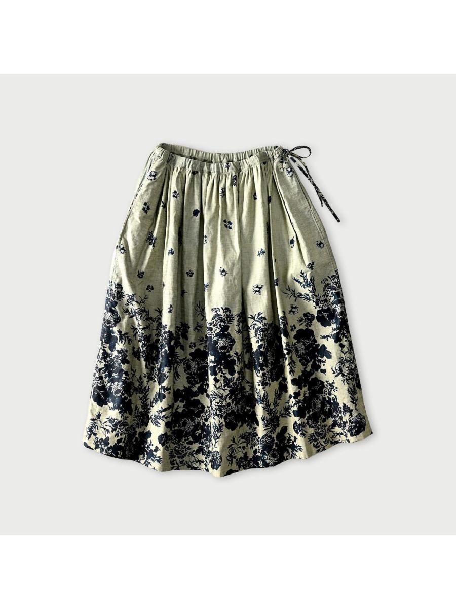 インディゴ抜染ローズプリントのイージーギャザースカート