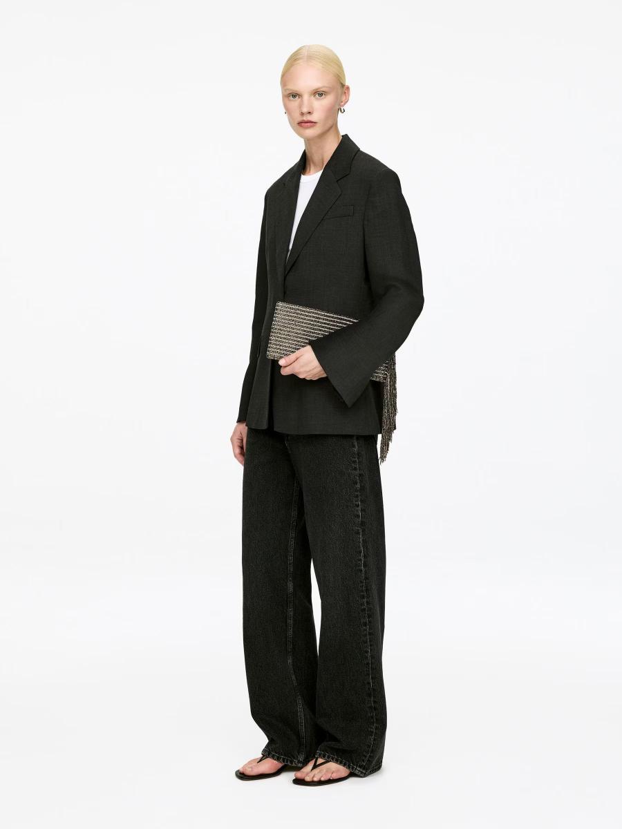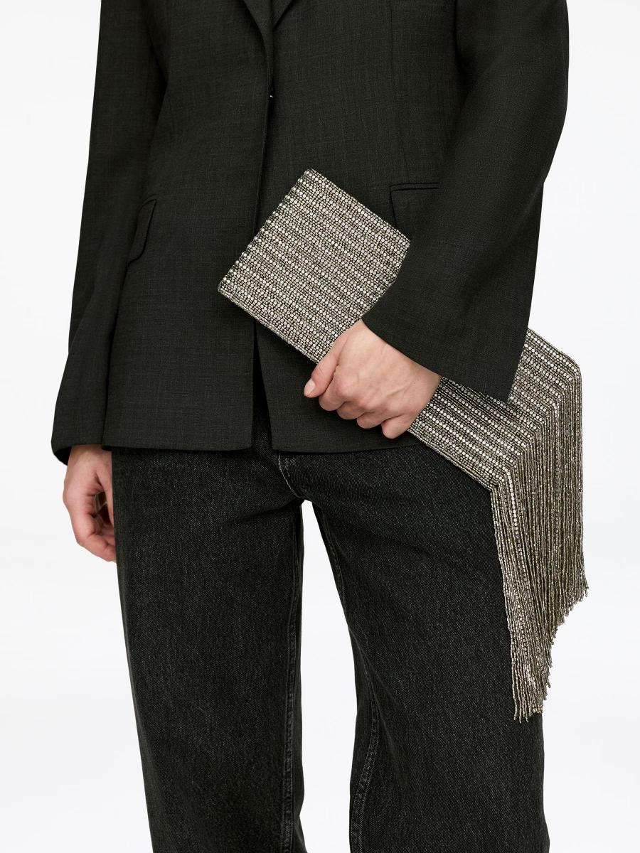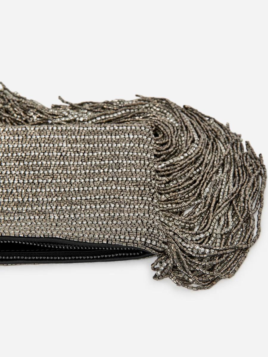 Clutch bag embellished with beads and rhinestones. One side features a beaded and rhinestoned fringe. Zip fastening with a detachable shoulder strap inside. Measurements: width 30 cm, height 13.5 cm, fringe length 20 cm.ARKET/Women's clothes/Women's new arrivals/Women's new arrivals – Shoes and accessories