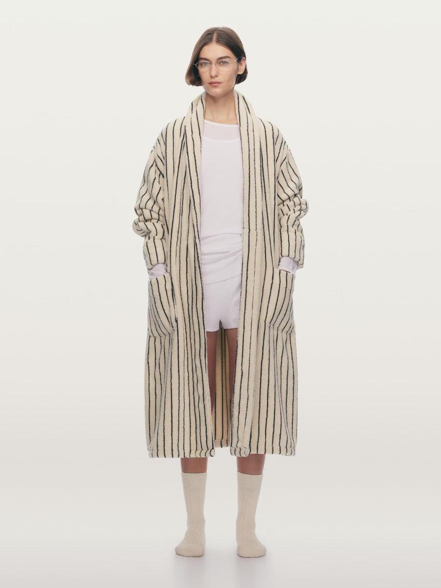 Bathrobe crafted from soft cotton terry, featuring a hood, a tie belt at the waist, and two patch pockets at the front.ARKET/All homeware/Bathroom collection