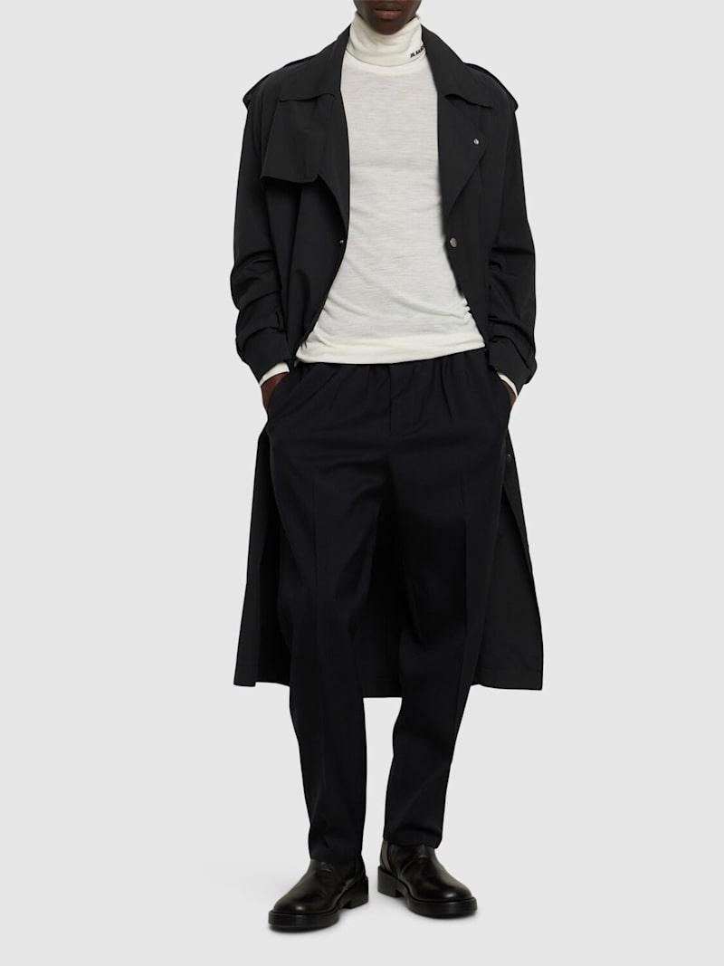 Relaxed版型羊毛华达呢短款裤子 - 海军蓝 - 男士 - Jil Sander - 弹性腰头.