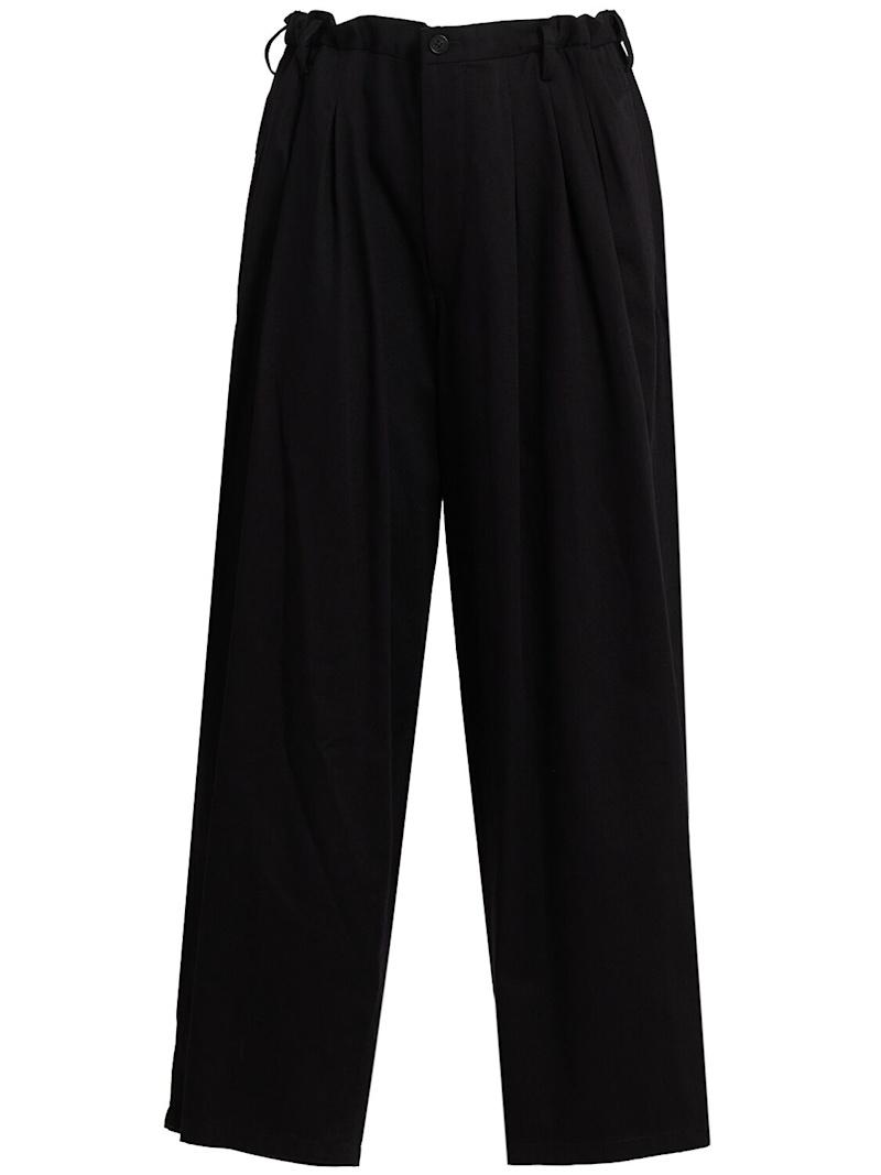 打褶裤子 - 黑色 - 男士 - 正面纽扣和隐藏式拉链开合.