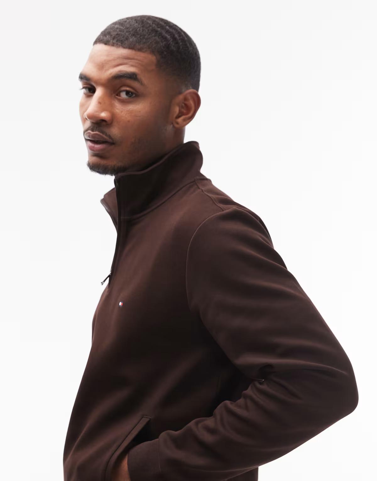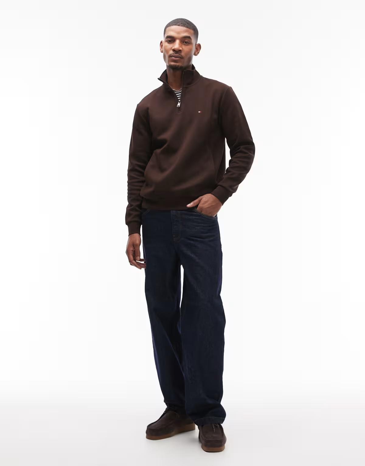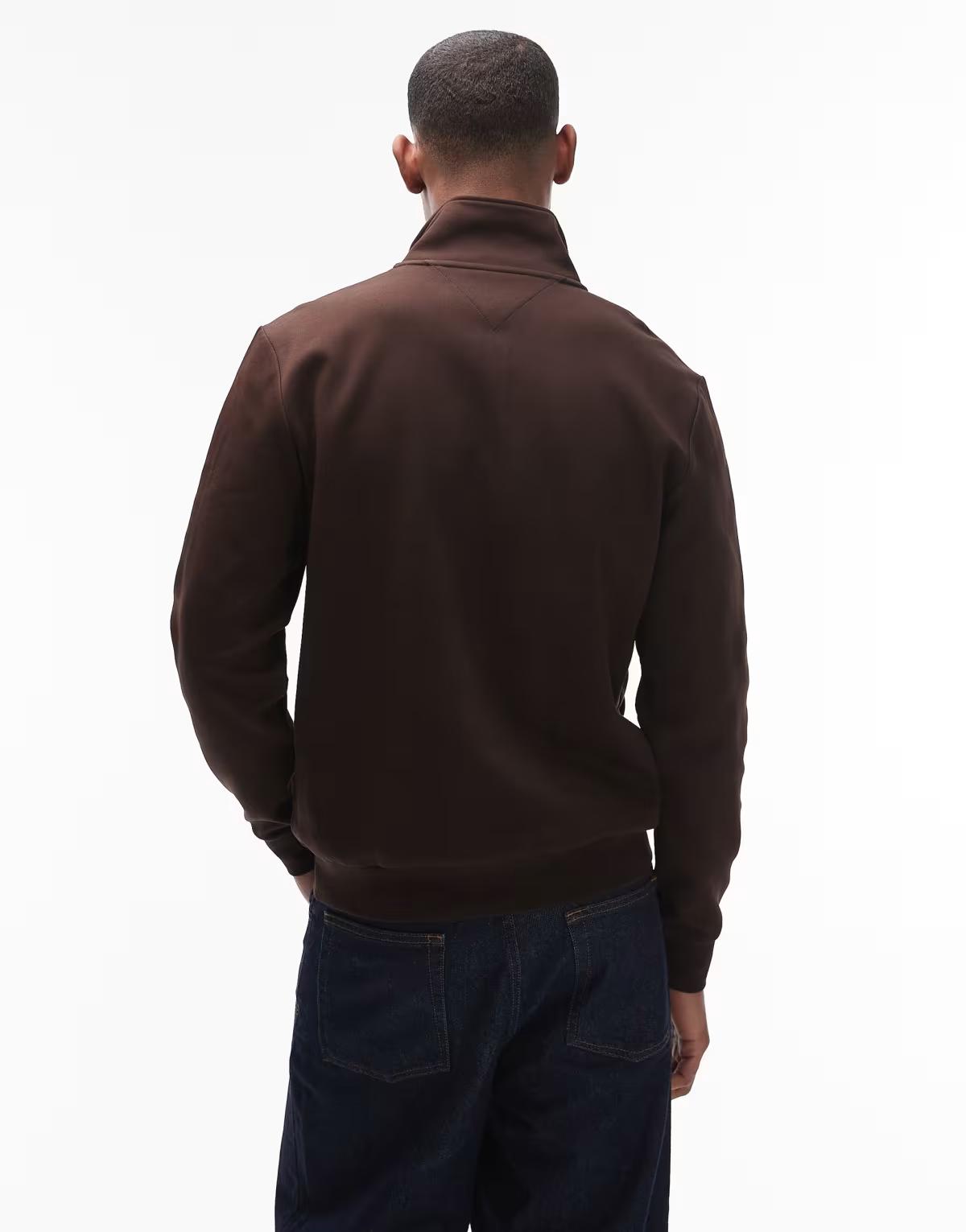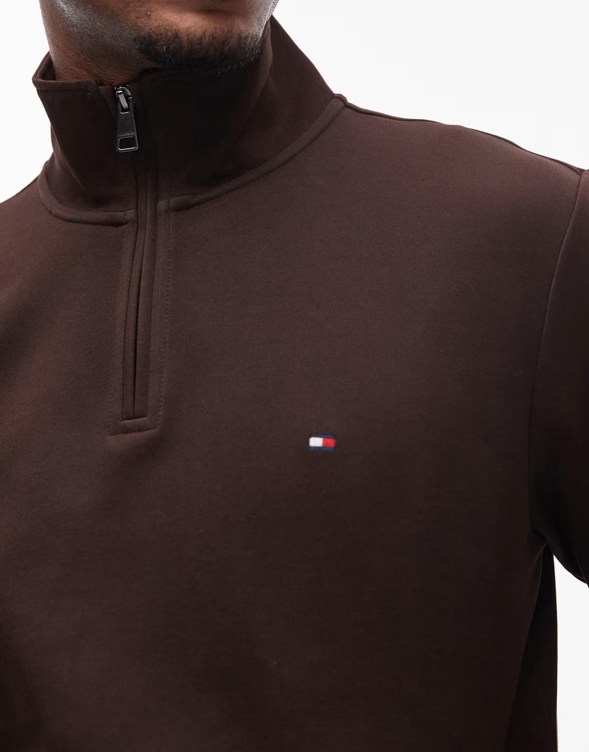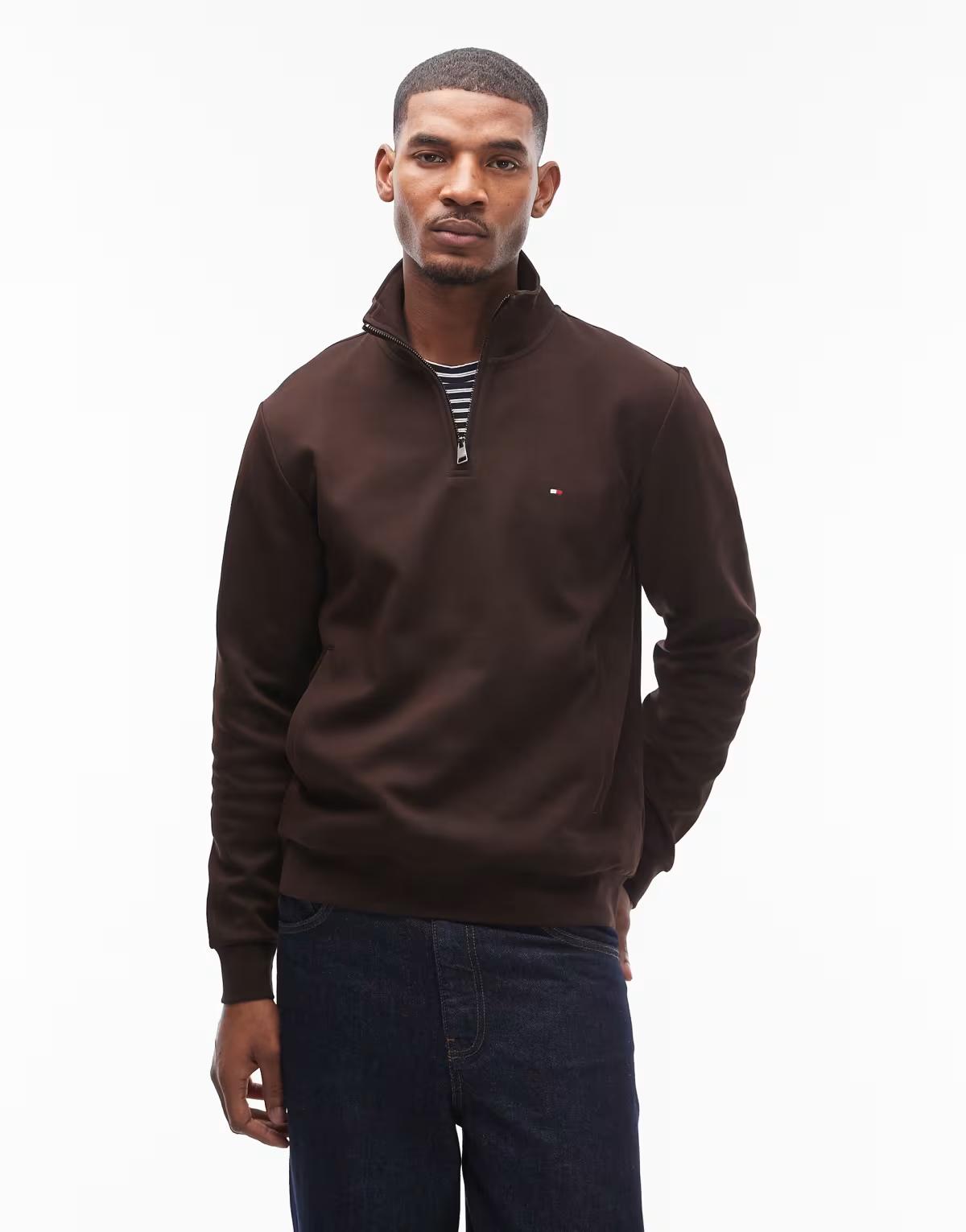 Tommy Hilfiger essential 1/4 zip jumper in chocolate brown