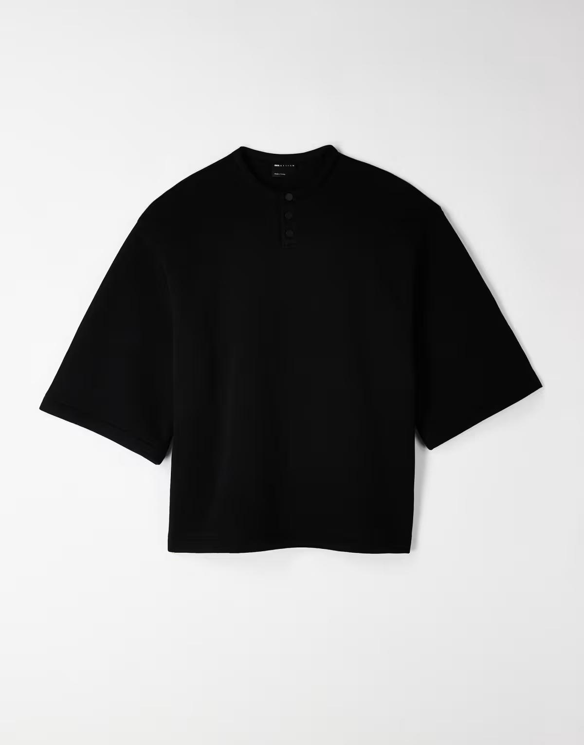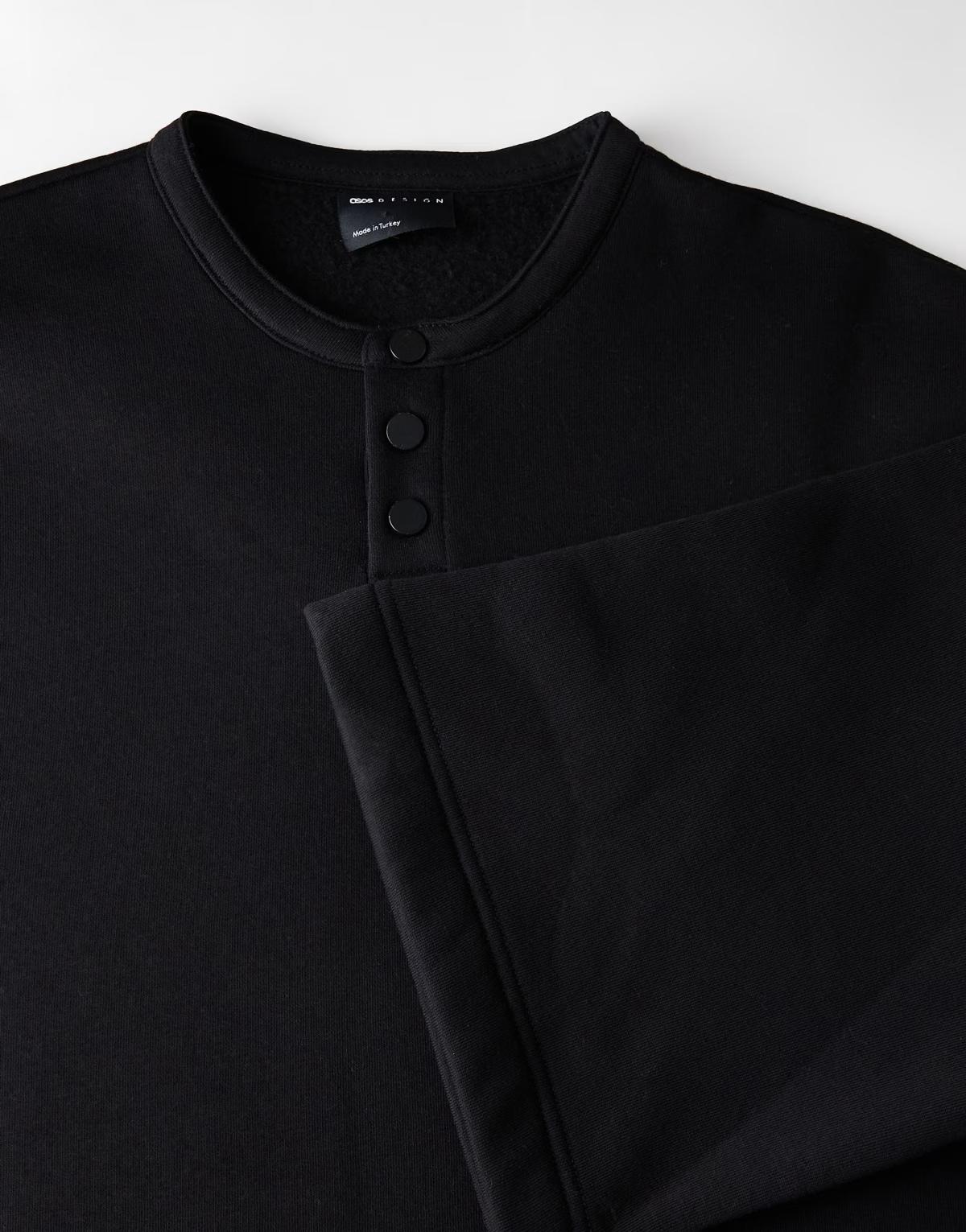 ASOS DESIGN co-ord short sleeve henley sweatshirt in black