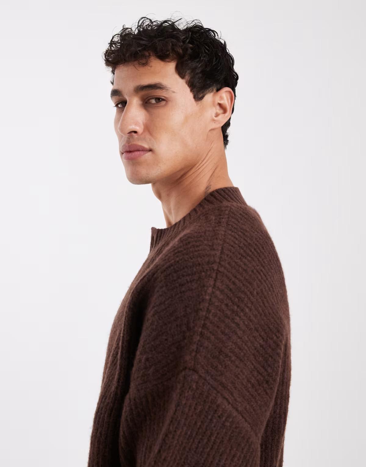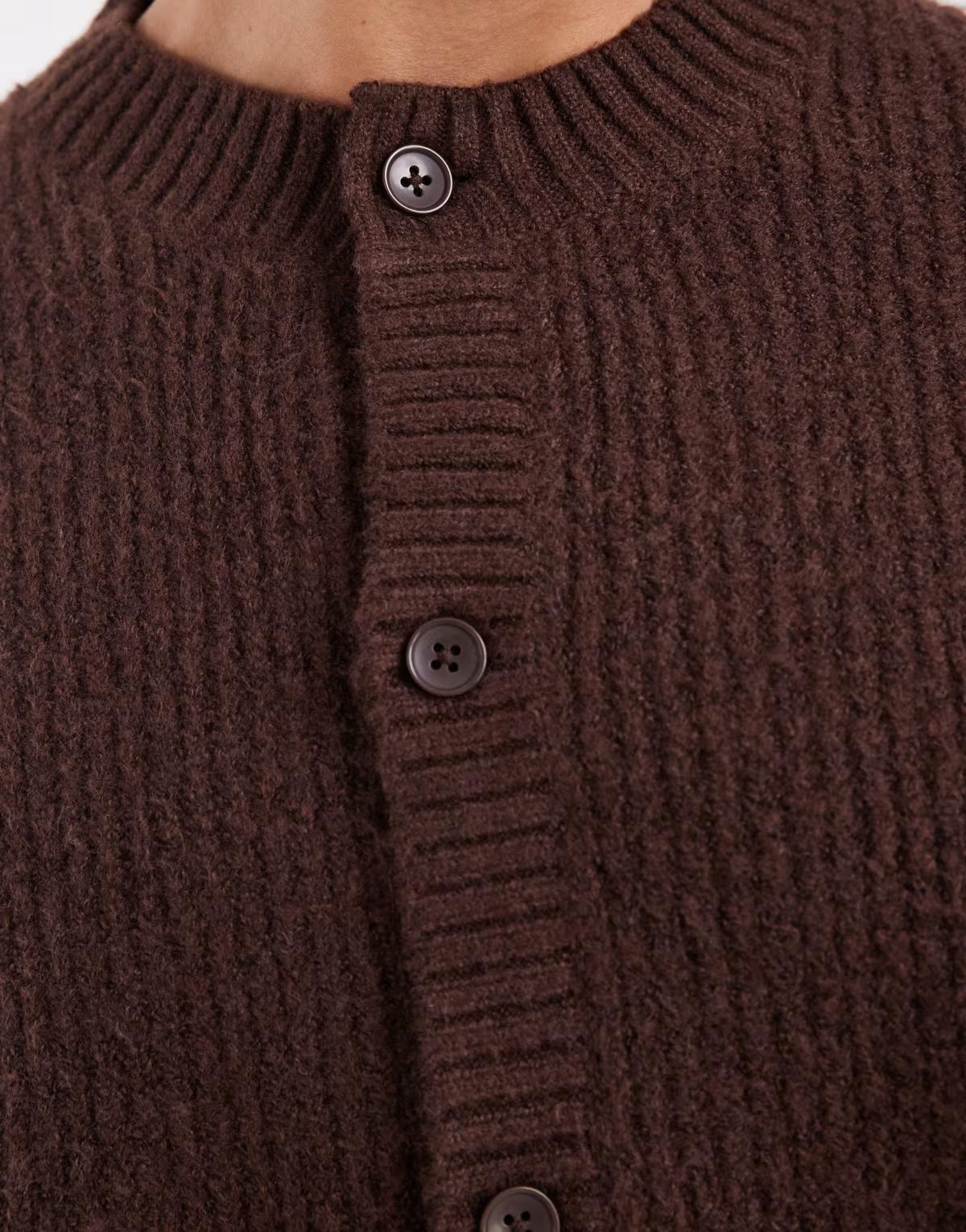 Jack & Jones crew neck cardigan in dark brown