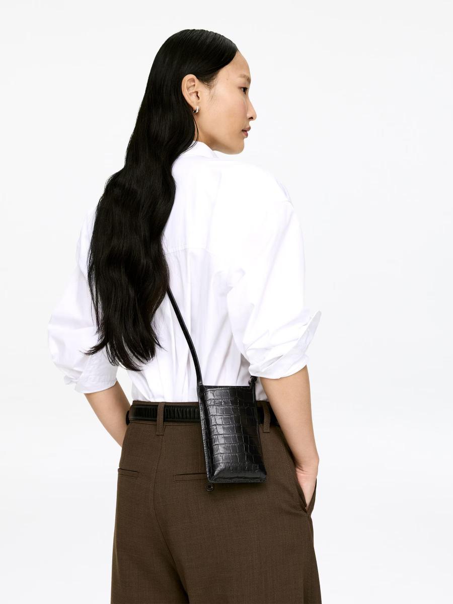 Phone case crafted from leather with an embossed croco pattern.. Styled with a slim adjustable shoulder strap. Width 10.5 cm, length 17 cm.ARKET/Women's clothes/Women's new arrivals/Women's new arrivals – Shoes and accessories