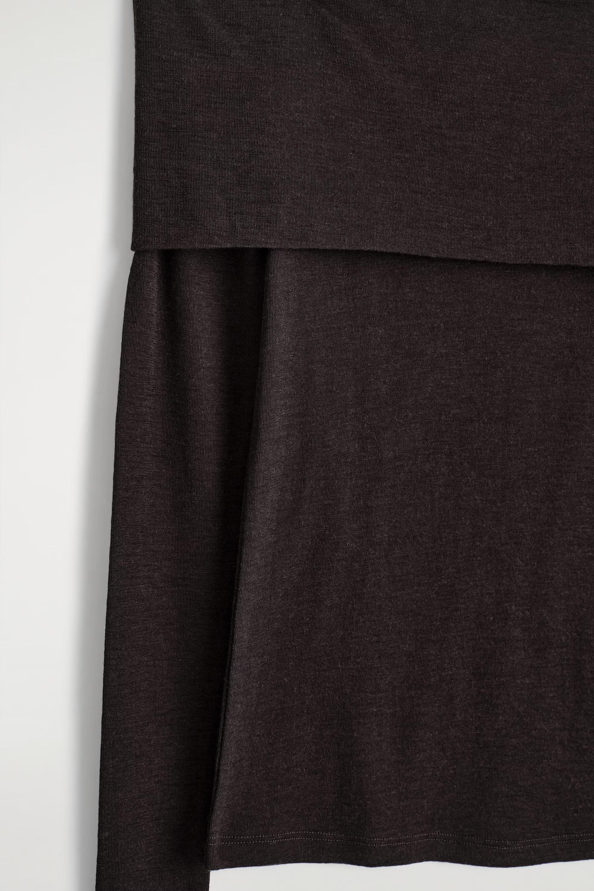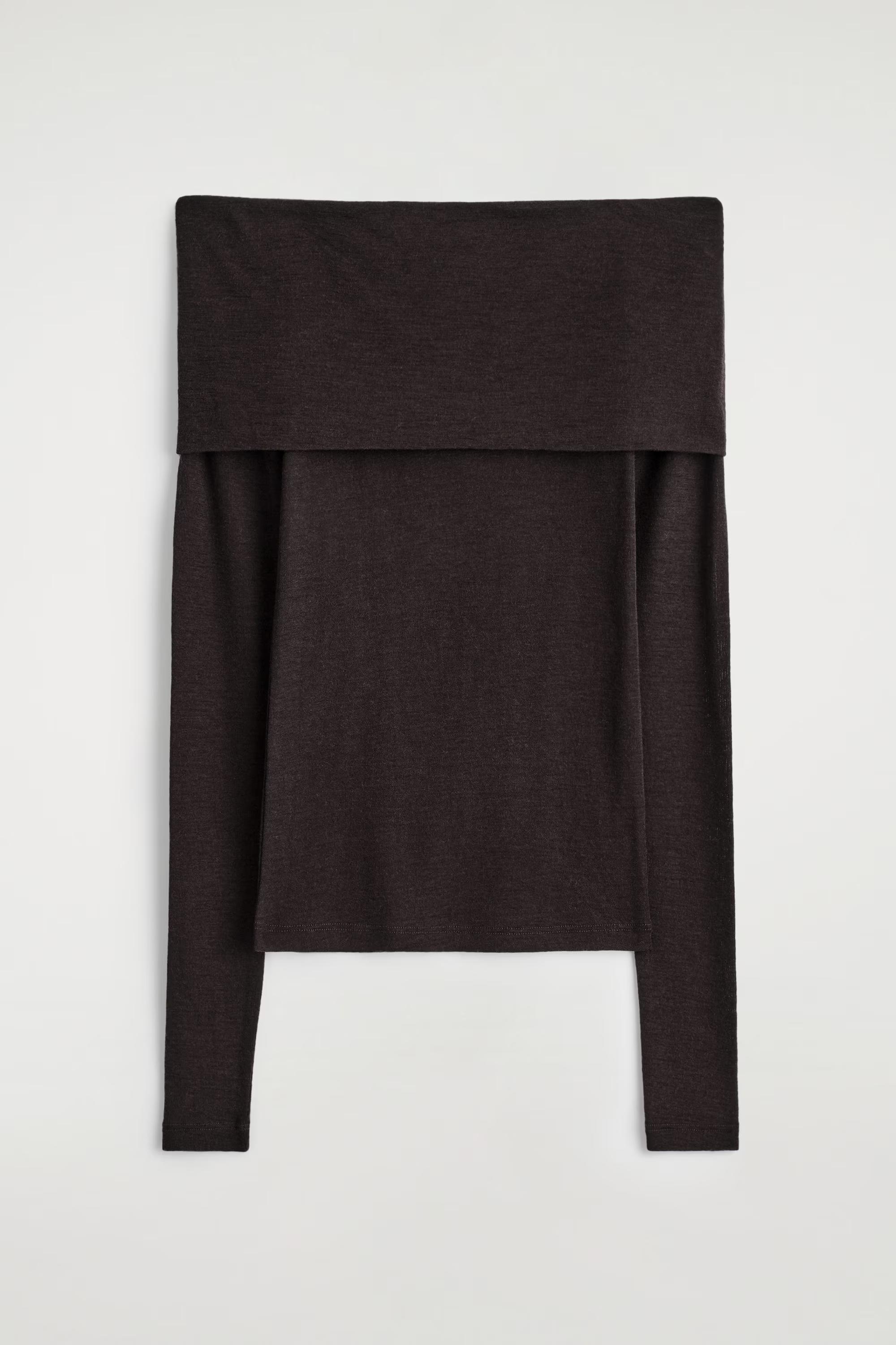 This modern off-the-shoulder top is designed with a bardot detail to elegantly frame the d\u0026eacute;colletage. It's cut in a form-fitting slim shape and crafted from pure merino wool.\u0026nbsp;Slim fitThis product contains Responsible Wool Standard TE-00047206 (RWS) wool fibre from farms certified to animal welfare and land-management requirements\u0026nbsp;Shell: 100% Merino wool. Excluding trims / Machine wash\u0026nbsp;Back length of size S is 50.6cm / Model wear size S
