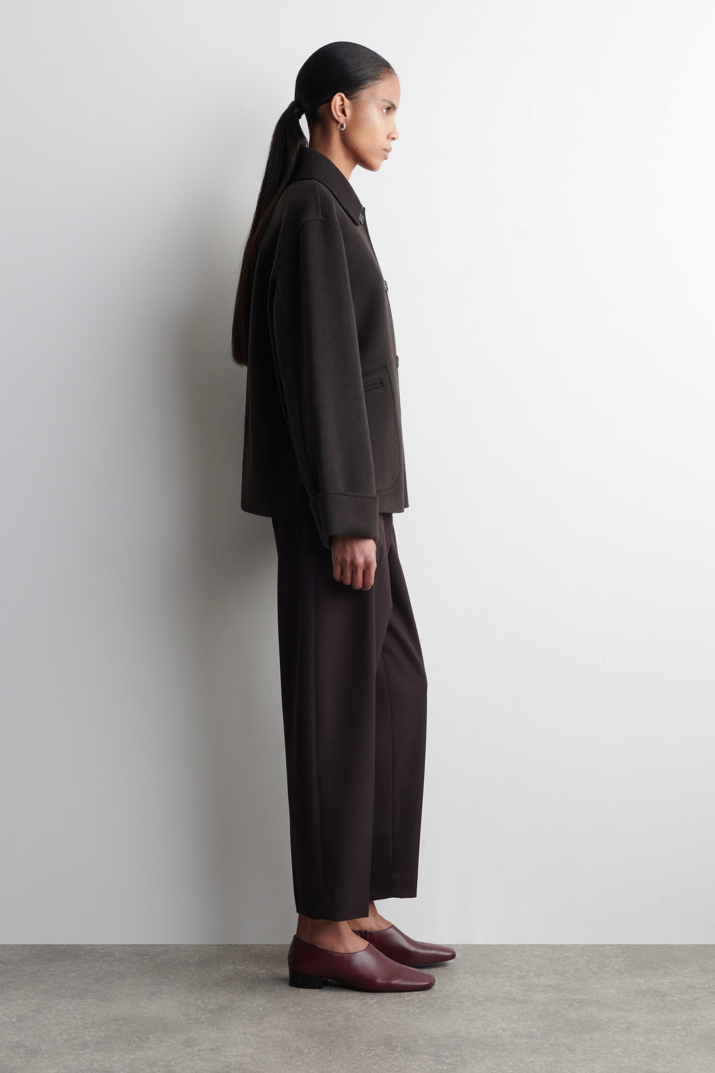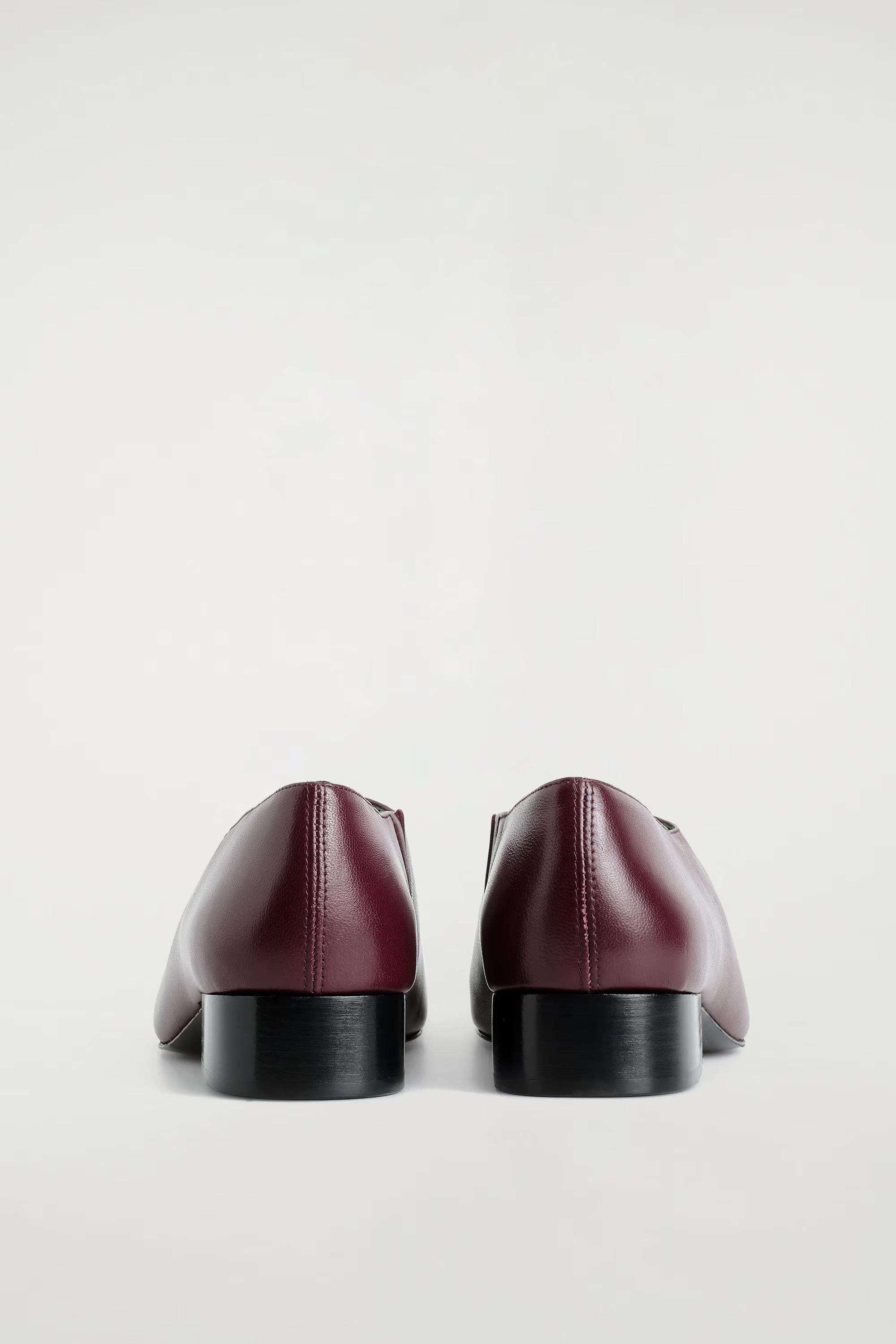These modern heeled shoes are crafted from butter-soft leather and feature square toes with premium topstitched detailing. They're finished with discreet elasticated panels so that they slip on effortlessly.\u0026nbsp;\u0026nbsp;COS supports responsible manufacturing via the Leather Working Group\u0026nbsp;\u0026nbsp;Upper and lining: 100% Leather. Sole: 100% Thermoplastic rubber. Excluding trims