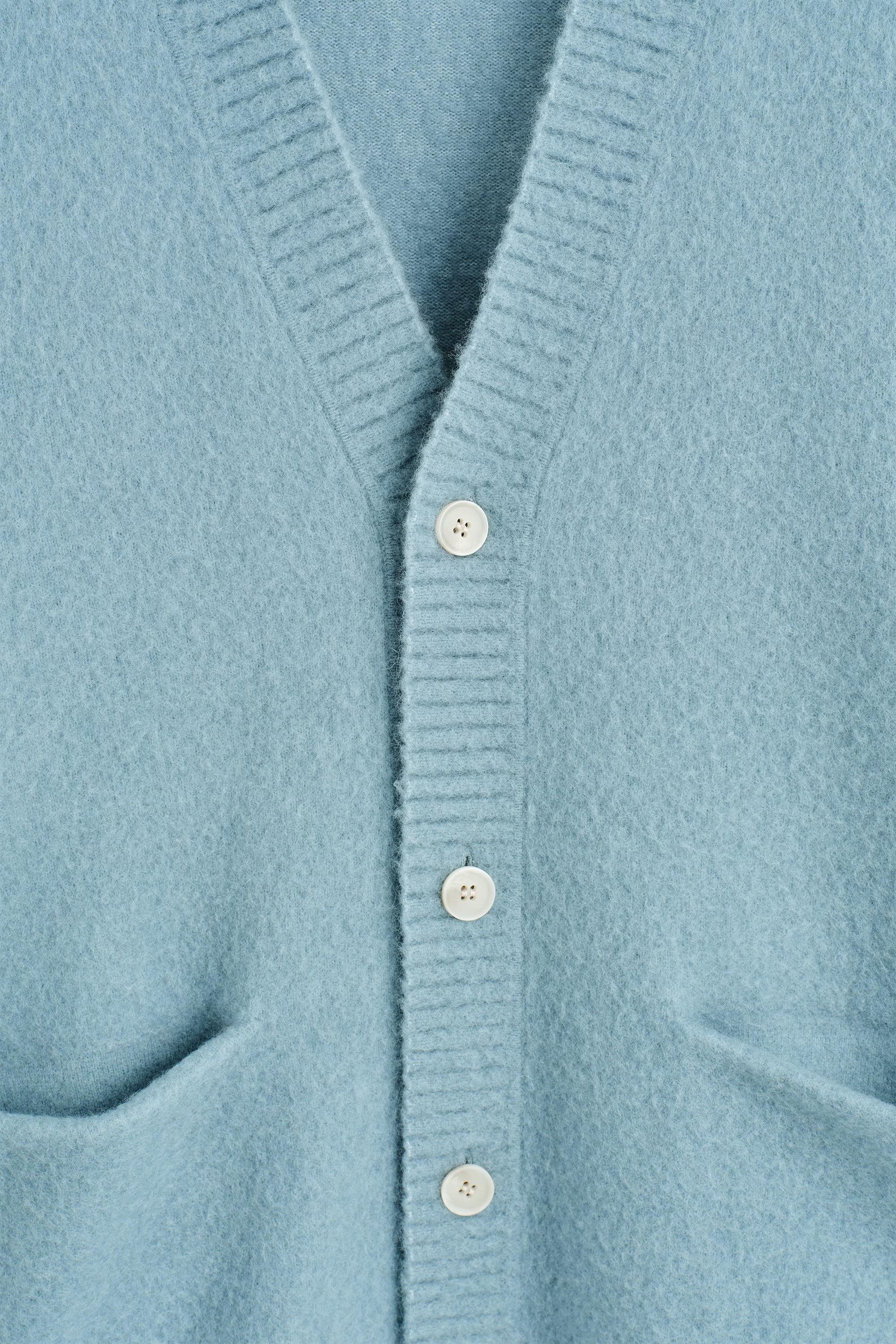 Texture and tactility are a focal point of this season's knitwear collection. Crafted from RWS wool with a hint of yak, this cardigan has a brushed surface that's soft in handle and a ribbed V-neck placket that's ideal for transitional layering. Style it over tailoring for a considered look.\u0026nbsp;Relaxed fitButton closureThis product contains Responsible Wool Standard TE-00047206 (RWS) wool fibre from farms certified to animal welfare and land-management requirements\u0026nbsp;Shell: 60% RWS Wool, 27% Polyamide (Nylon), 10% Yak, 3% Recycled elastane. Excluding trims / Dry clean\u0026nbsp;Back length of size M is 65cm / Model wears a size M