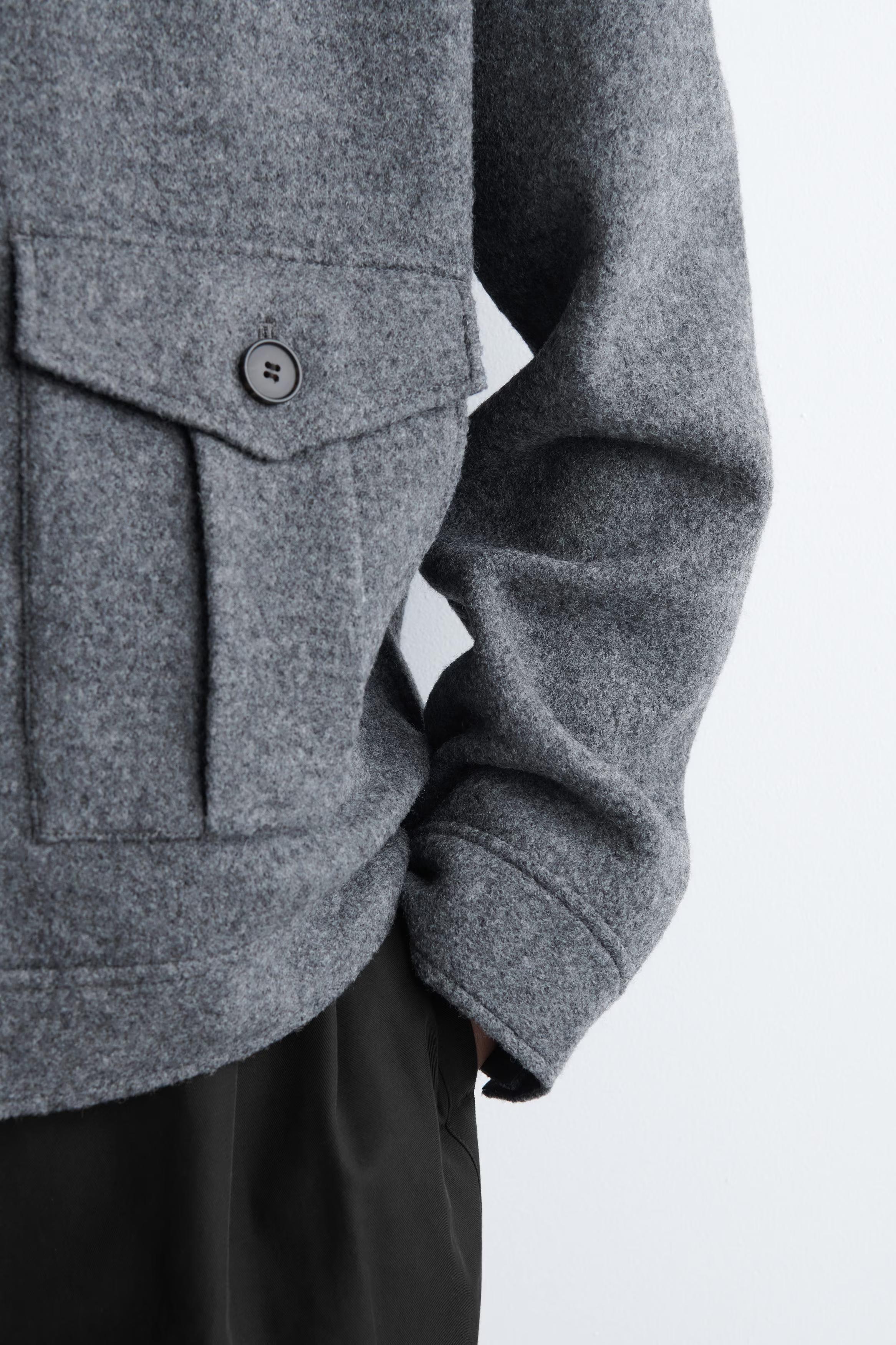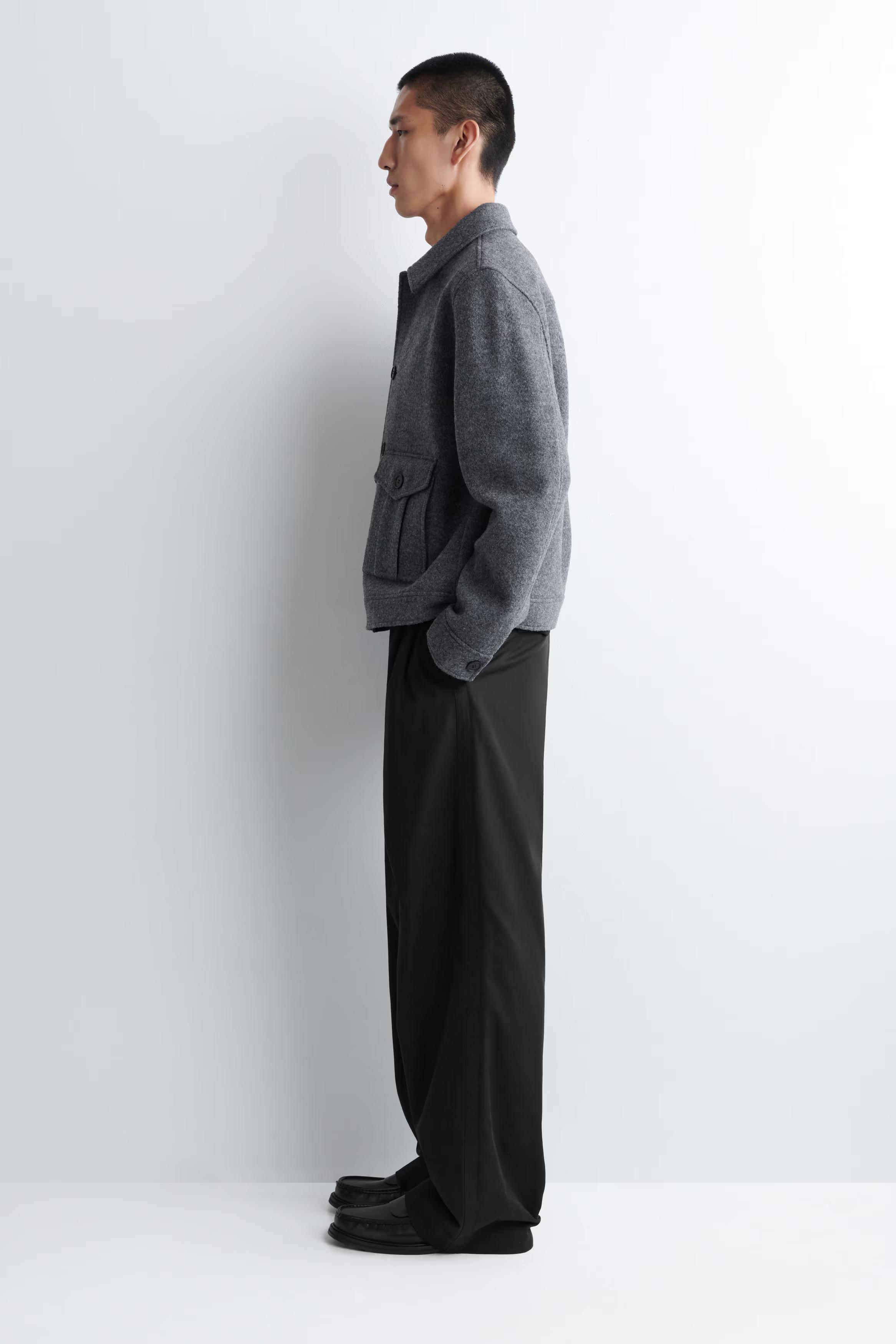The COS outerwear collection is explored through quality fabrics and a considered colour palette. This refined jacket is made from premium wool that's boiled for tactility and features double-entry pockets at the front and a slip pocket inside the lining.\u0026nbsp;\u0026nbsp;Relaxed fitButton closureThis product contains Responsible Wool Standard TE-00047206 (RWS) wool fibre from farms certified to animal welfare and land-management requirements\u0026nbsp;Shell: 100% RWS Wool. Lining: 100% TENCEL\u0026trade; Lyocell. Excluding trims / Dry clean\u0026nbsp;Back length of size M is 62.1cm / Model wears a size M