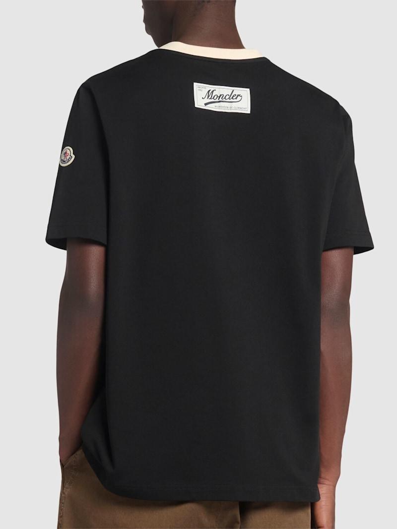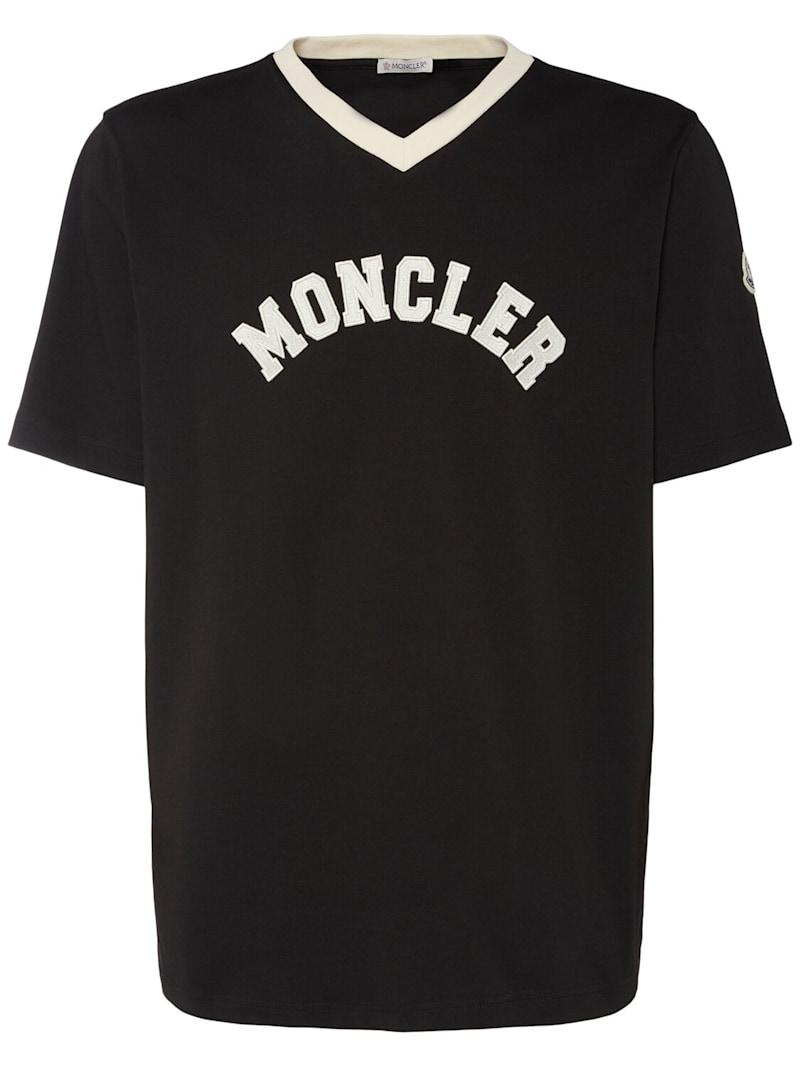 Logo厚重棉质V领T恤 - 黑色 - 男士 - Moncler - 采用棉质珠地网眼布制作.