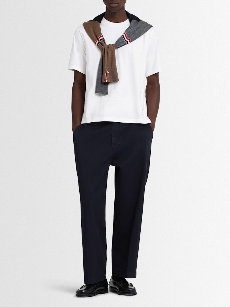 Utility成衣染色棉质裤子 - 海军蓝 - 男士 - Thom Browne - 隐藏式正面粘扣开合.