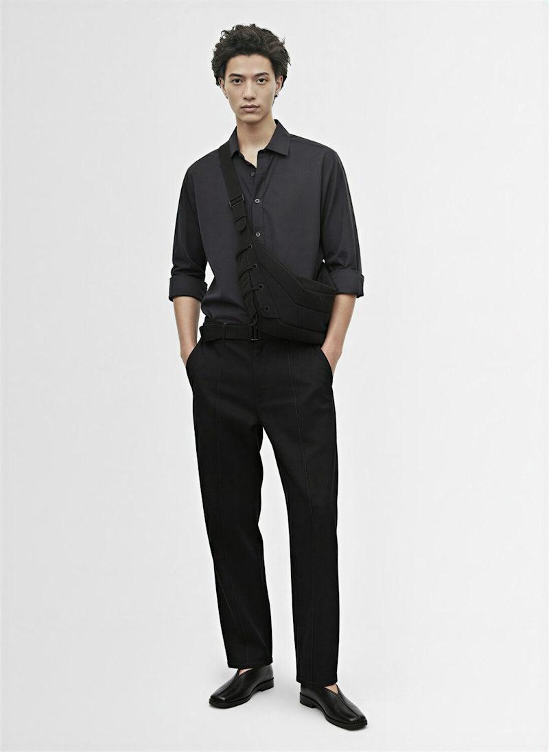 系腰带裤子 - 黑色 - 男士 - Lemaire - 隐藏式正面粘扣开合.