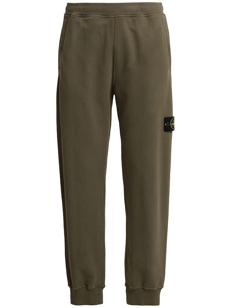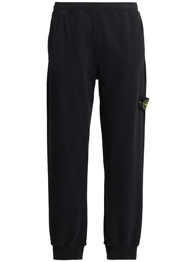 棉质拉绒运动裤 - 黑色 - 男士 - Stone Island - 松紧腰头和裤脚.