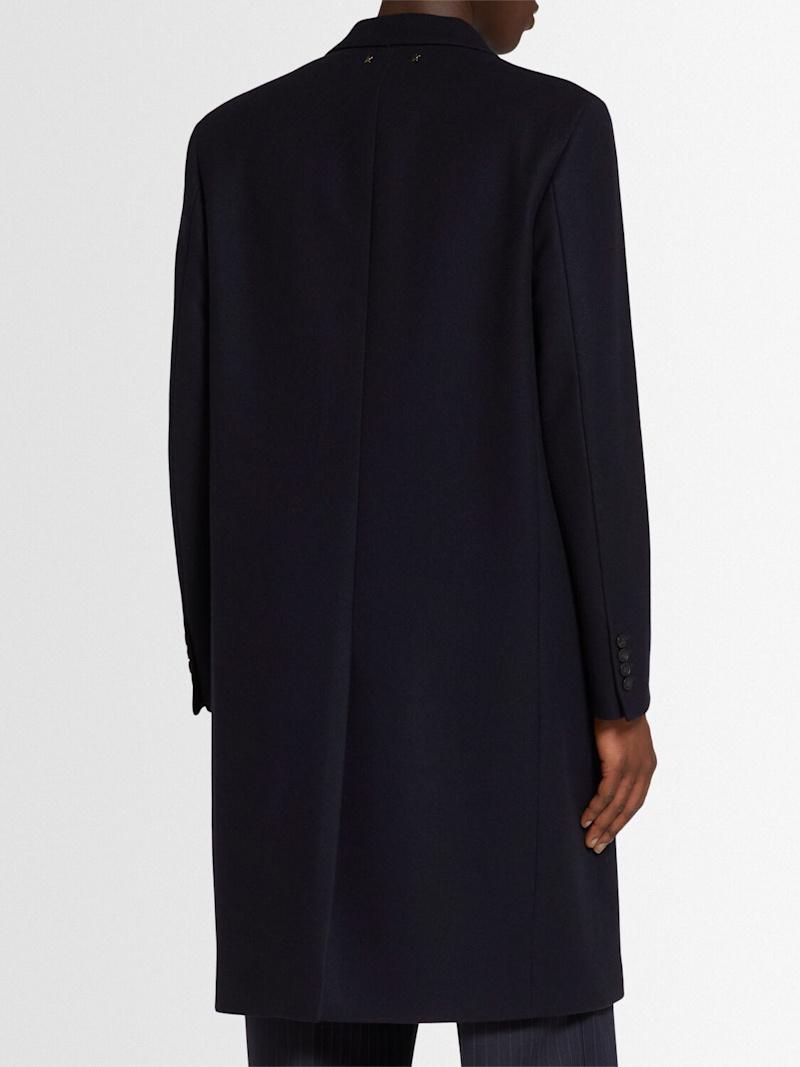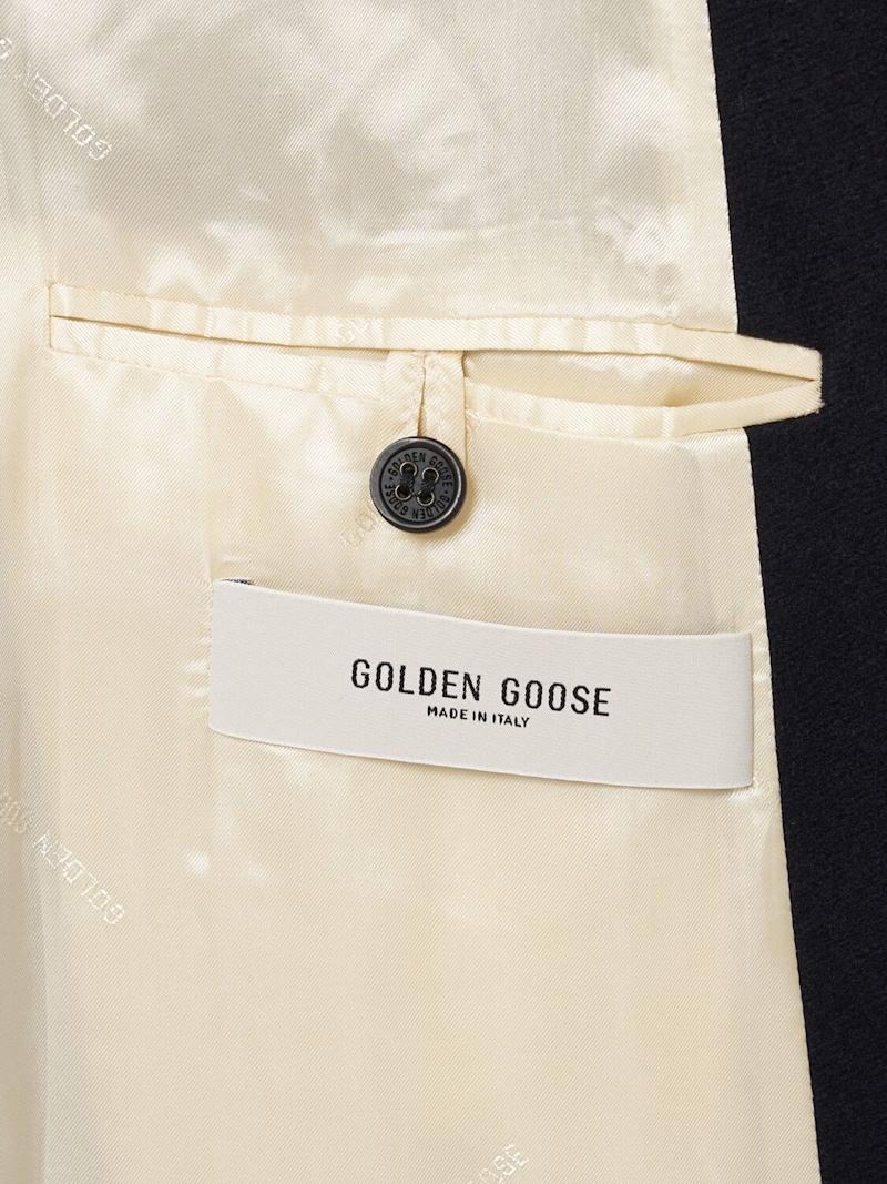Golden单排扣羊毛混纺大衣 - 深蓝色 - 男士 - Golden Goose - 正面纽扣开合.