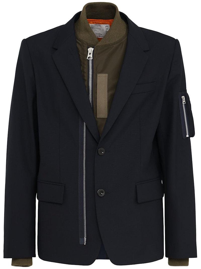西服夹克 - 蓝色 - 男士 - Sacai - 正面拉链开合.