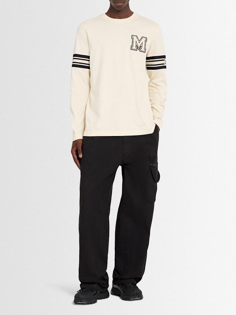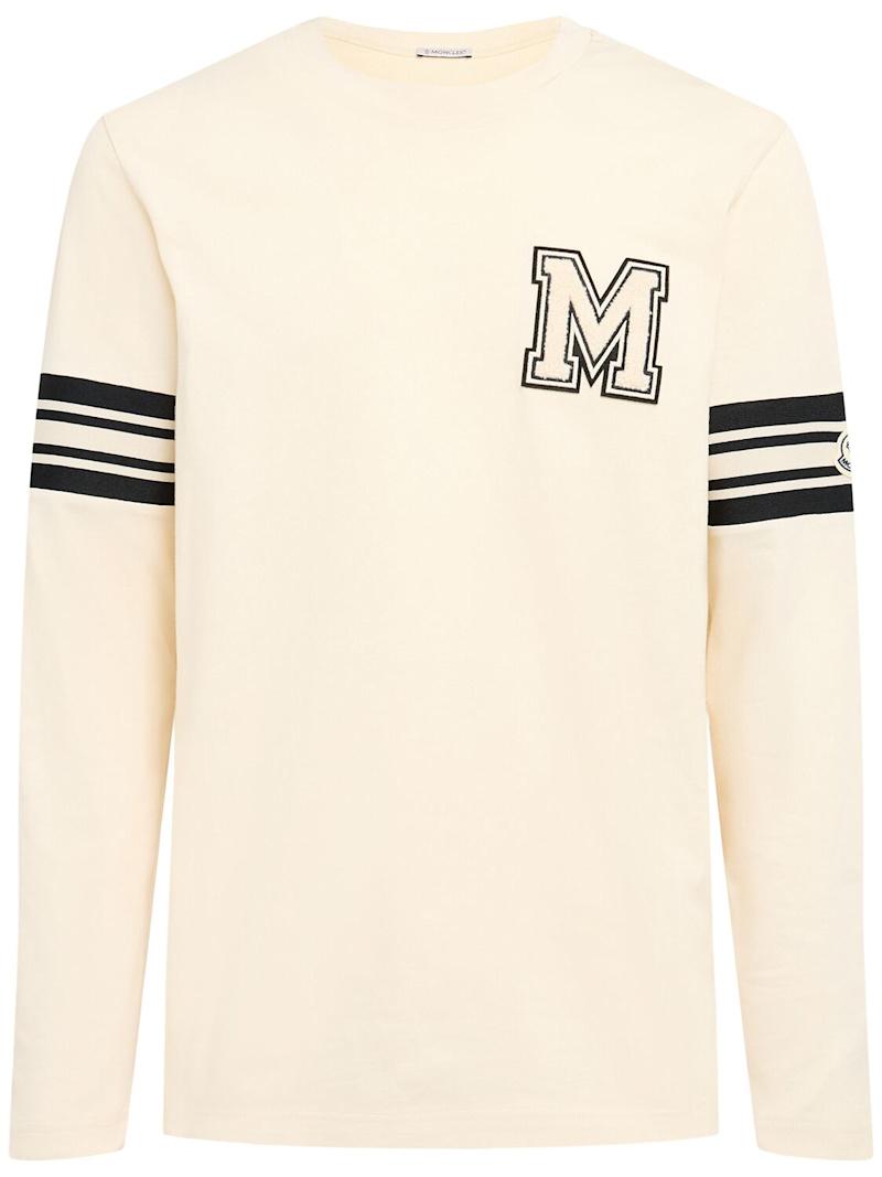 Logo棉质平纹针织长袖T恤 - 白色 - 男士 - Moncler - 采用纯棉制作.