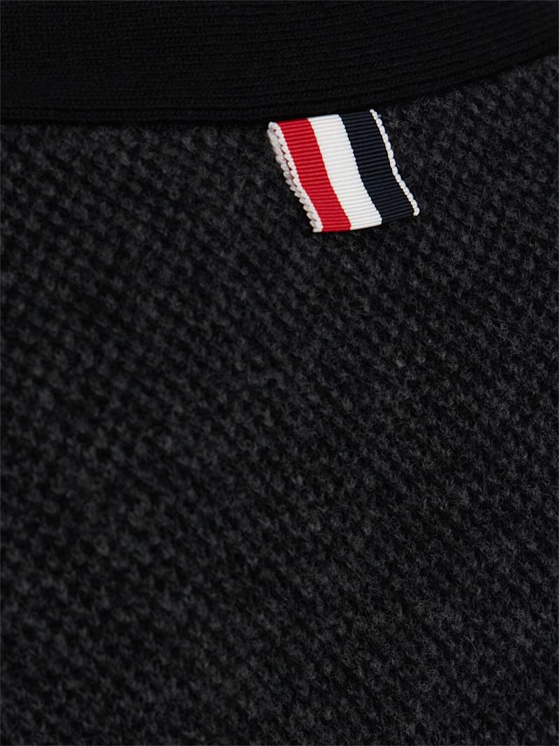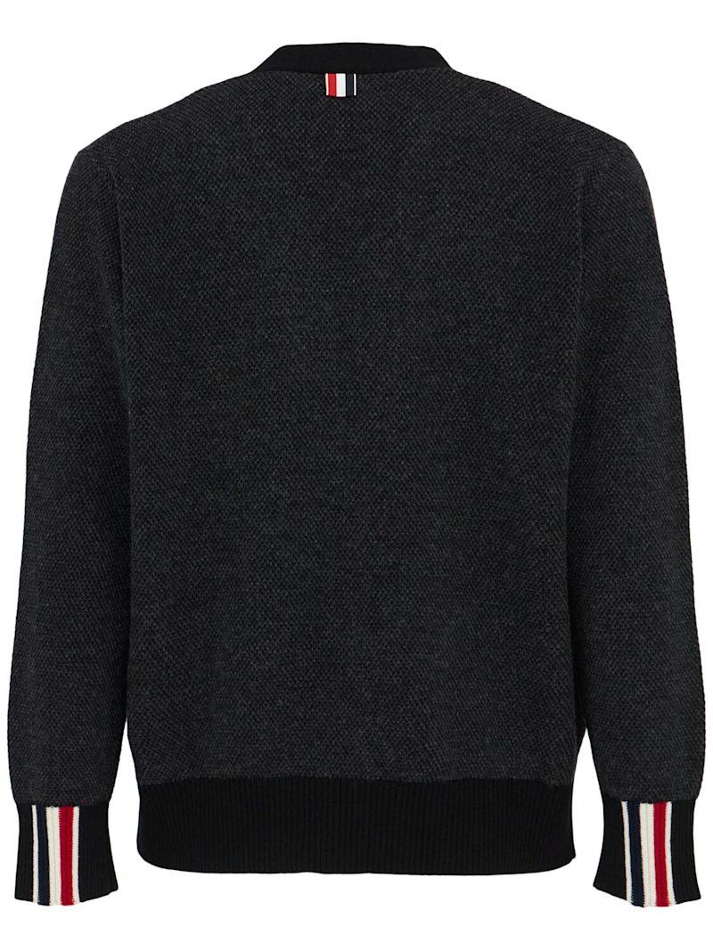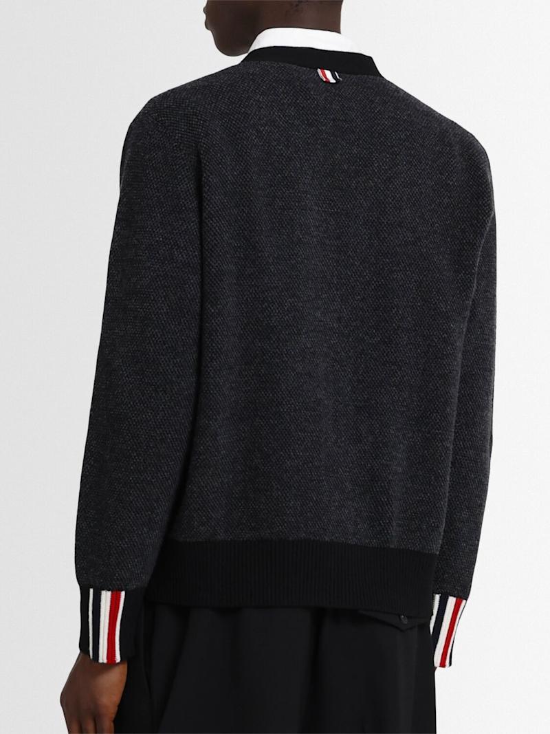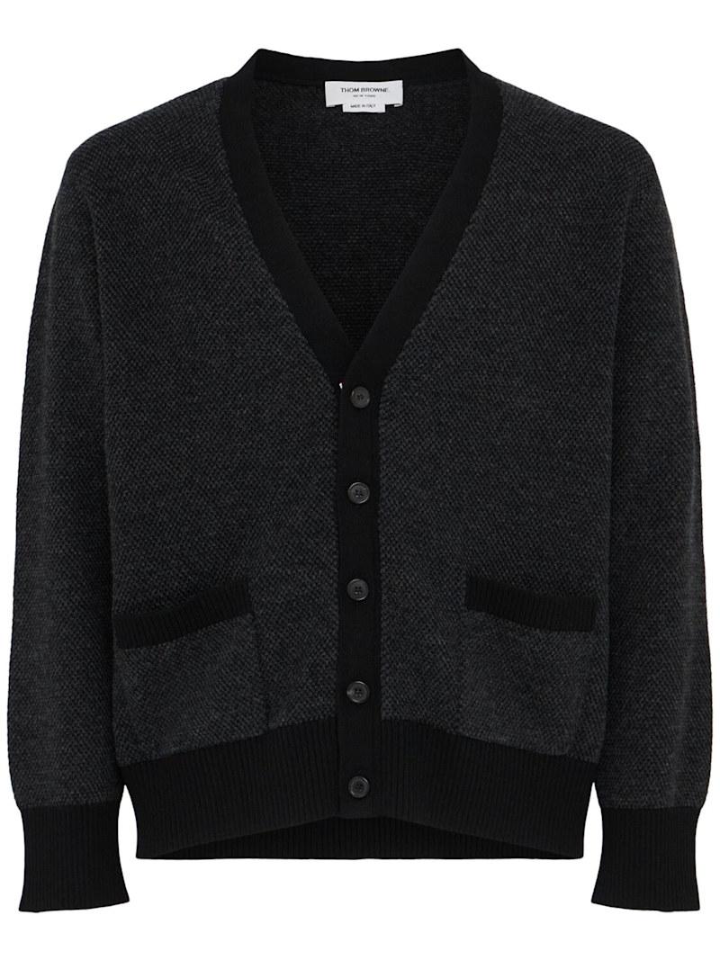 纹理缝线V领羊毛开衫 - 黑色 - 男士 - Thom Browne - 罗纹领口、袖口和下摆.