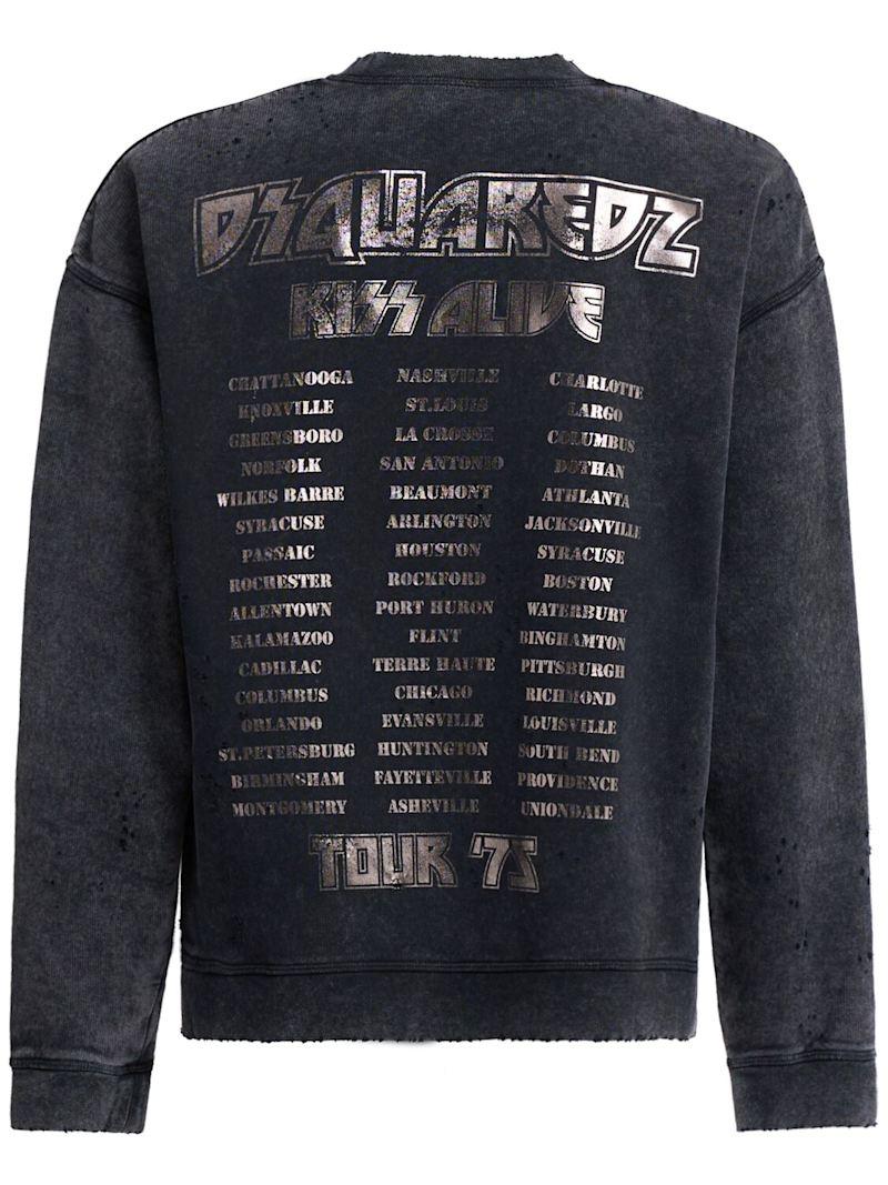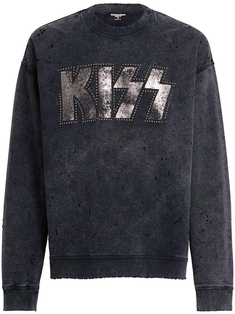 Kiss刺绣棉质卫衣 - 灰色 - 男士 - Dsquared2 - 罗纹边缘.