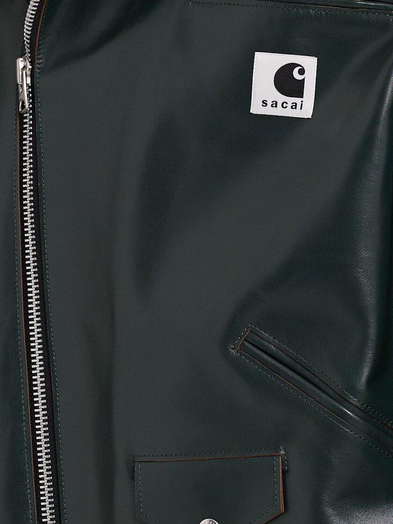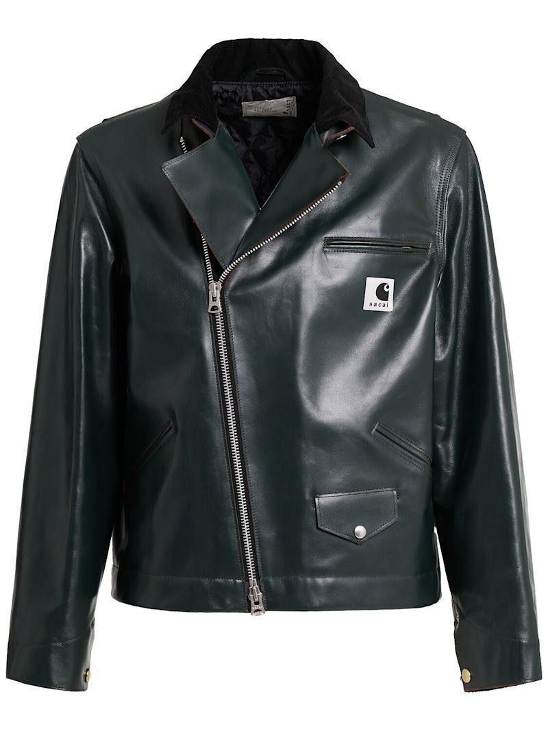 Carhartt WIP皮革夹克 - 绿色 - 男士 - Sacai - 正面拉链开合.