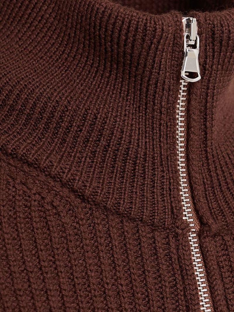 羊毛针织拉链开合毛衣 - 深棕色 - 男士 - Seven Gauge - 正面拉链开合.