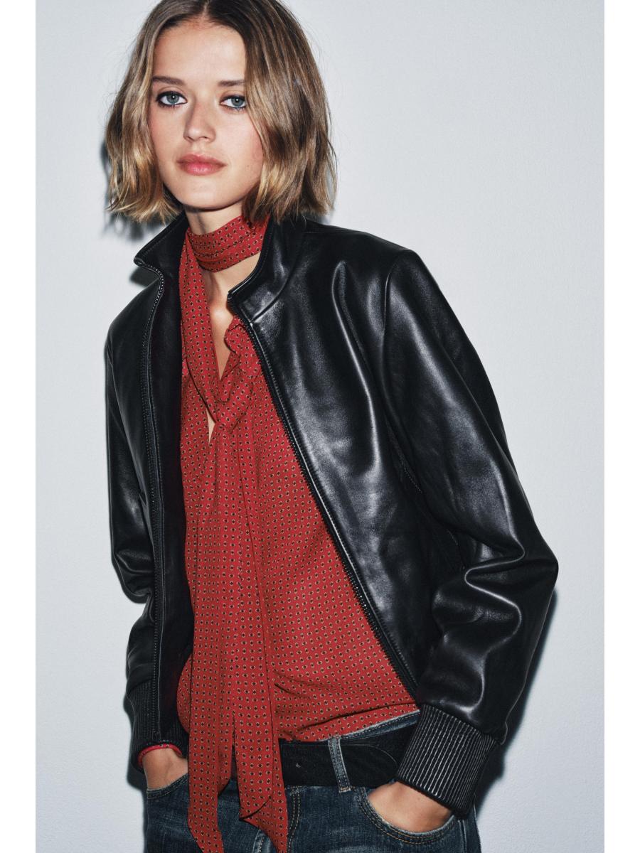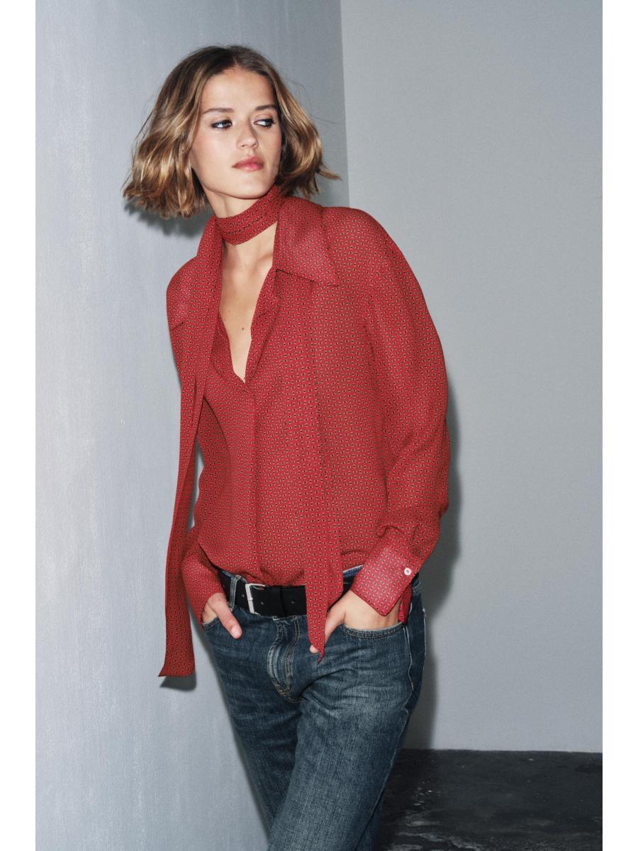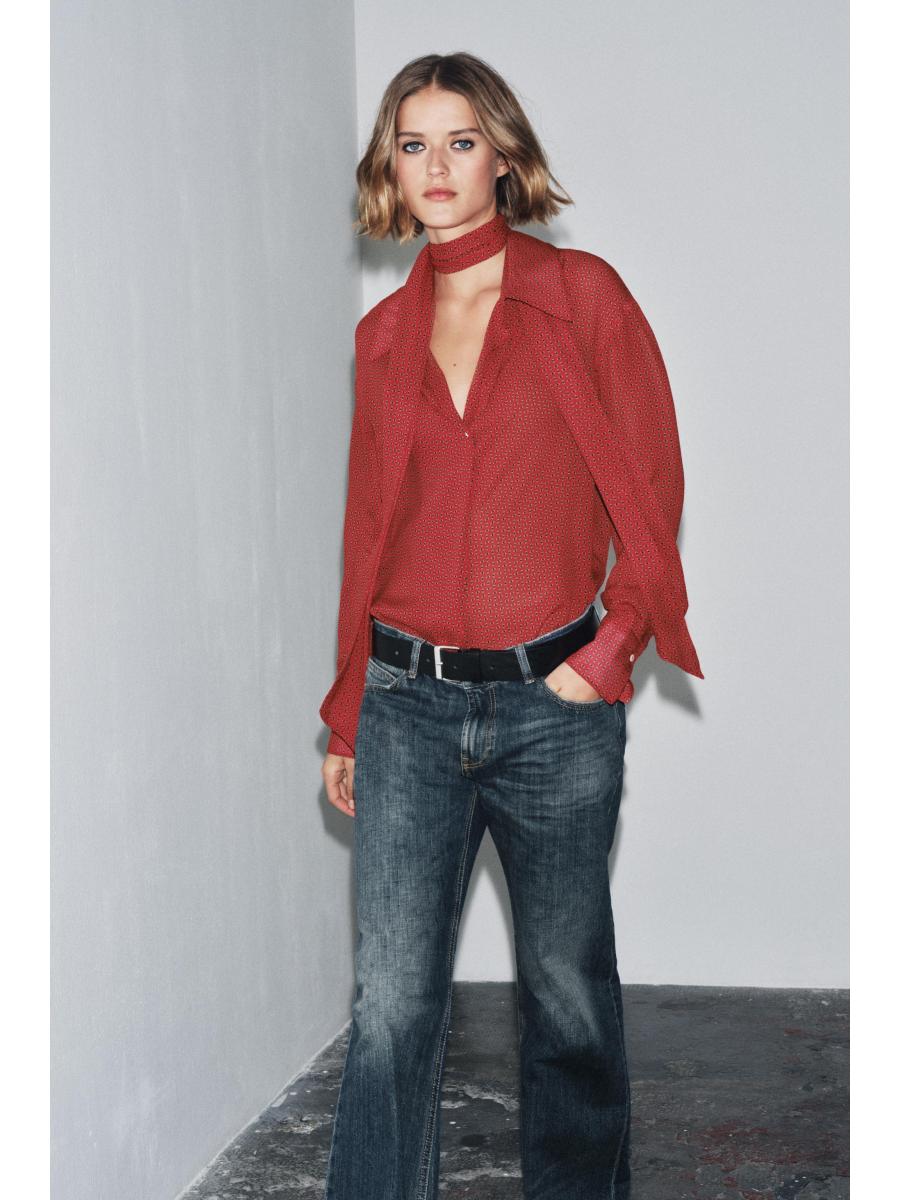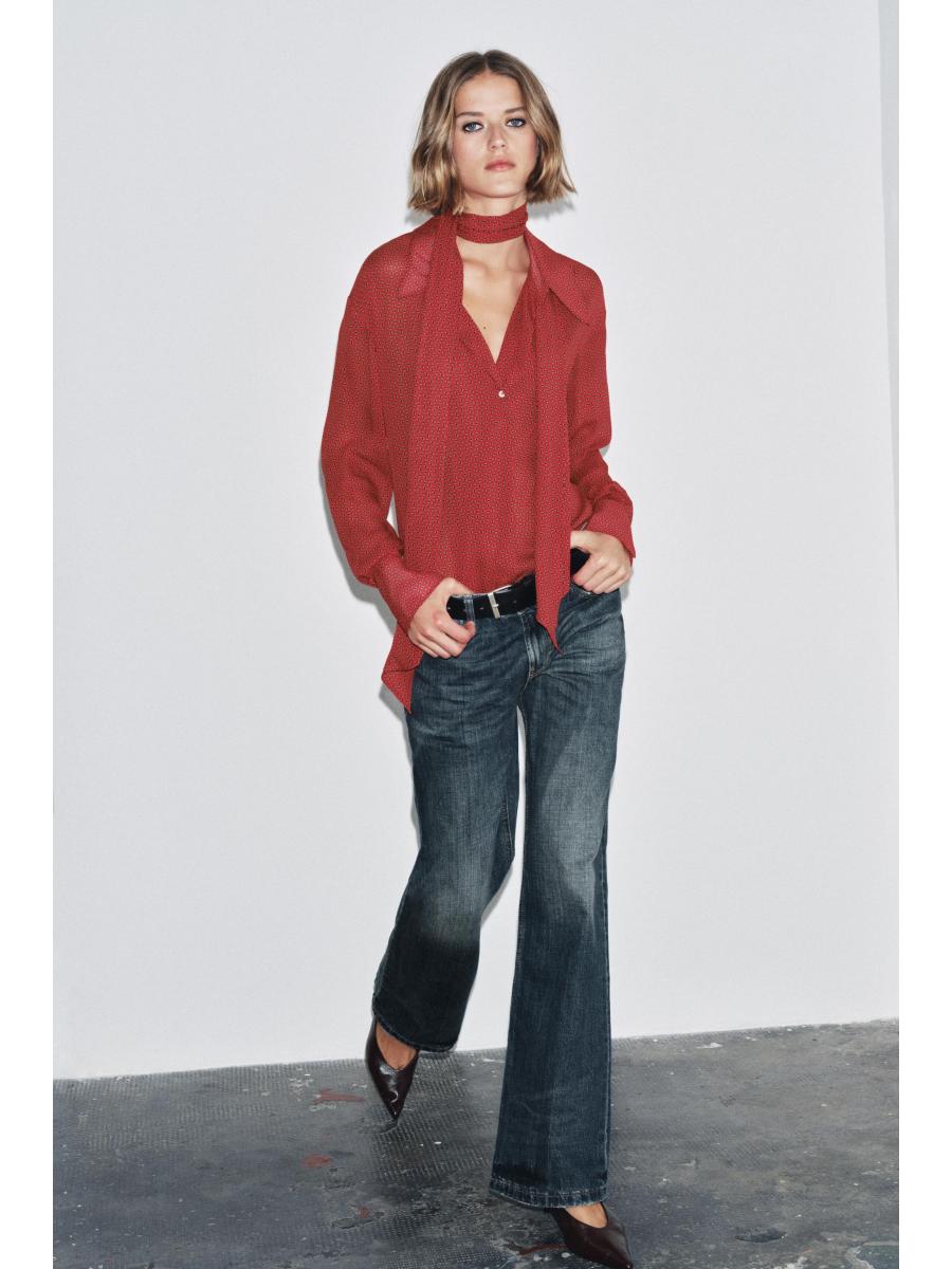 ZARA WOMAN COLLECTIONBlusa confeccionada en hilatura de viscosa. Cuello solapa y manga larga acabada en puño. Detalle de lazo en mismo tejido. Cierre frontal con botones.