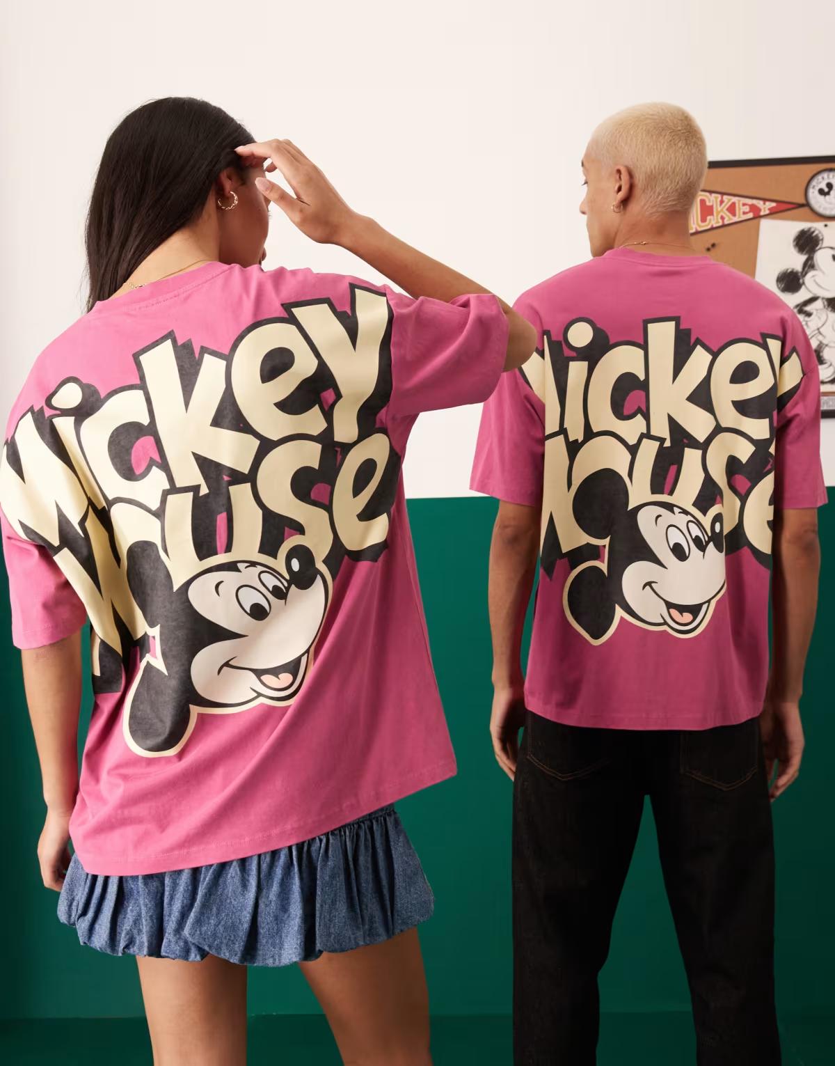 ASOS DESIGN Disney unisex oversized t-shirt with Mickey Mouse print in washed pink