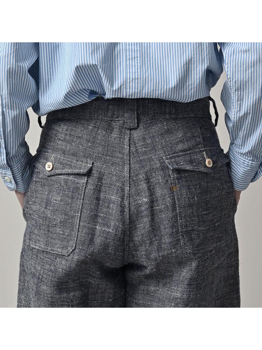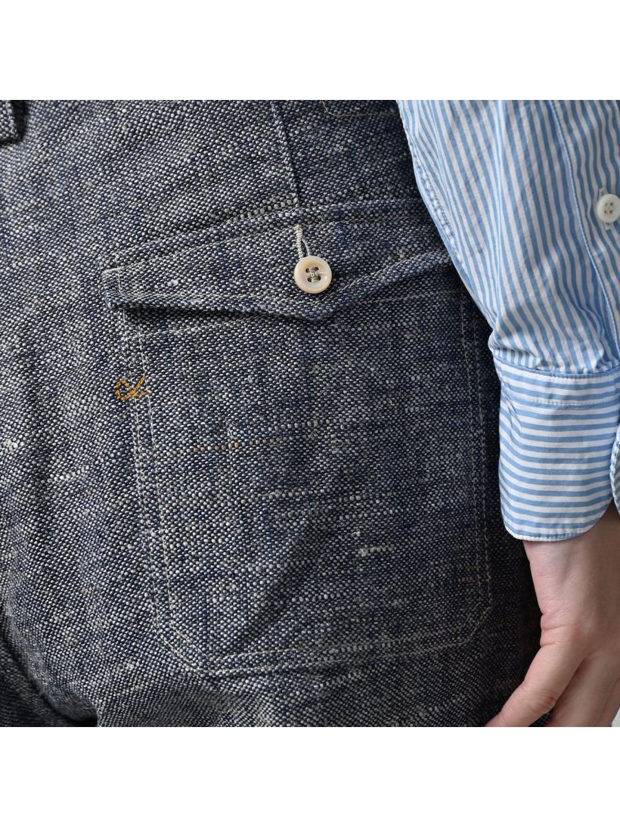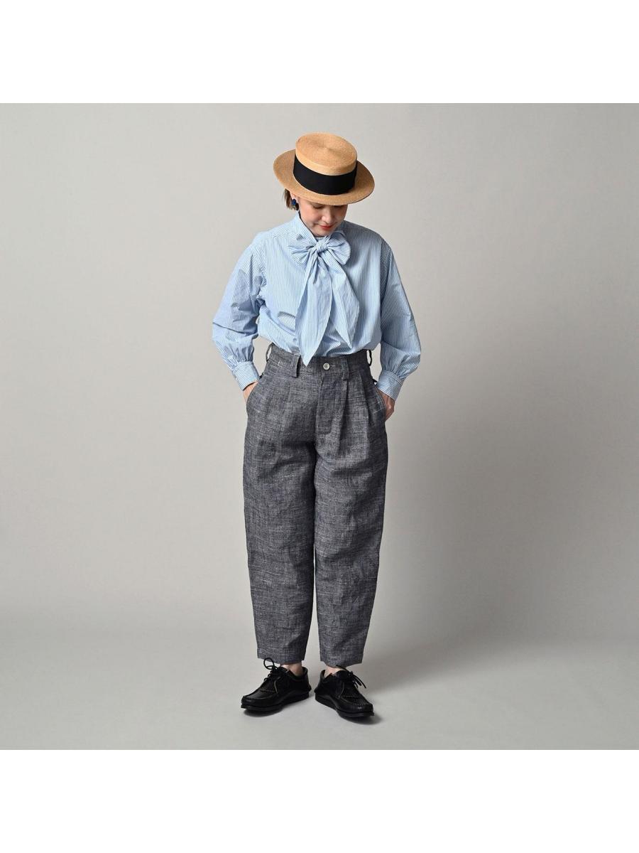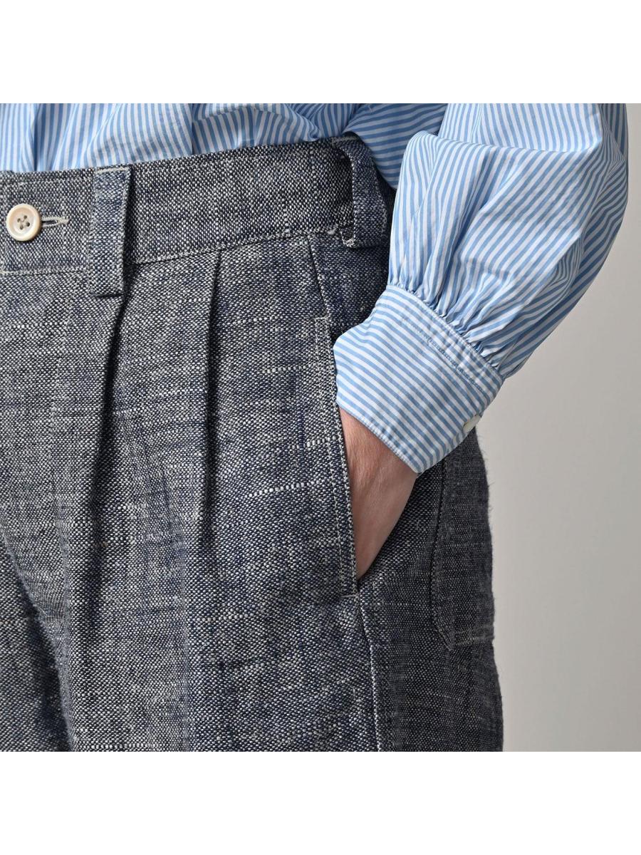 綿麻ツイードの908ペグトップパンツ(インディゴ)