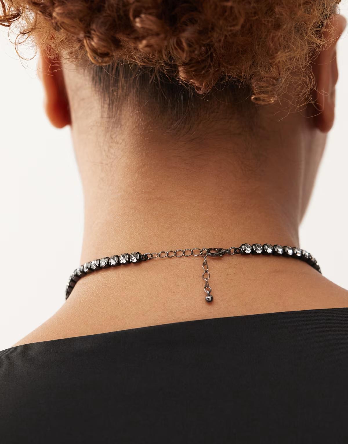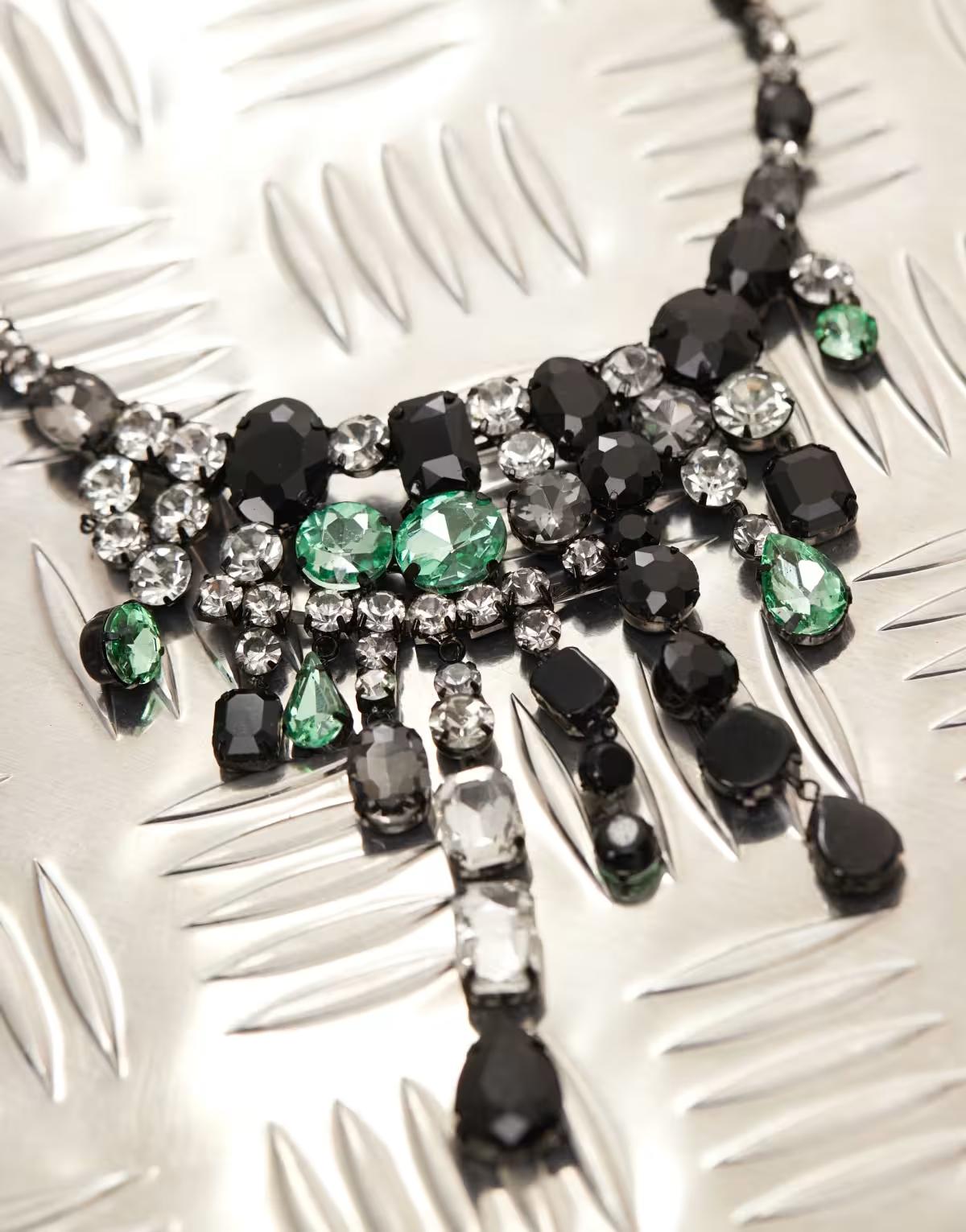 Reclaimed Vintage Limited Edition necklace with dangly green and black stones in silver