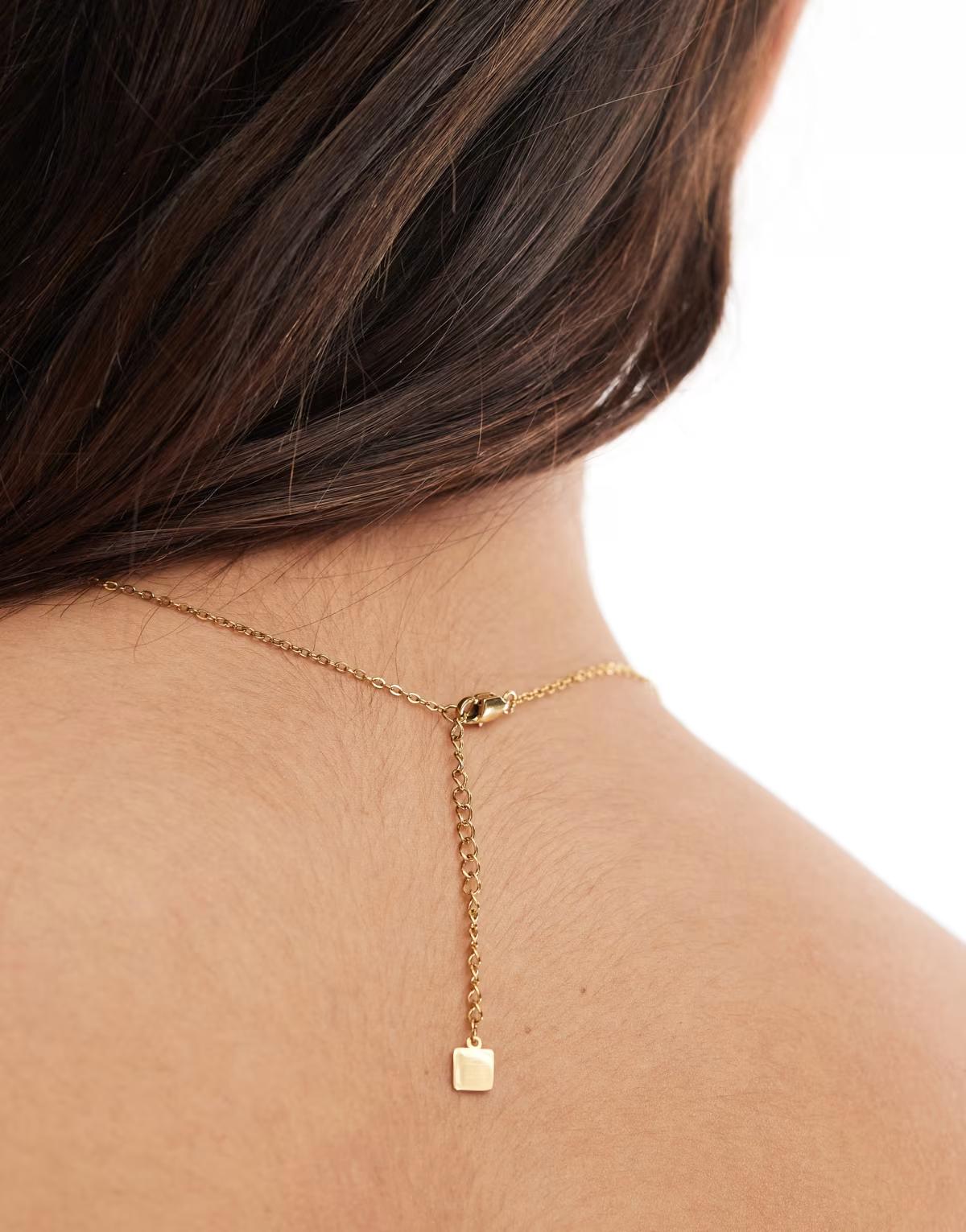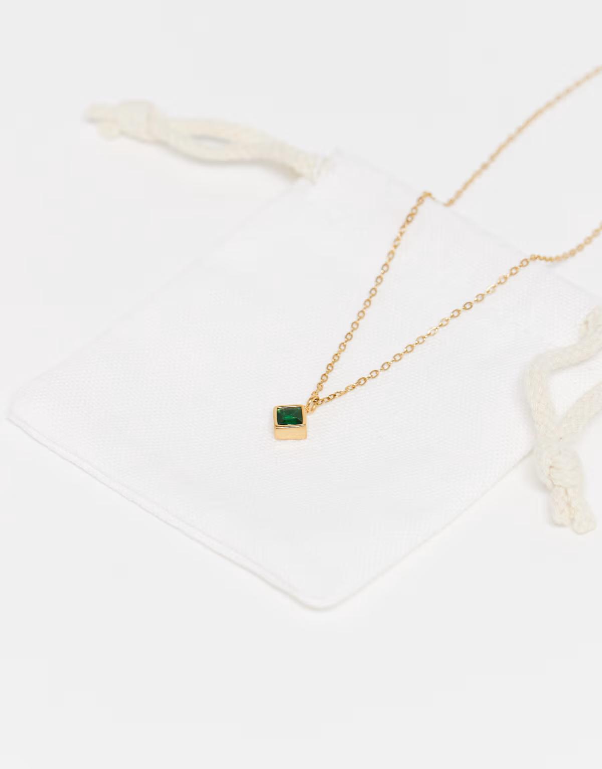 ASOS DESIGN waterproof stainless steel chain necklace with cubic zirconia green stone in gold tone with gift bag