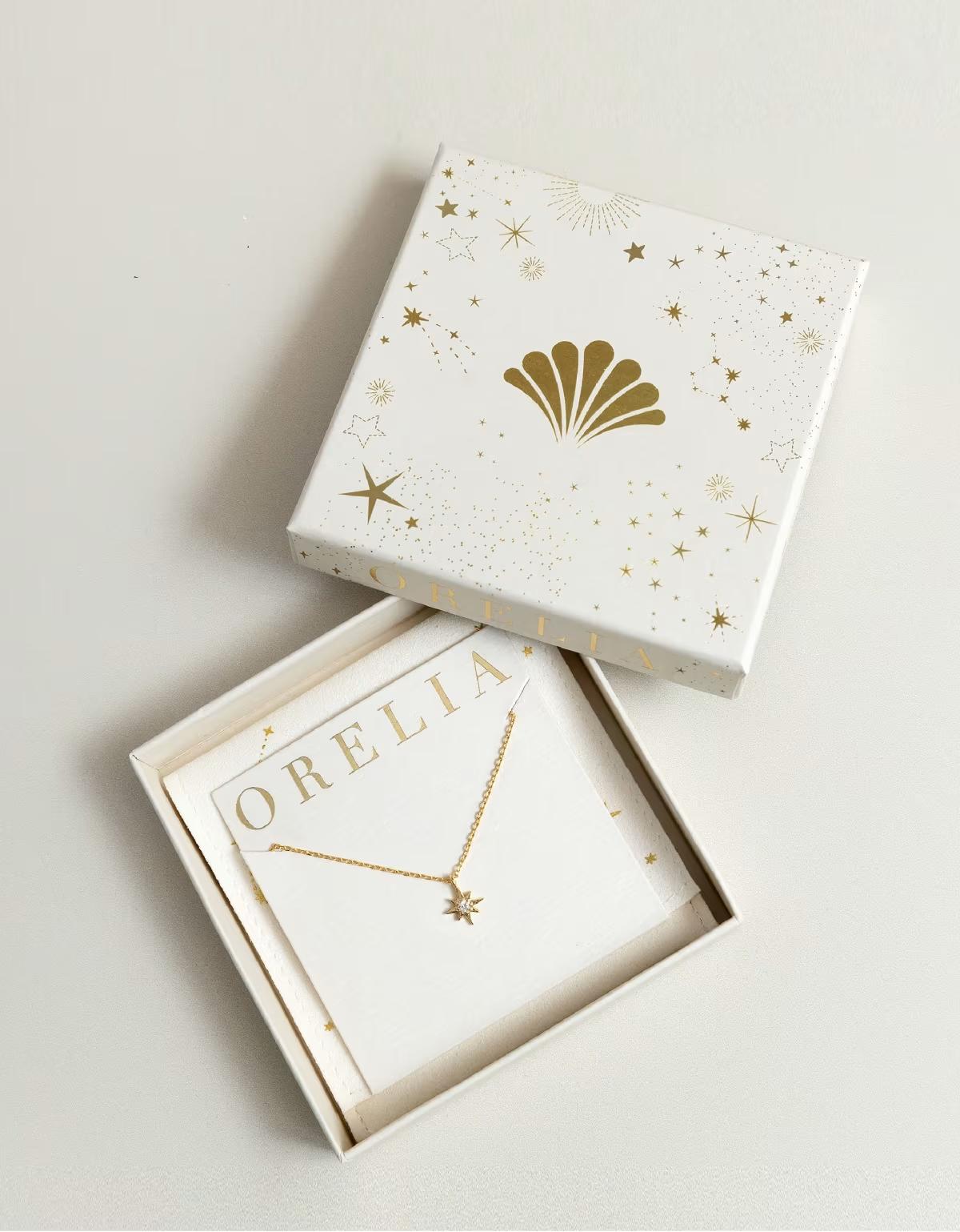 Orelia crystal celestial starburst gold plated charm necklace with gift box
