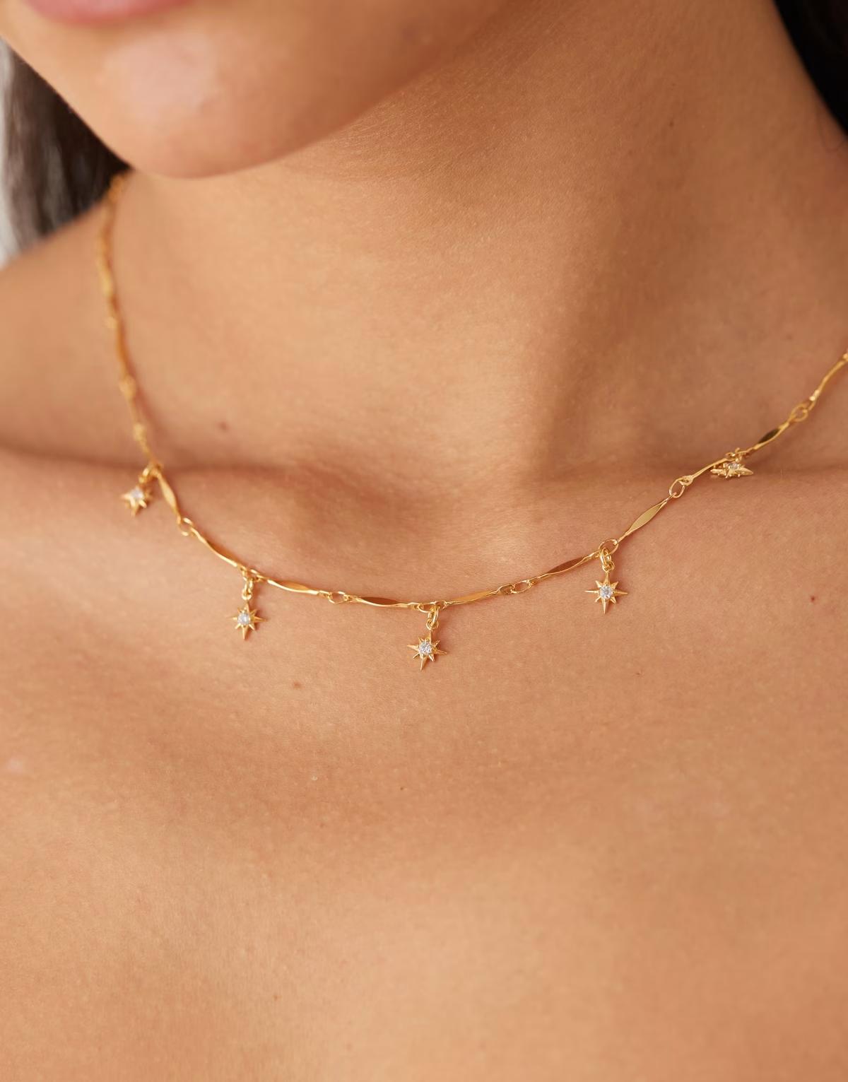 Orelia crystal starburst multi charm necklace in gold plated