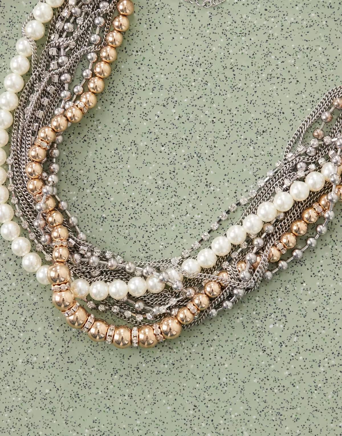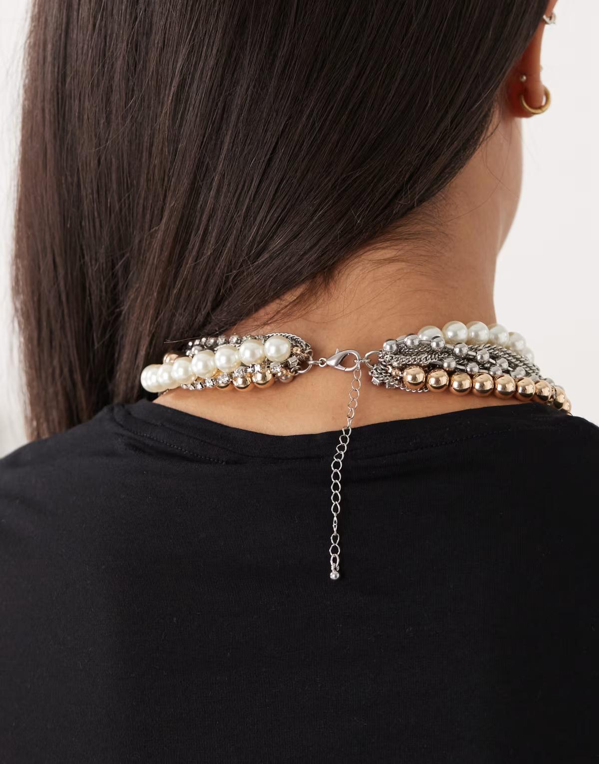 Reclaimed Vintage oversized tangled necklaces in silver, gold and pearl