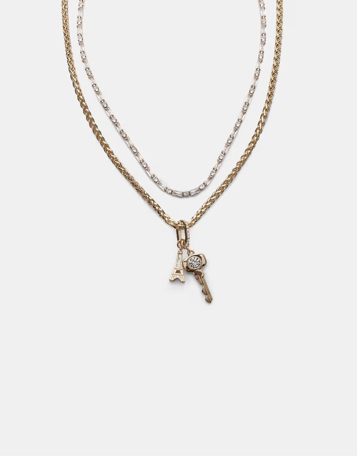 Stradivarius Set of 2 rhinestone and multi-charm necklaces in gold
