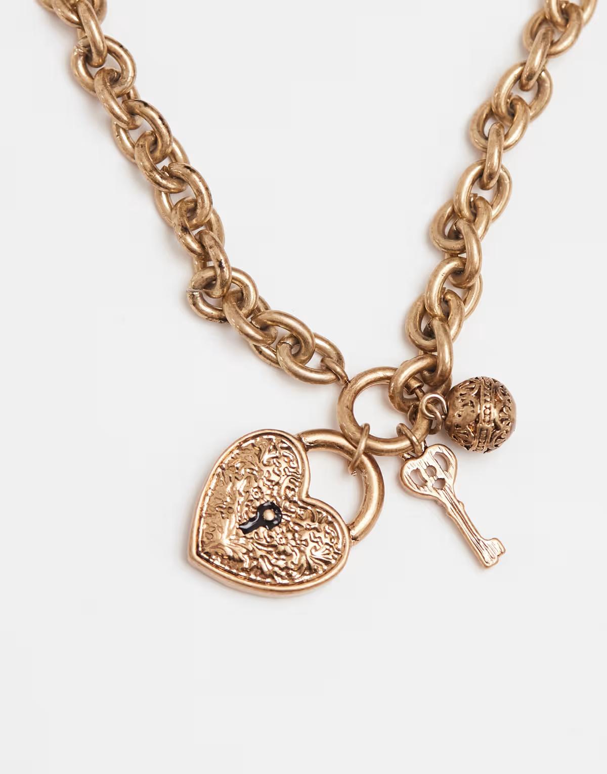 Accessorize heart padlock charm chunky necklace in brushed gold