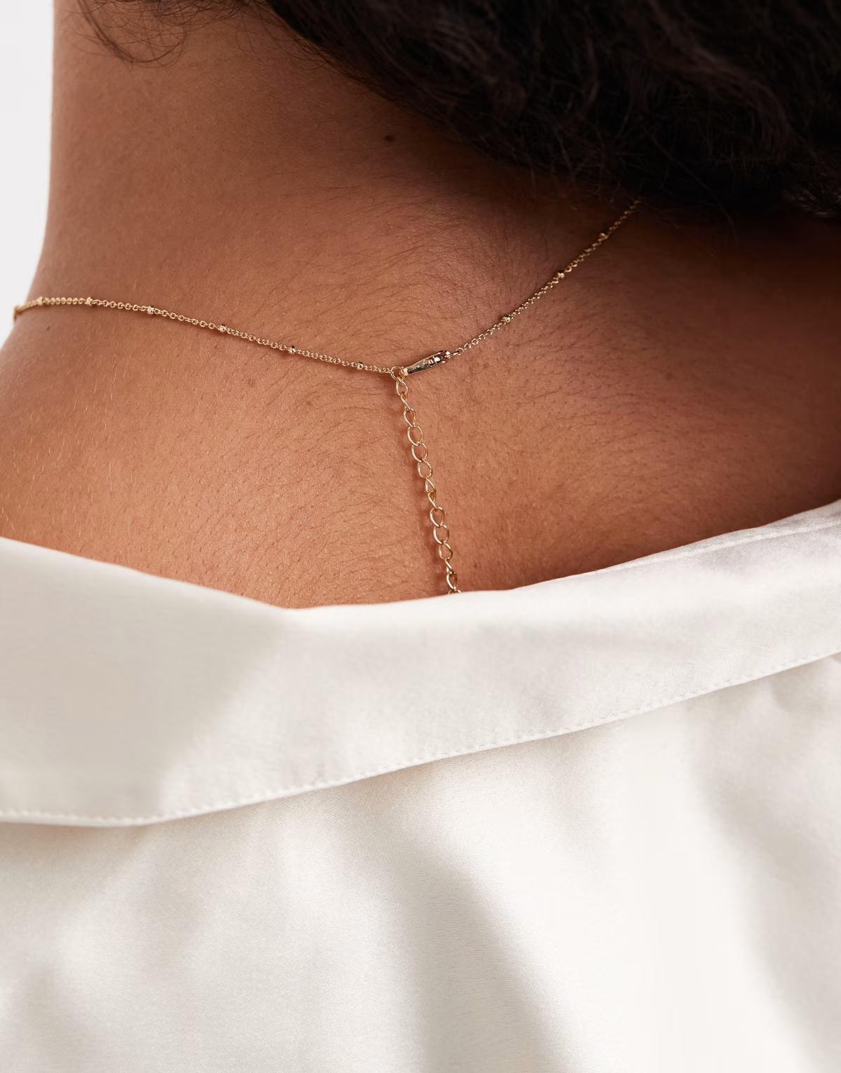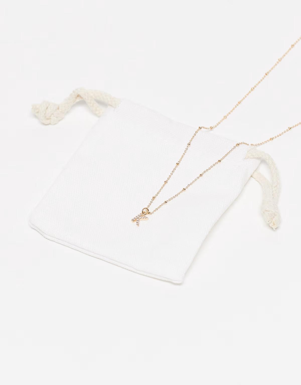 ASOS DESIGN dot-dash necklace with cubic zirconia K initial pendant in gold tone with gift bag