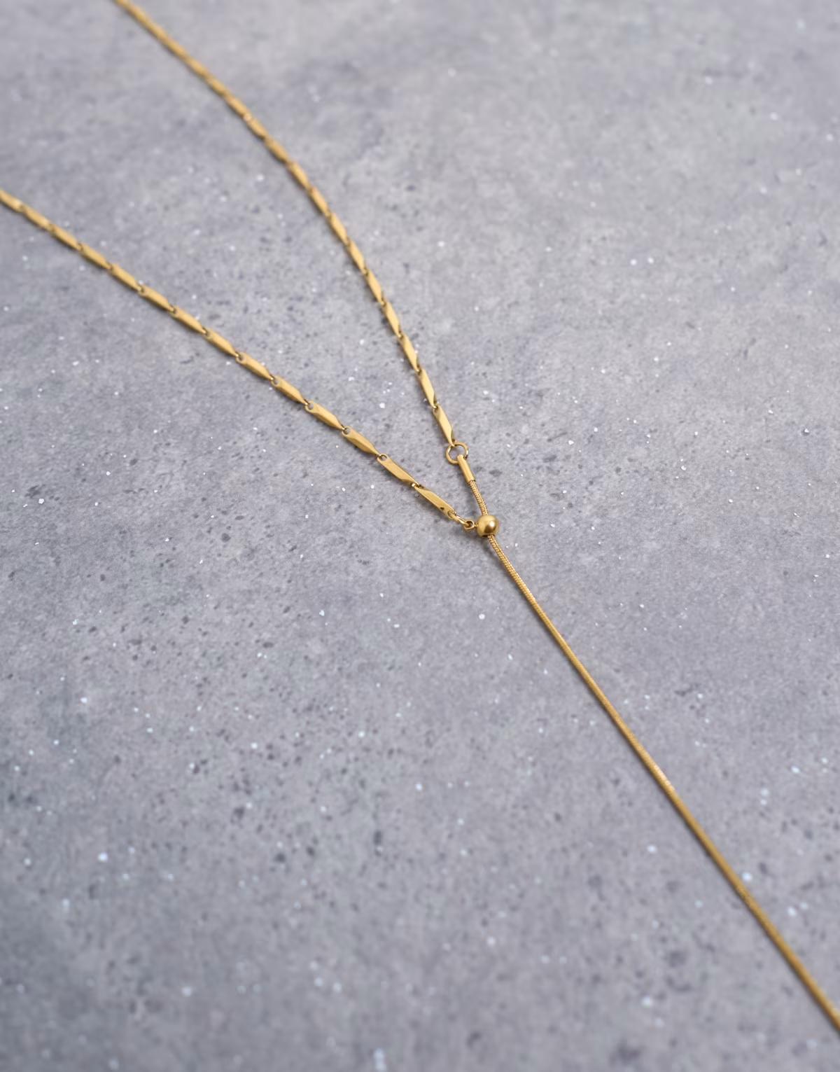 The Morgan necklace is crafted from a corrosion-resistant metal in gold-tone. It features a twisted chain design.