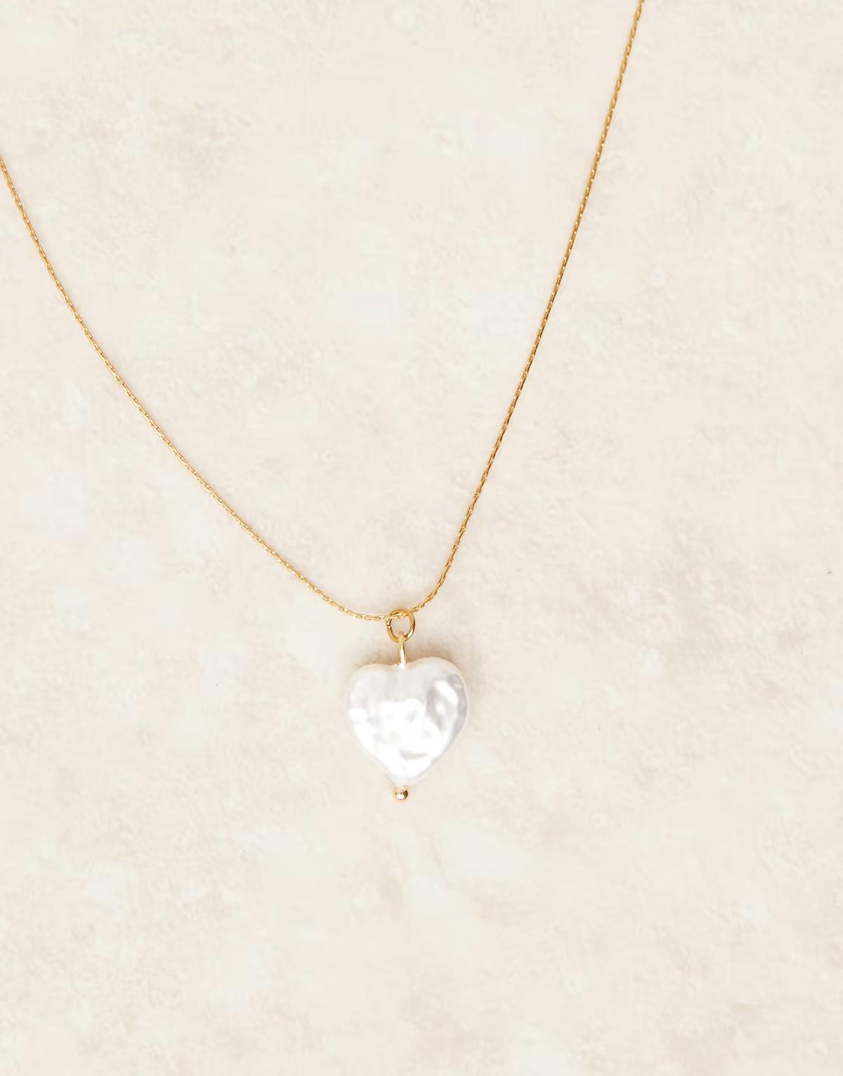 Lost Souls heart shape pearl pendant necklace in 18ct gold plated stainless steel